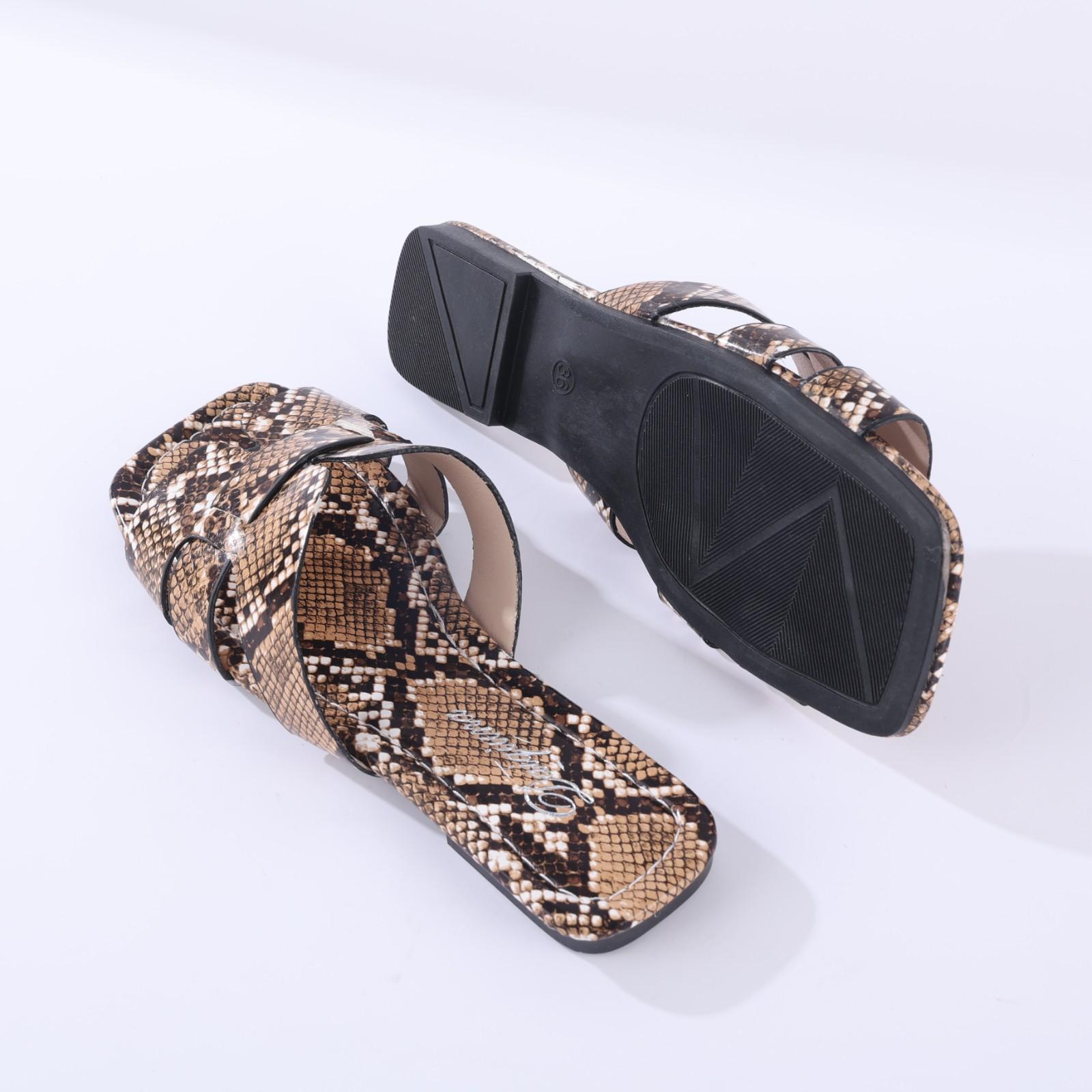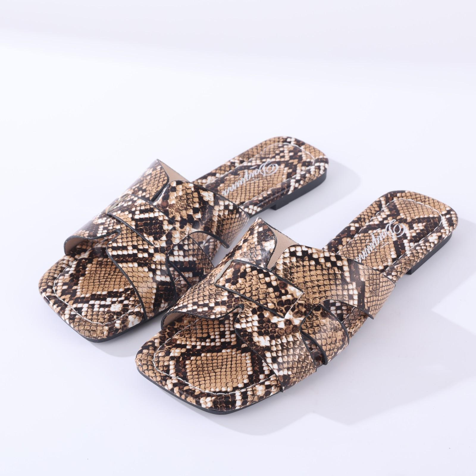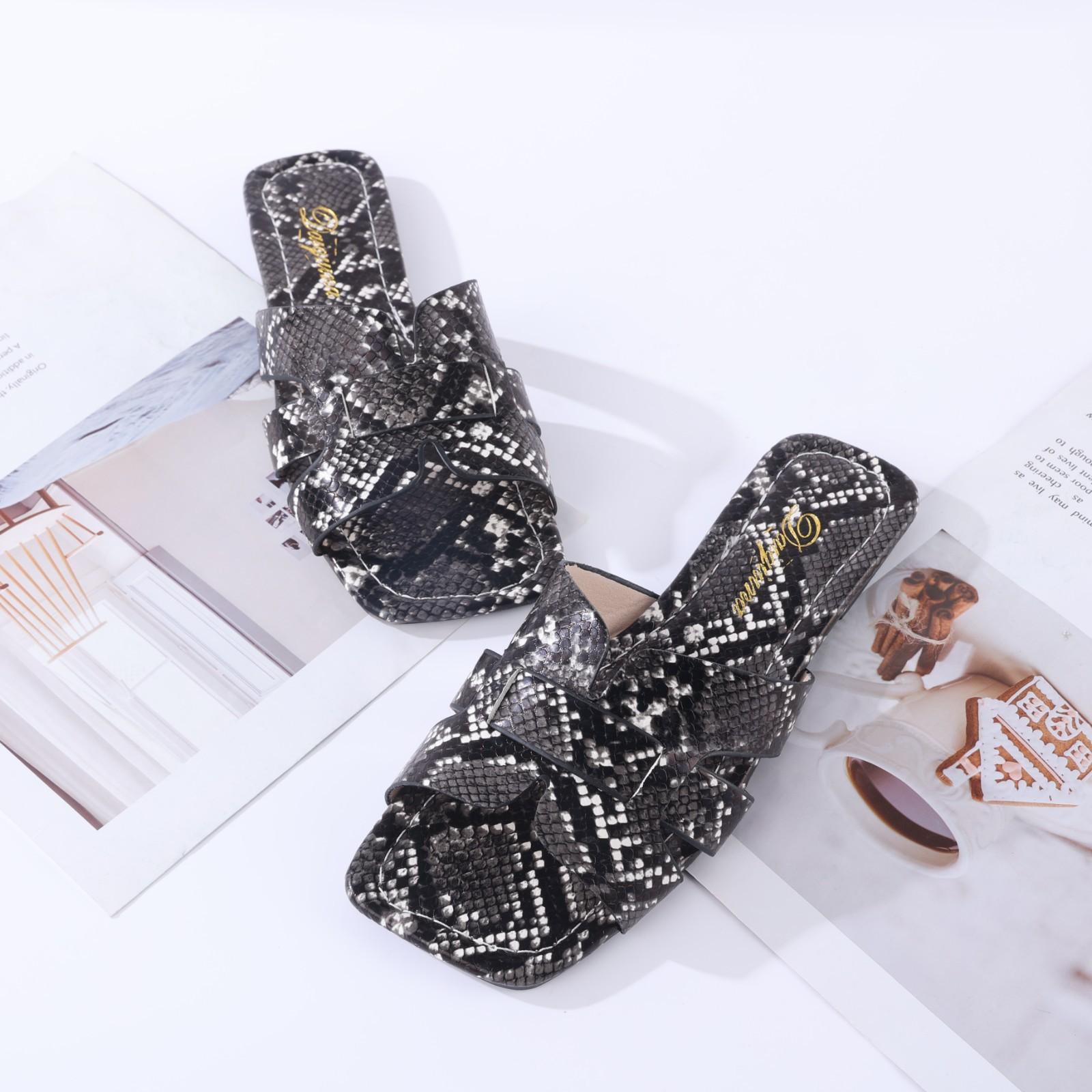 Verano Nuevo Estilo Pantuflas Planas Moda Cuadradas Planas Serpiente Florales Estilo Europeo y Americano Sandalias