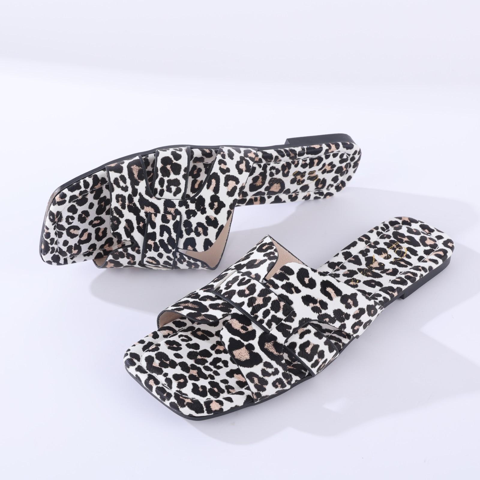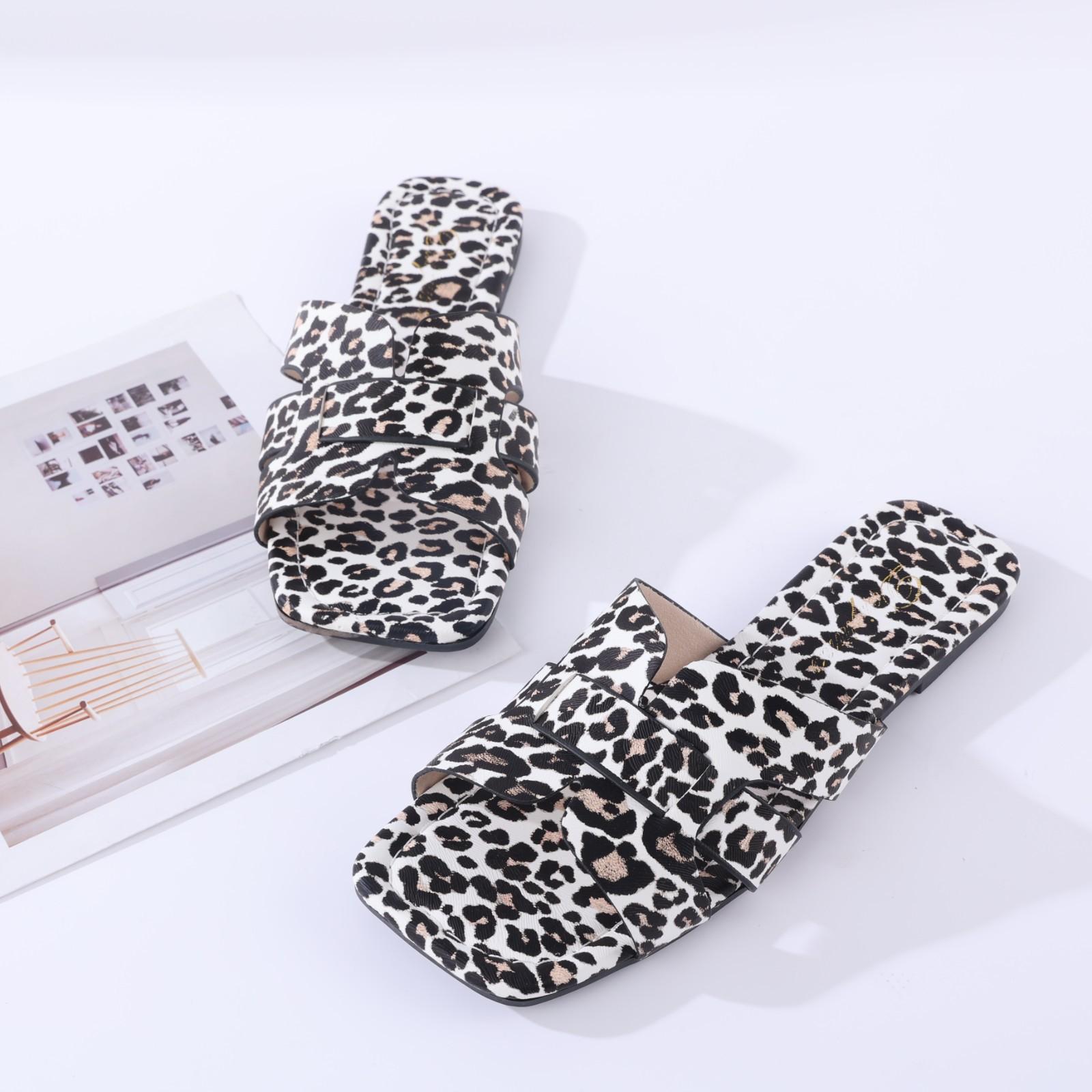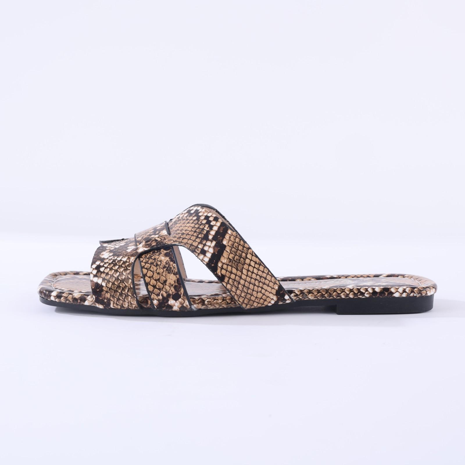 Verano Nuevo Estilo Pantuflas Planas Moda Cuadradas Planas Serpiente Florales Estilo Europeo y Americano Sandalias