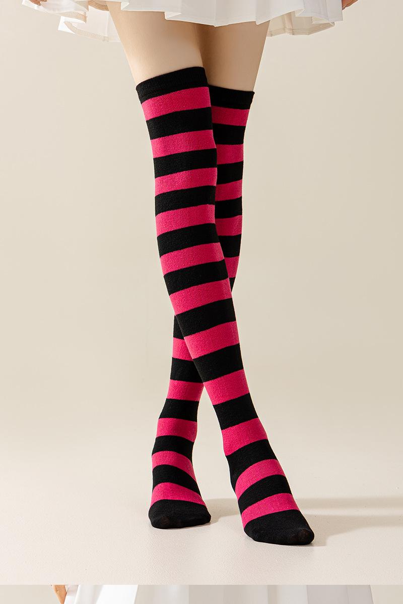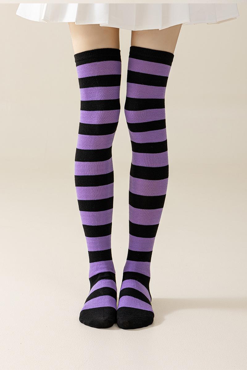 Calcetines Largos Europeos y Americanos para Mujer, Estilo Japonés a Rayas, Color Sólido, Algodón Poliéster, Hasta la Rodilla, Calcetines de Animación COSPLAY para Mujer