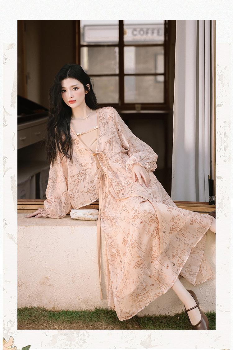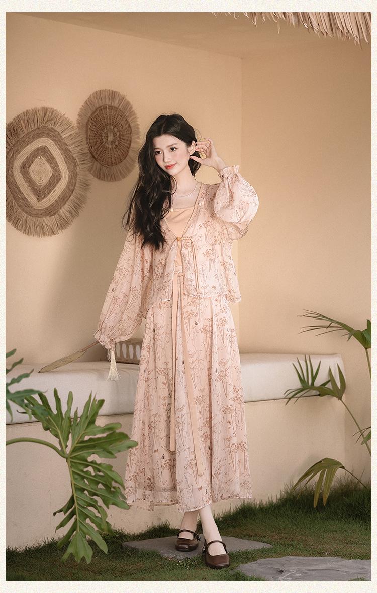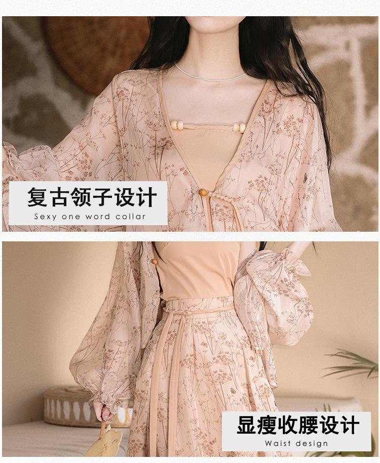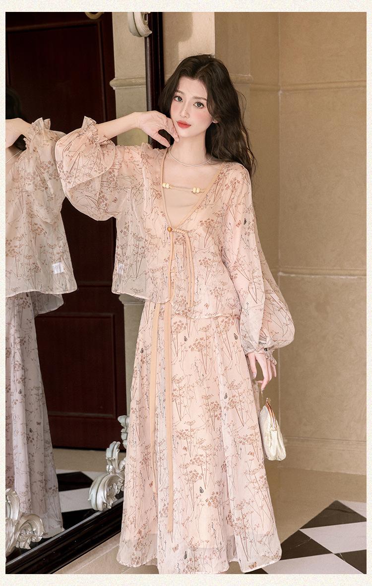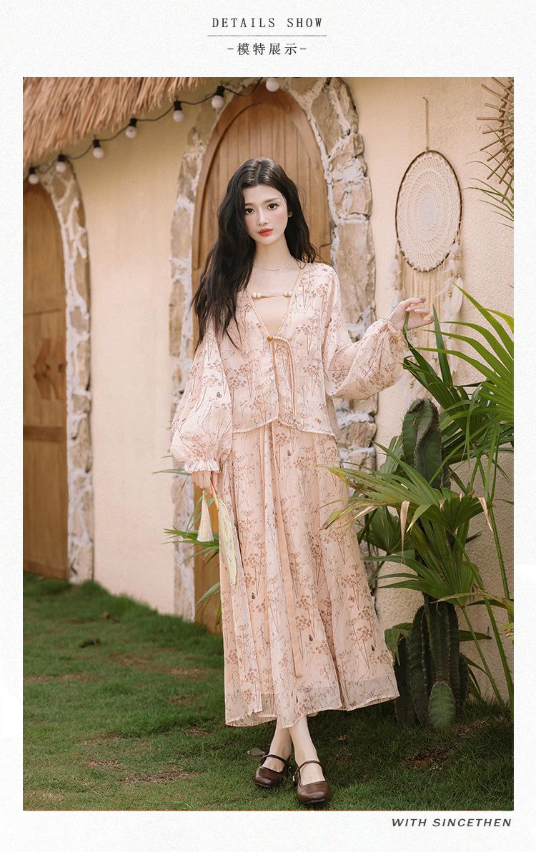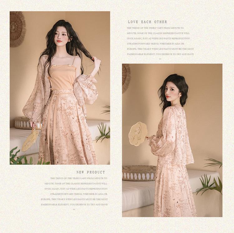 Nuevo Set Retro Chino de Tres Piezas Cárdigan+Camisola Pequeña+Falda Midi En Stock