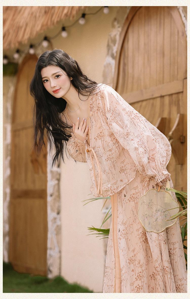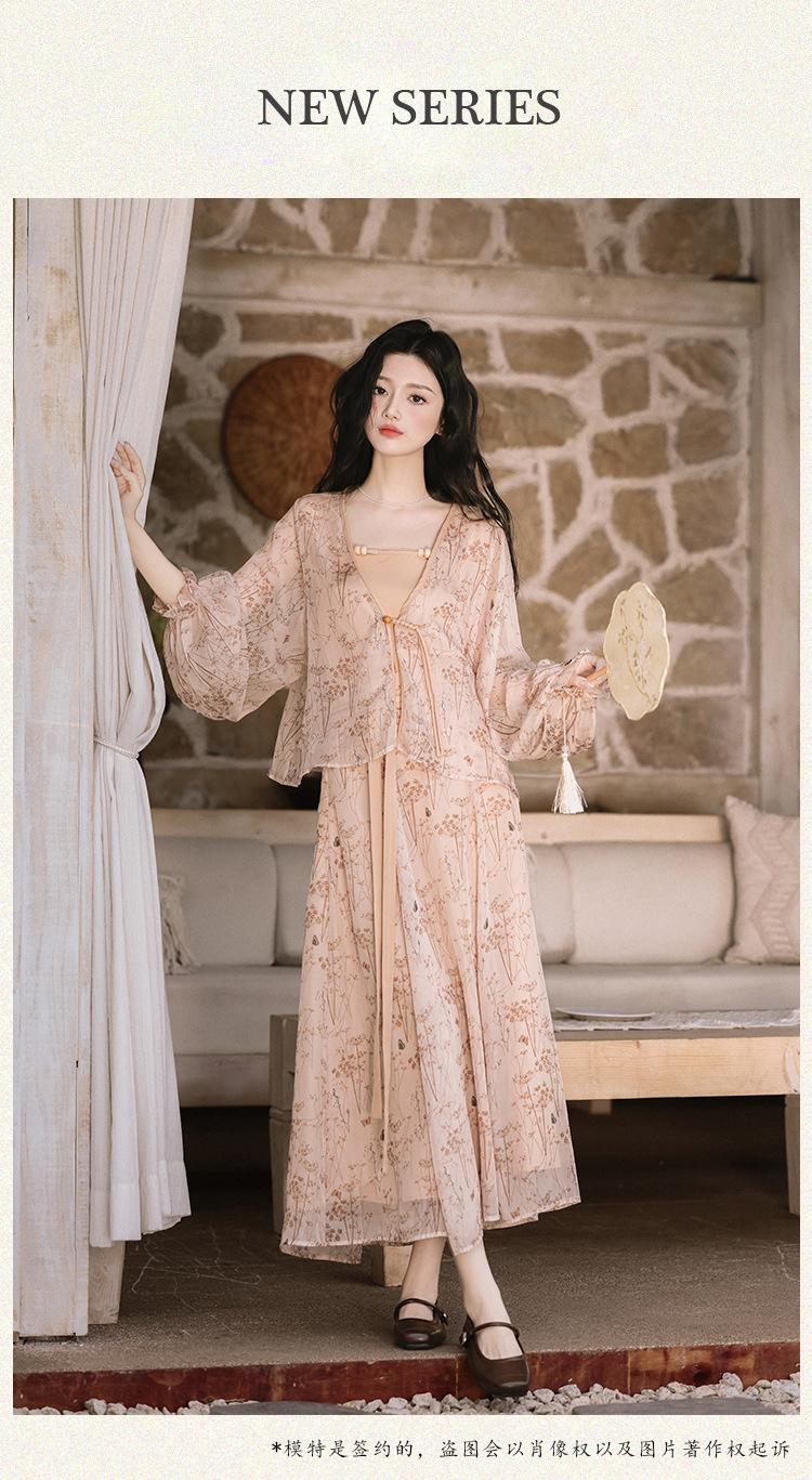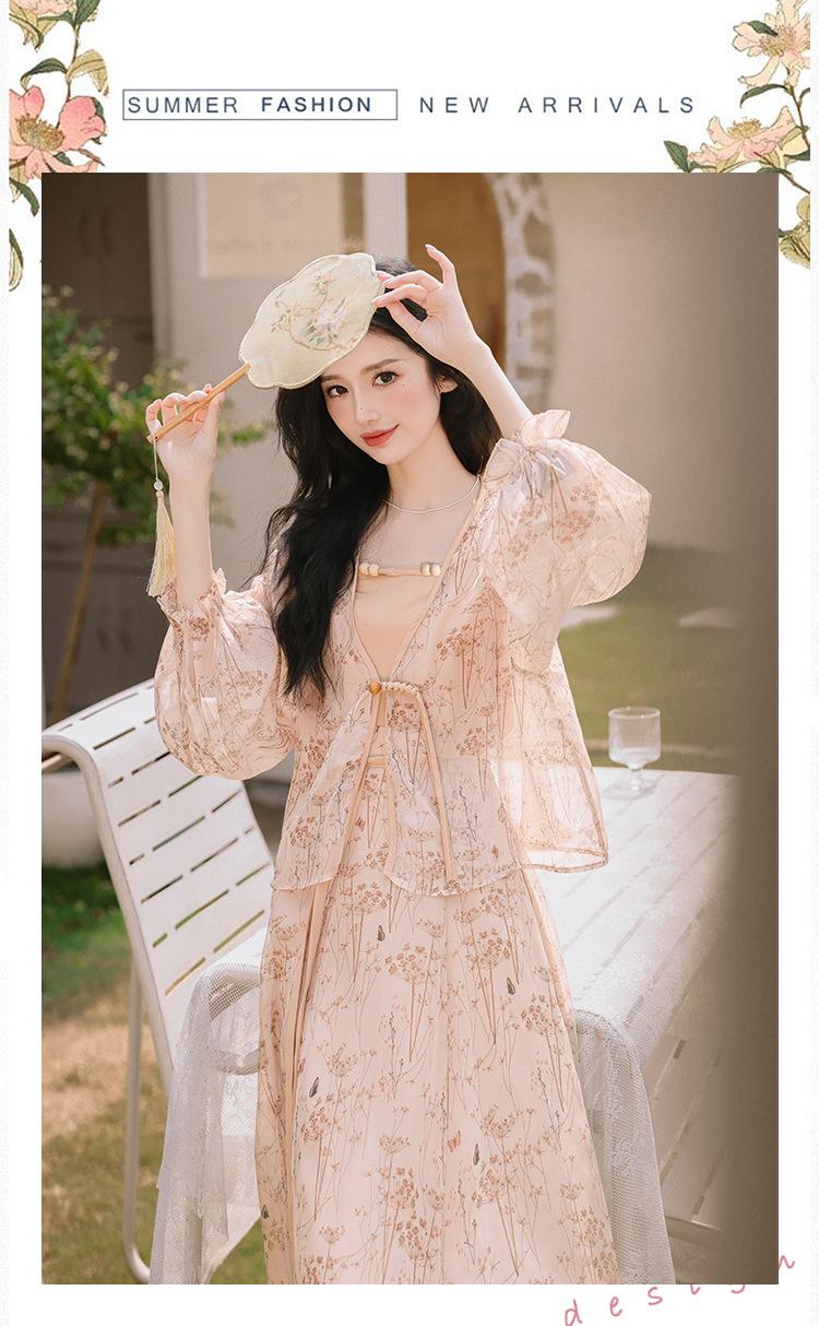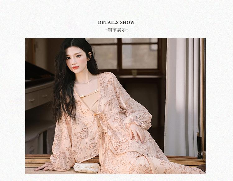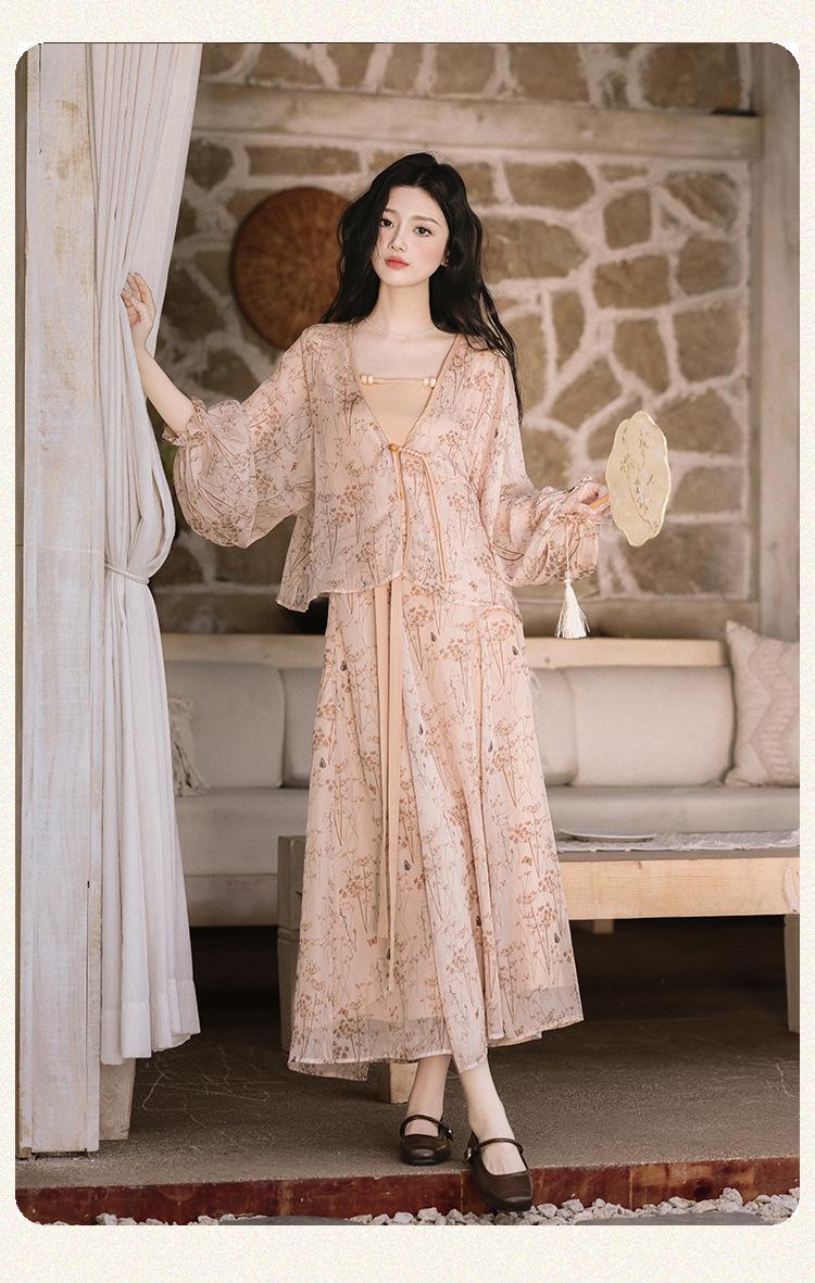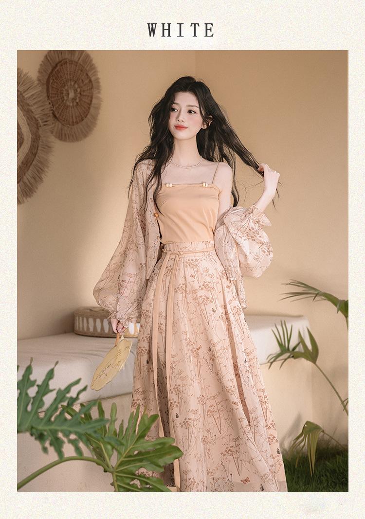 Nuevo Set Retro Chino de Tres Piezas Cárdigan+Camisola Pequeña+Falda Midi En Stock