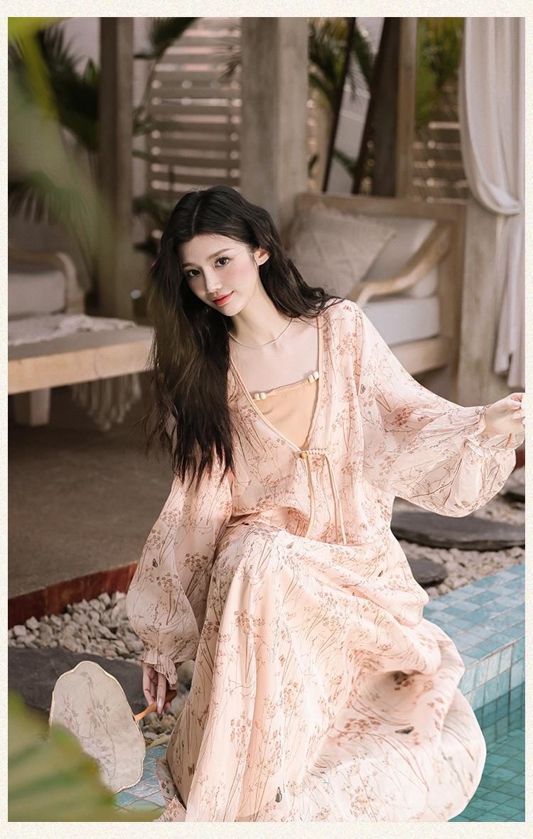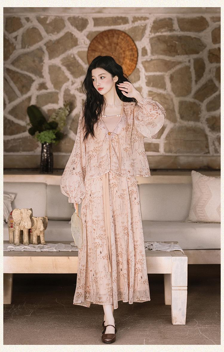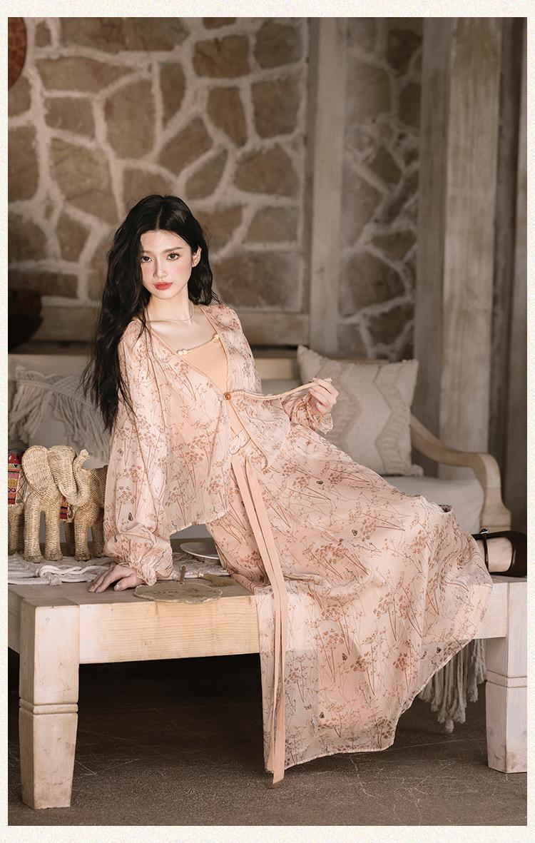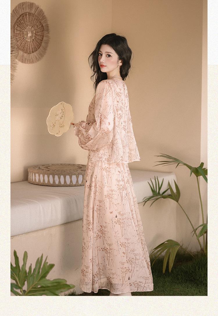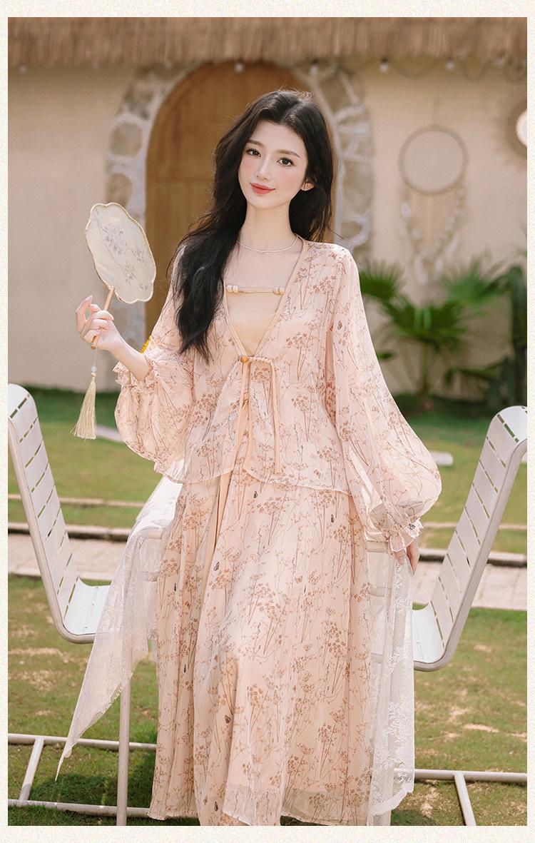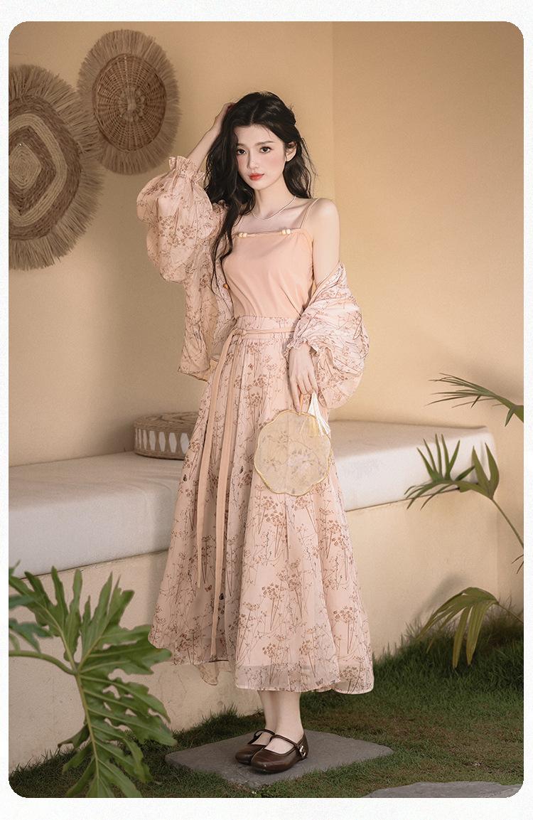 Nuevo Set Retro Chino de Tres Piezas Cárdigan+Camisola Pequeña+Falda Midi En Stock