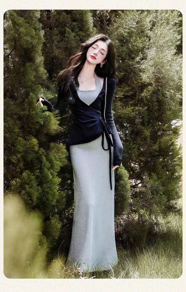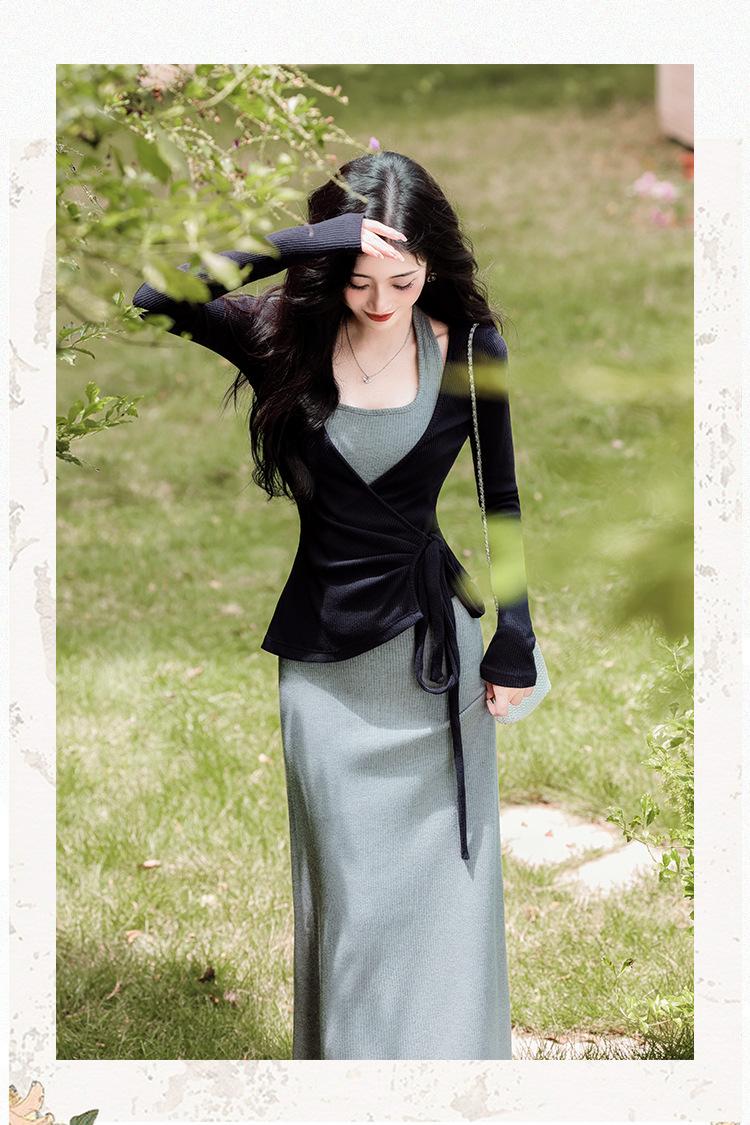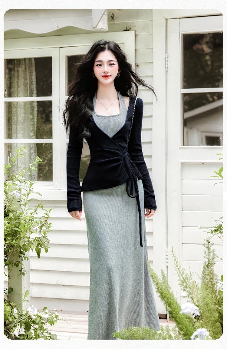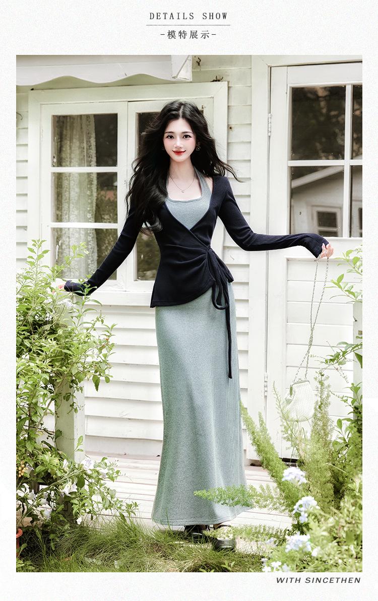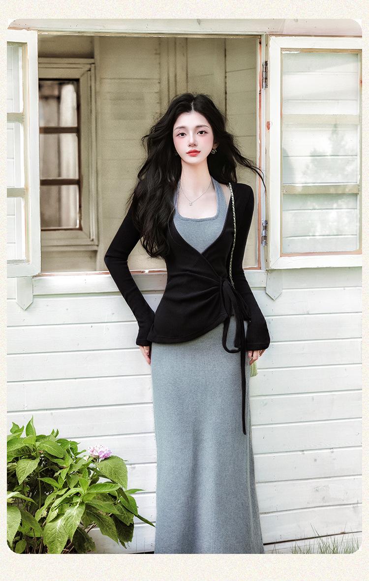 Vestido Halter Adelgazante con Temperamento + Top Anudable En Stock