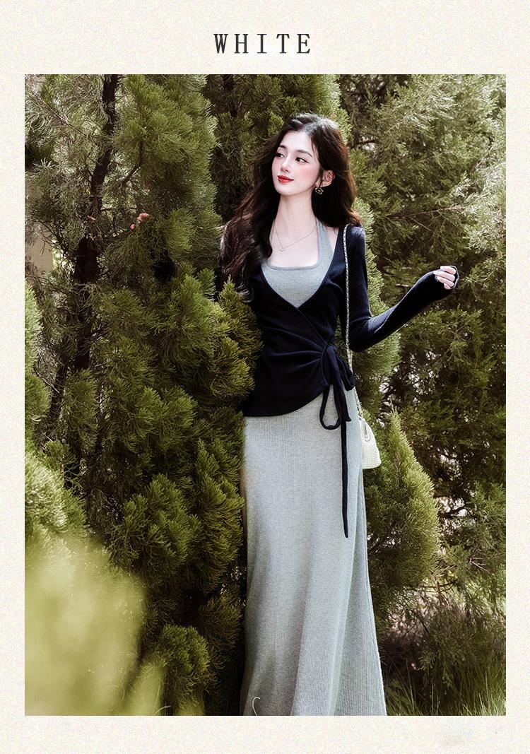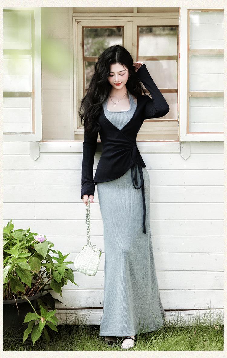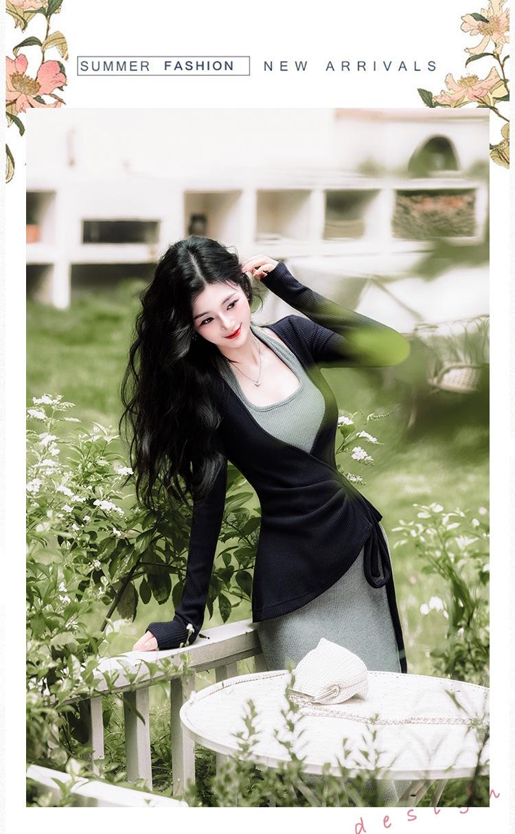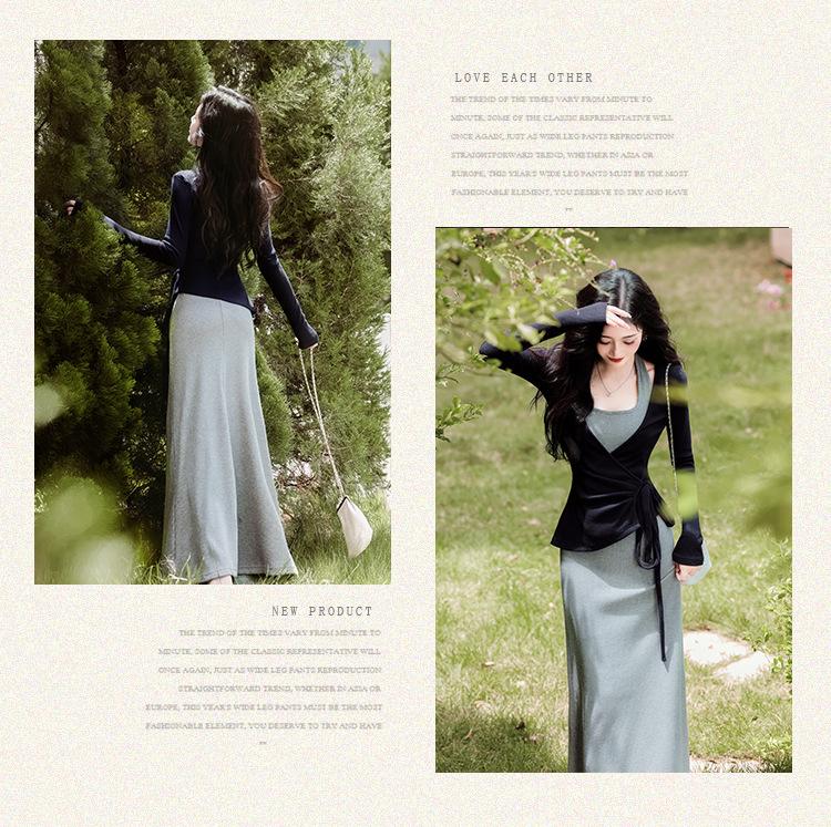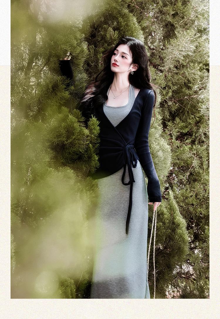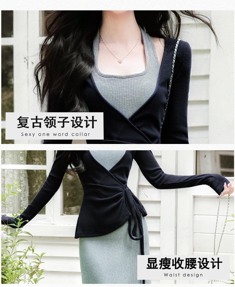Vestido Halter Adelgazante con Temperamento + Top Anudable En Stock
