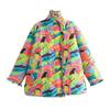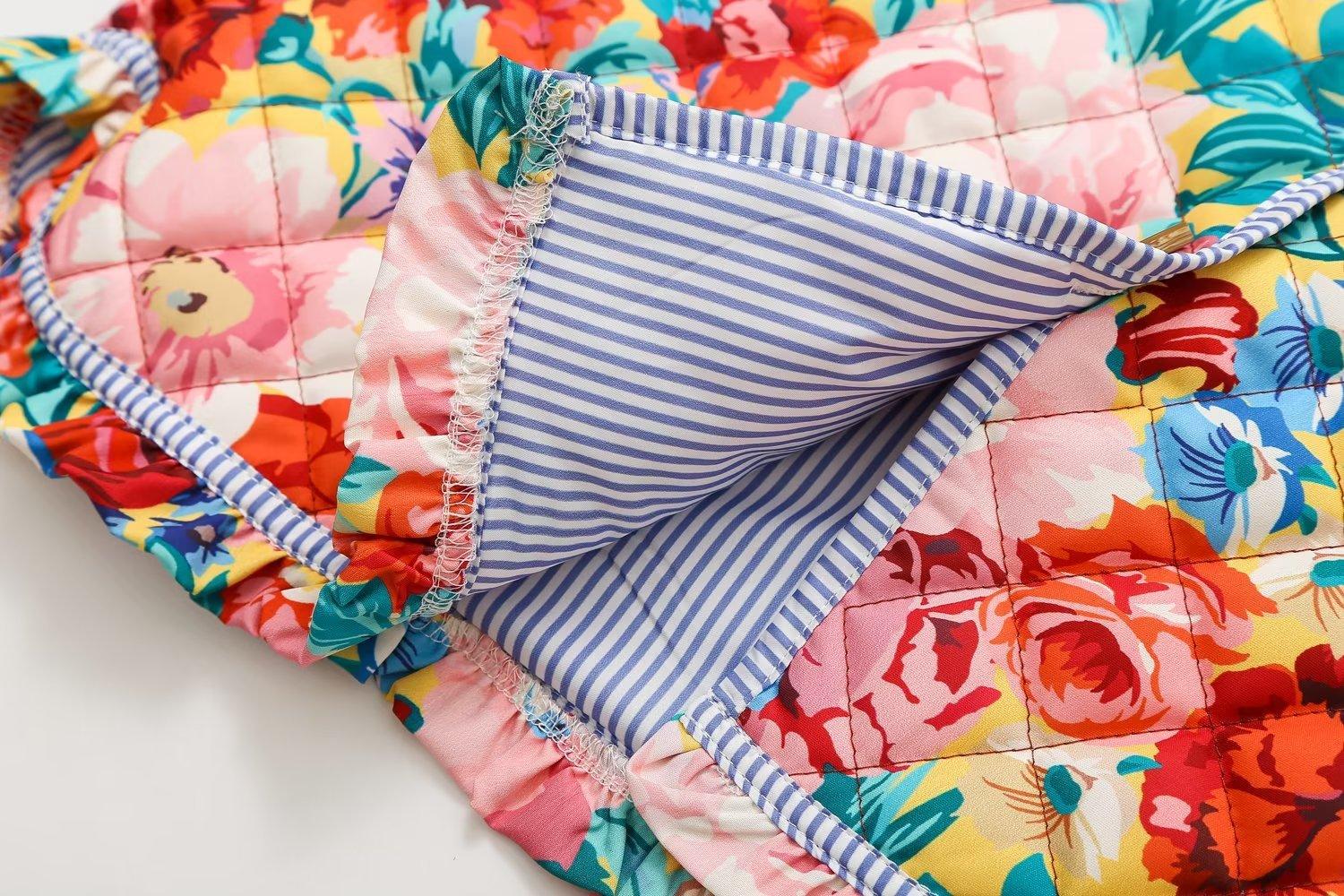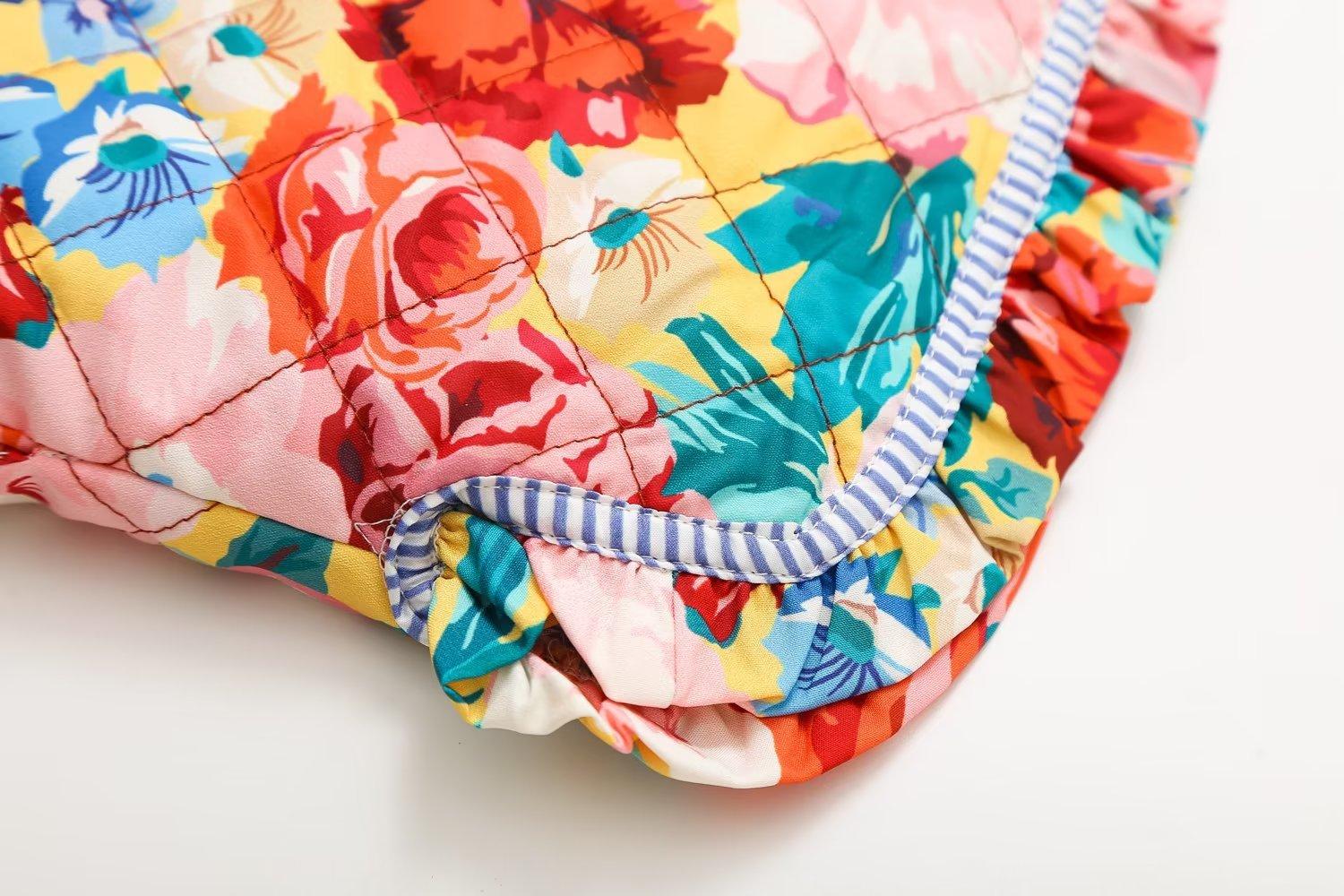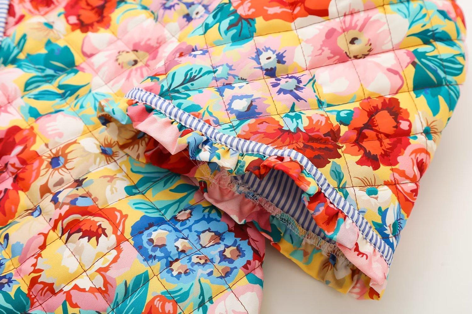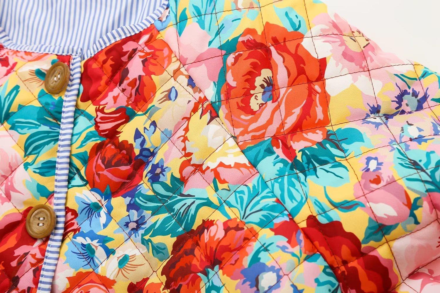 Venta al por mayor 2023 otoño nuevo estilo europeo y americano abrigo de algodón acolchado vintage estampado con costuras a rayas para mujer