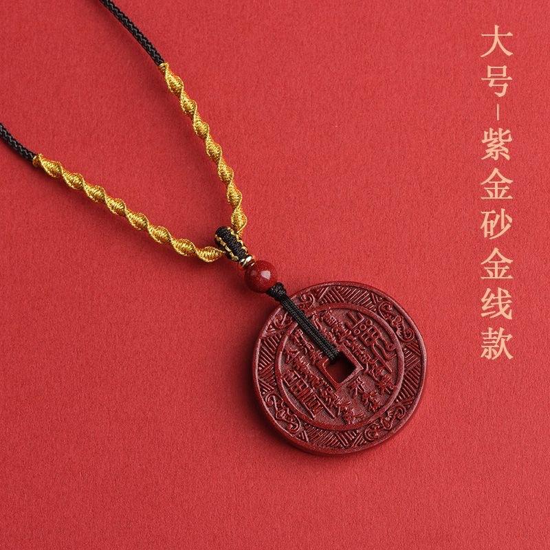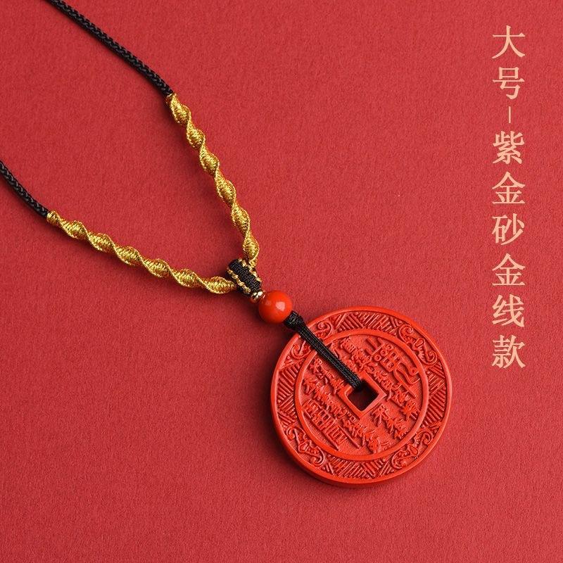 Collar con colgante de flor de espíritu de montaña del año del zodíaco para mujer Colgante de cinabrio natural Cadena para suéter de arena dorada púrpura La fábrica puede enviar en nombre