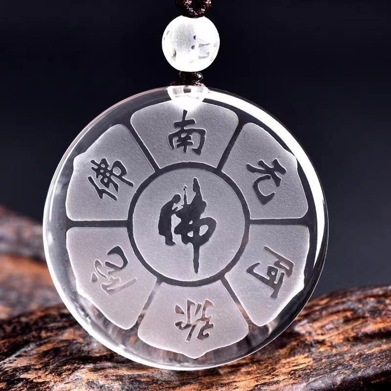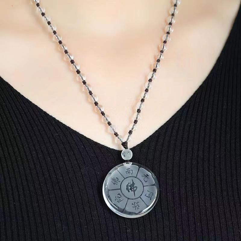 Colgante de Cristal Blanco Nanwu Amitabha Año Animal para Hombre y Mujer Collar Colgante Amuleto de Buda para Pareja Masculino y Femenino Regalo