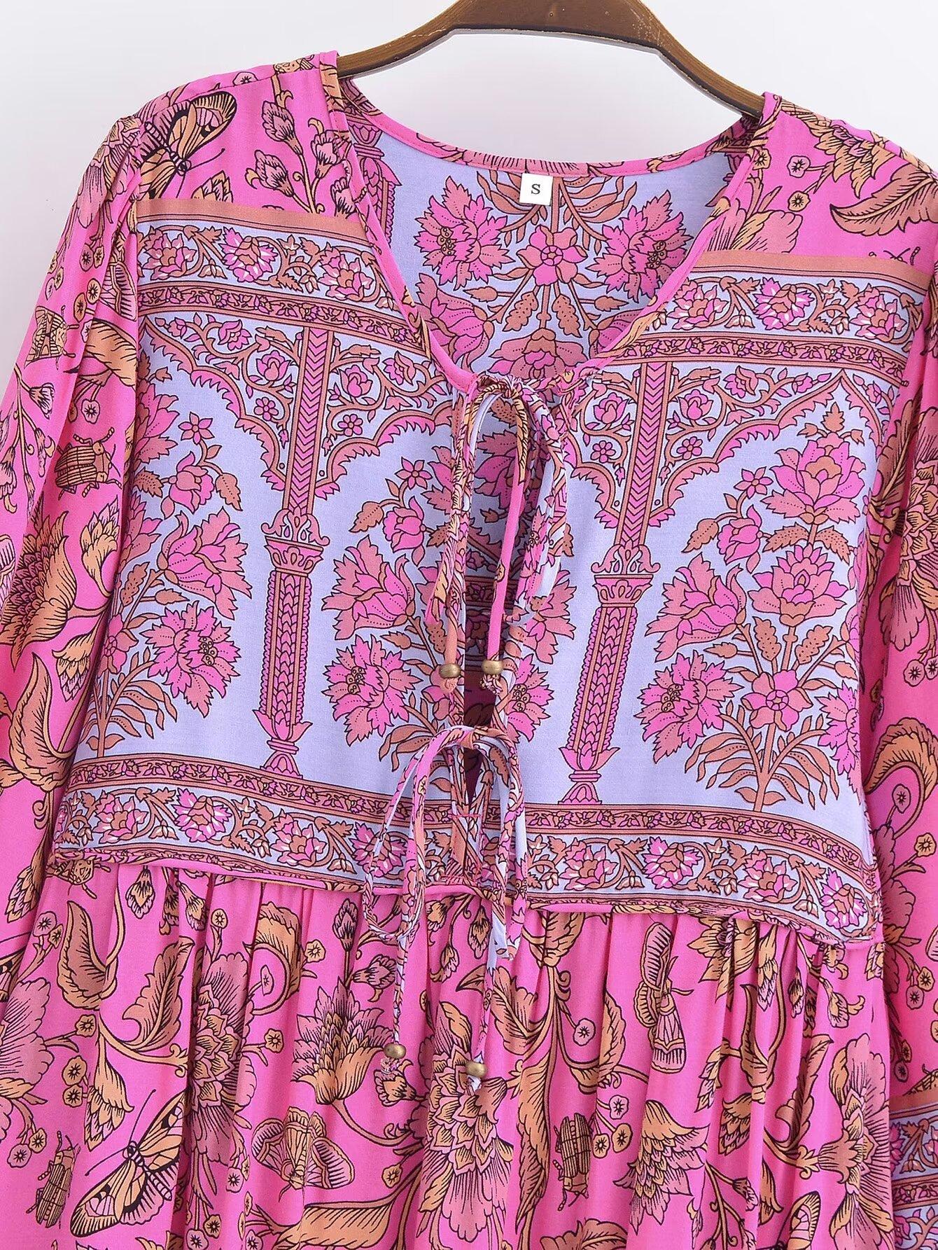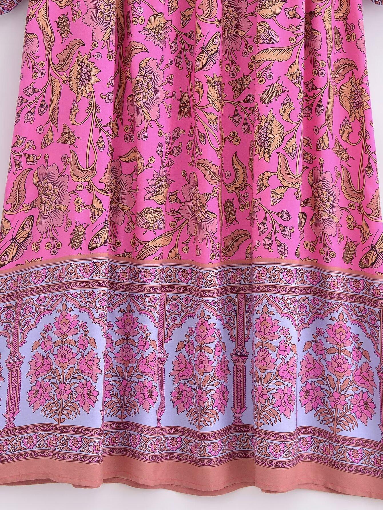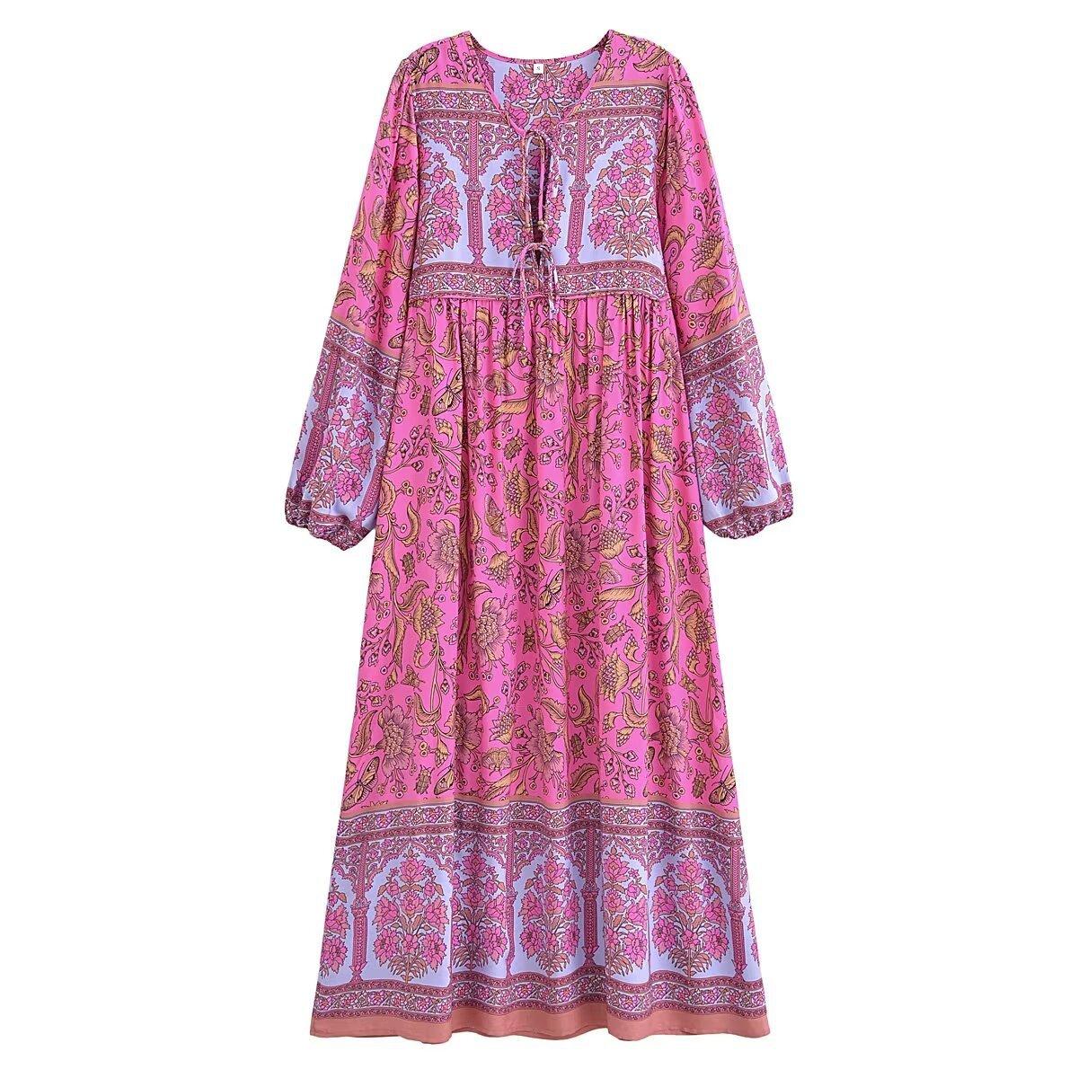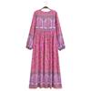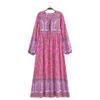 Venta al por mayor 2025 Primavera Nuevo Estilo Europeo y Americano Vestido Largo de Rayón con Posicionamiento de Flores y Borlas de Manga Larga para Mujer 8820