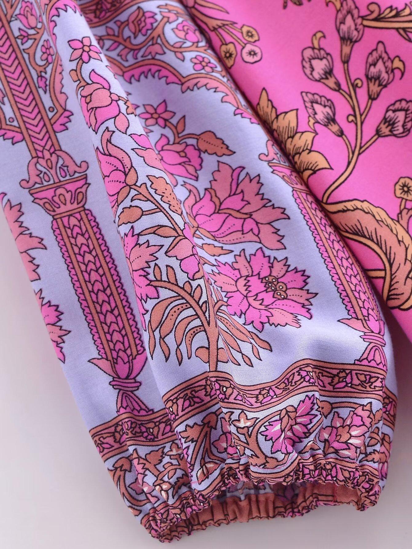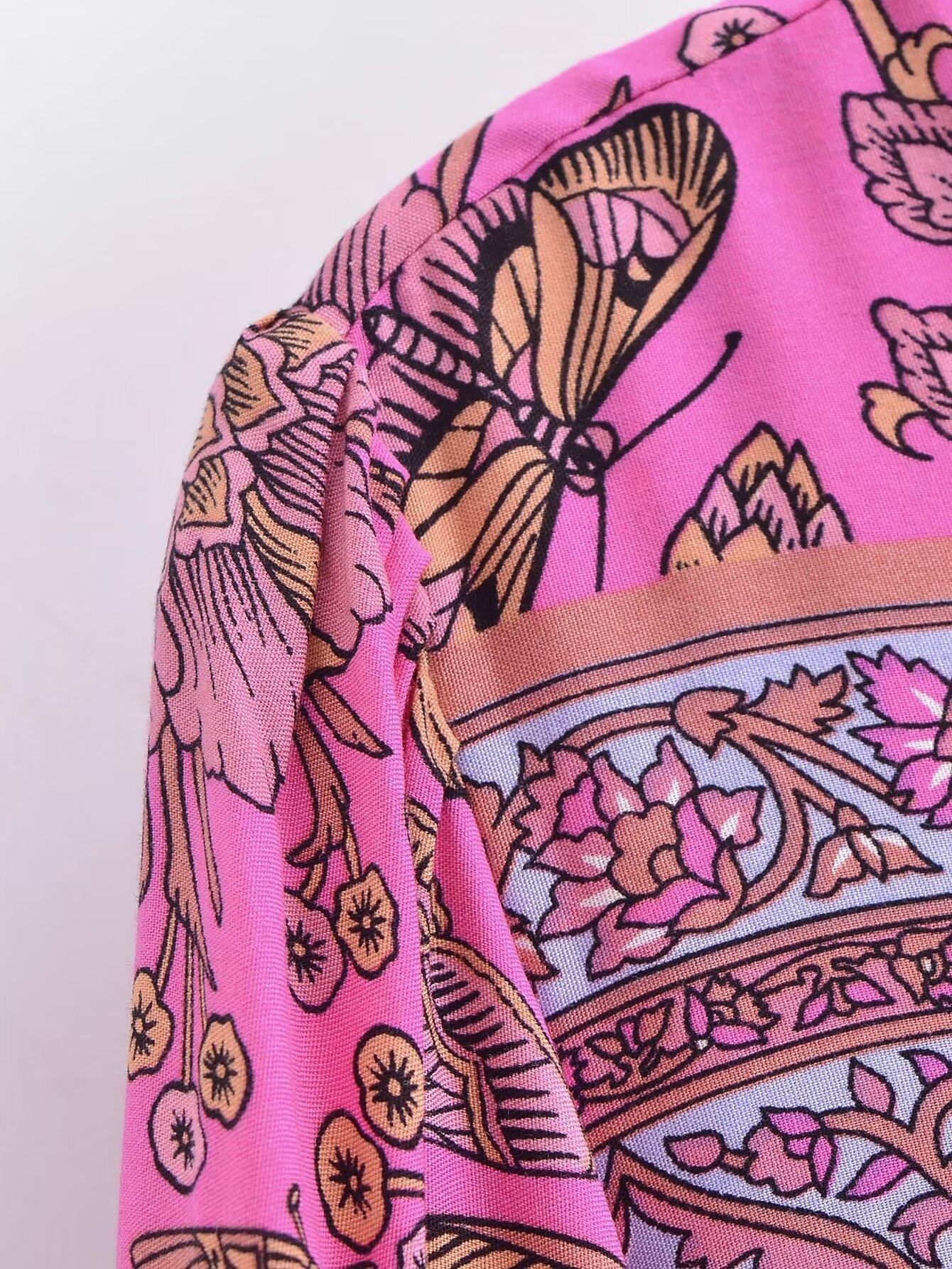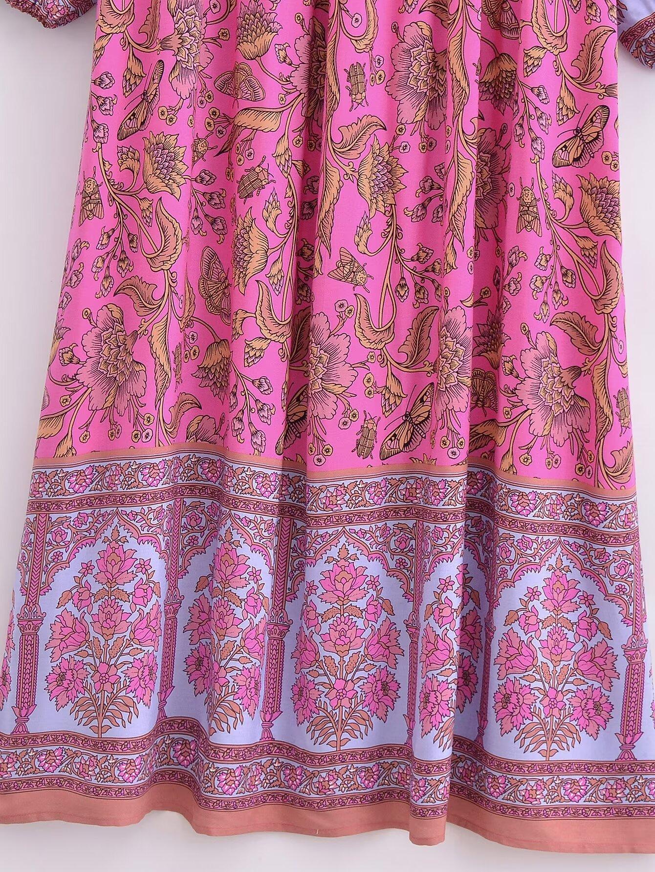Venta al por mayor 2025 Primavera Nuevo Estilo Europeo y Americano Vestido Largo de Rayón con Posicionamiento de Flores y Borlas de Manga Larga para Mujer 8820