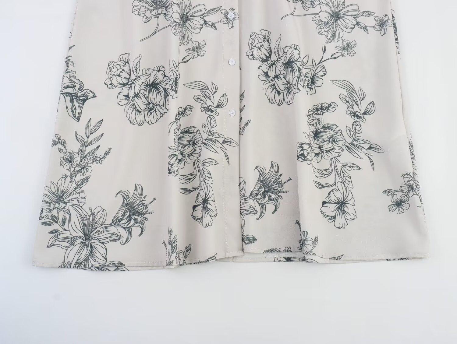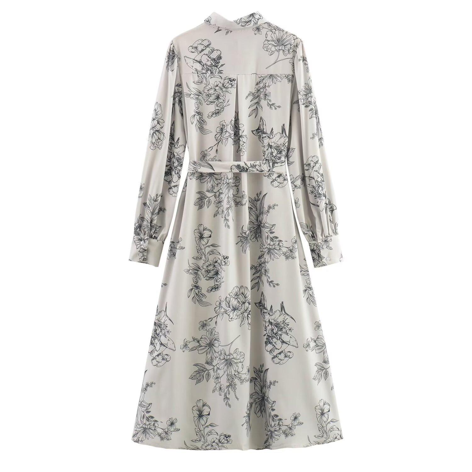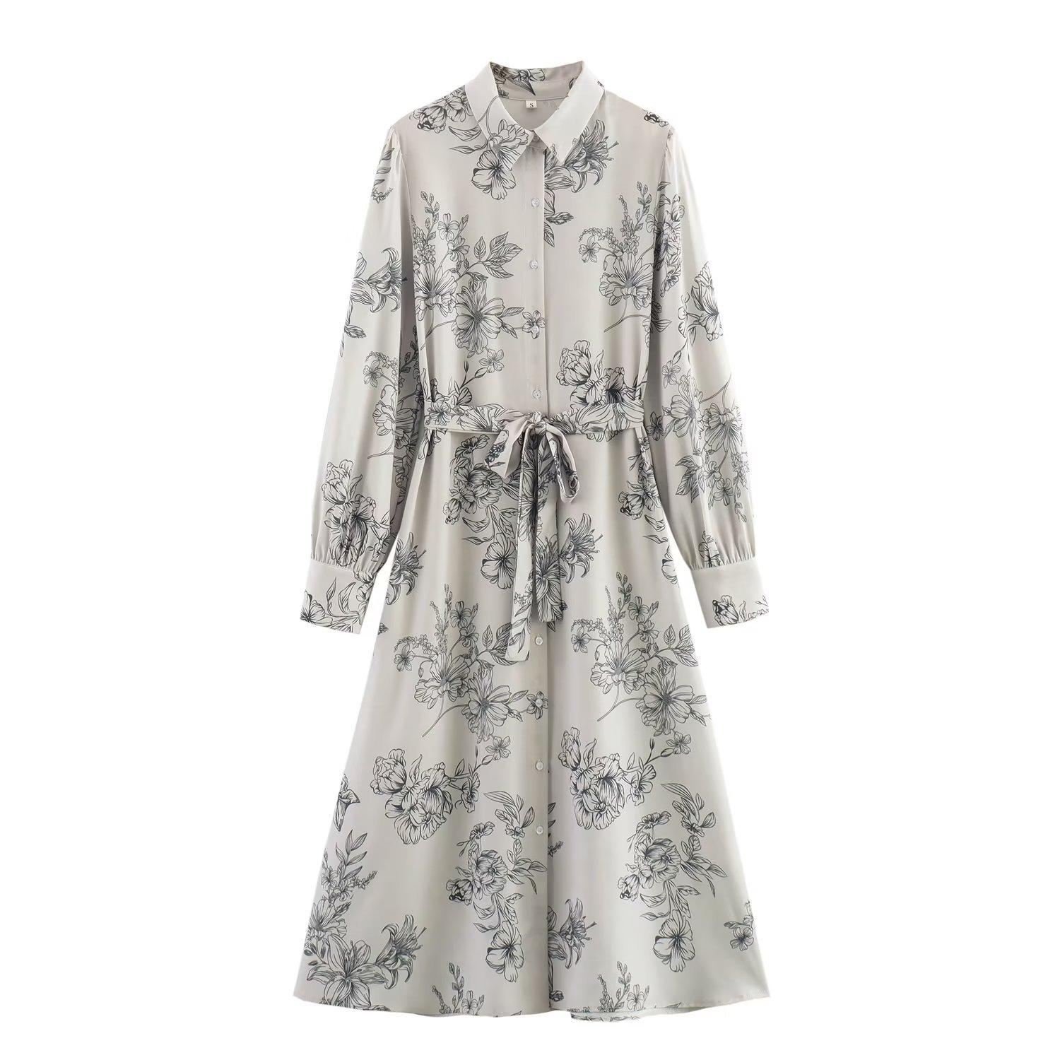 Venta al por mayor 2024 otoño nuevo estilo europeo y americano camisa de mujer vestido midi de manga larga estampado