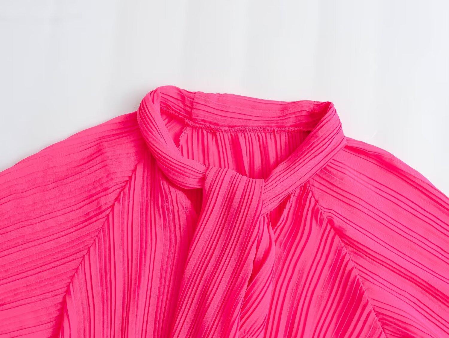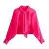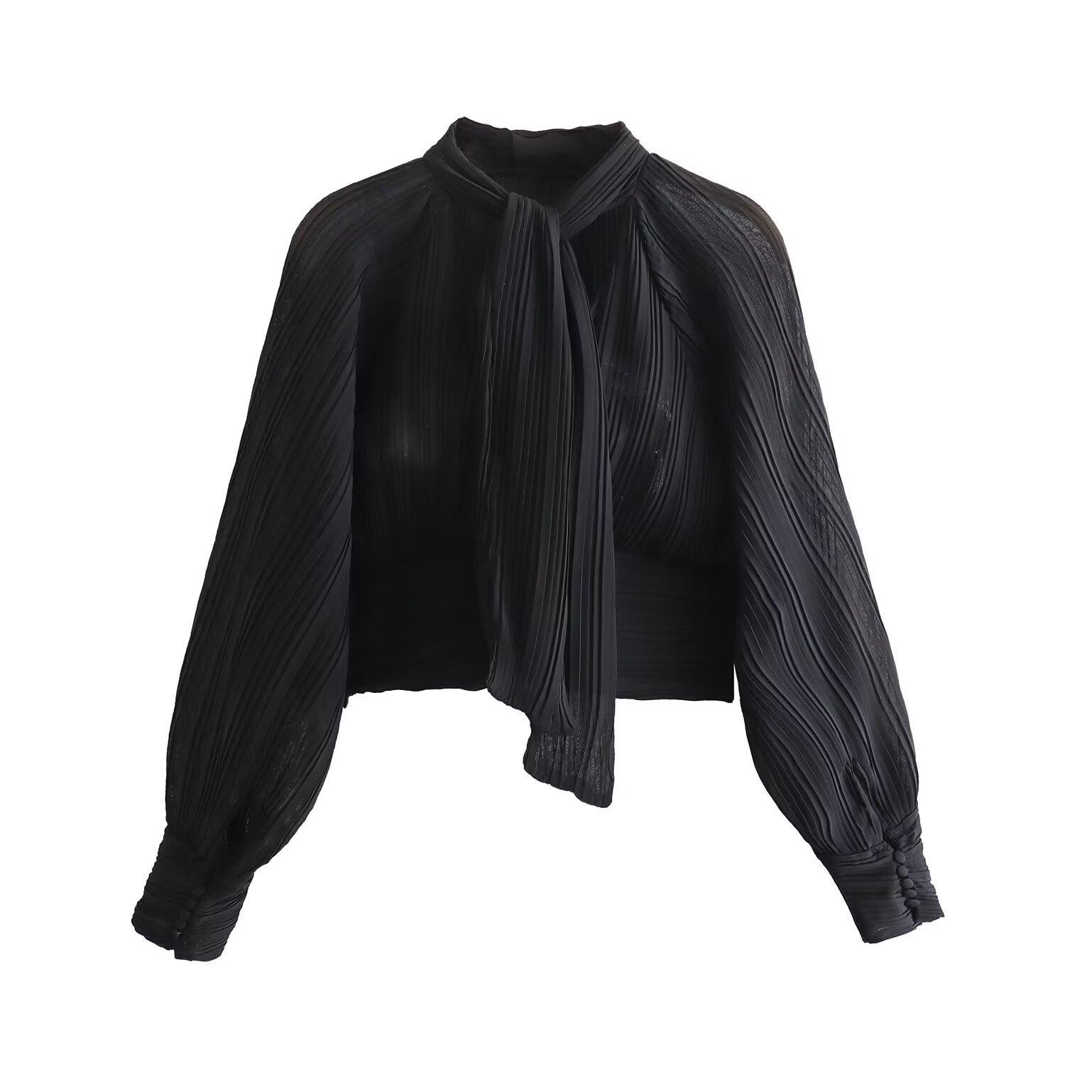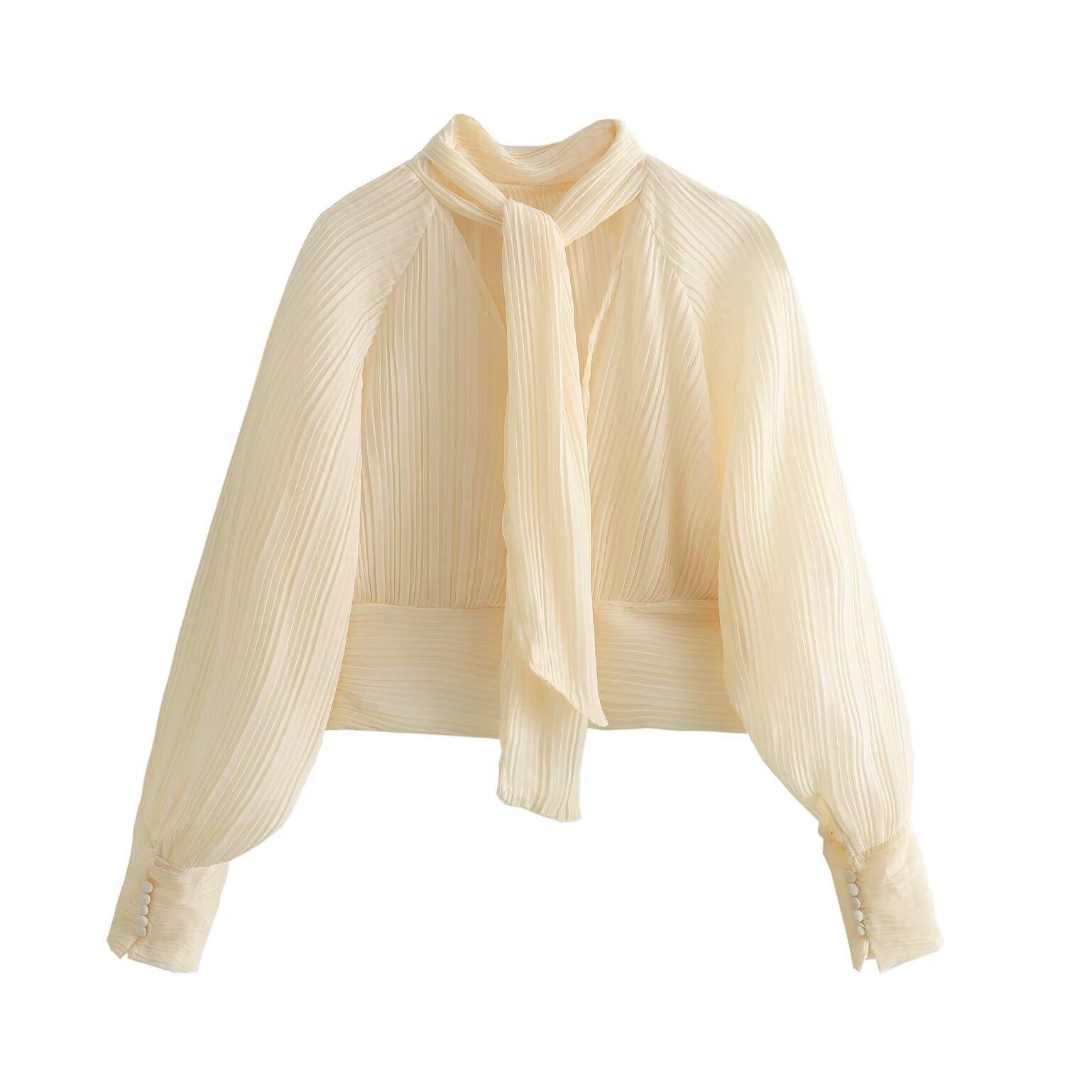 Camisa holgada de manga larga con lazo plisado para mujer, nuevo estilo europeo y americano 2024 al por mayor