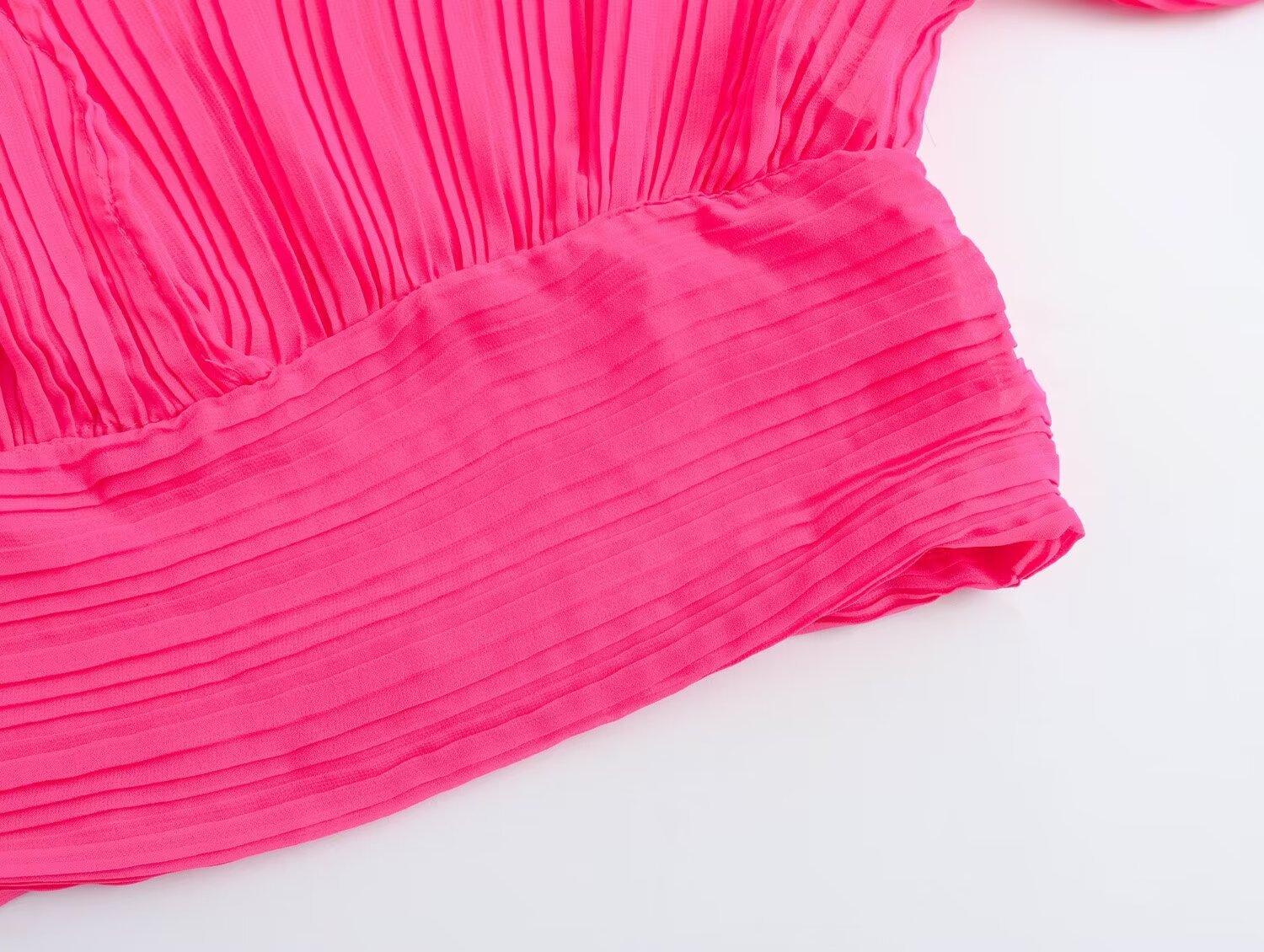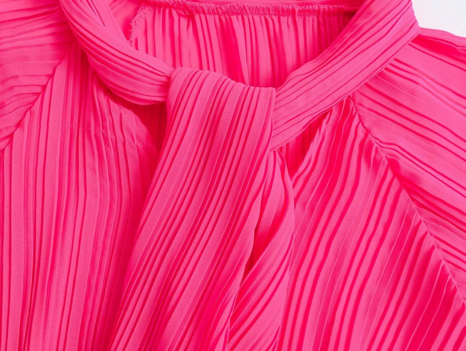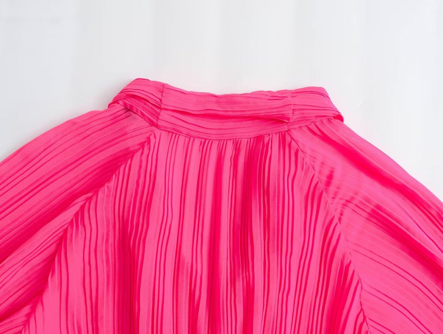 Camisa holgada de manga larga con lazo plisado para mujer, nuevo estilo europeo y americano 2024 al por mayor