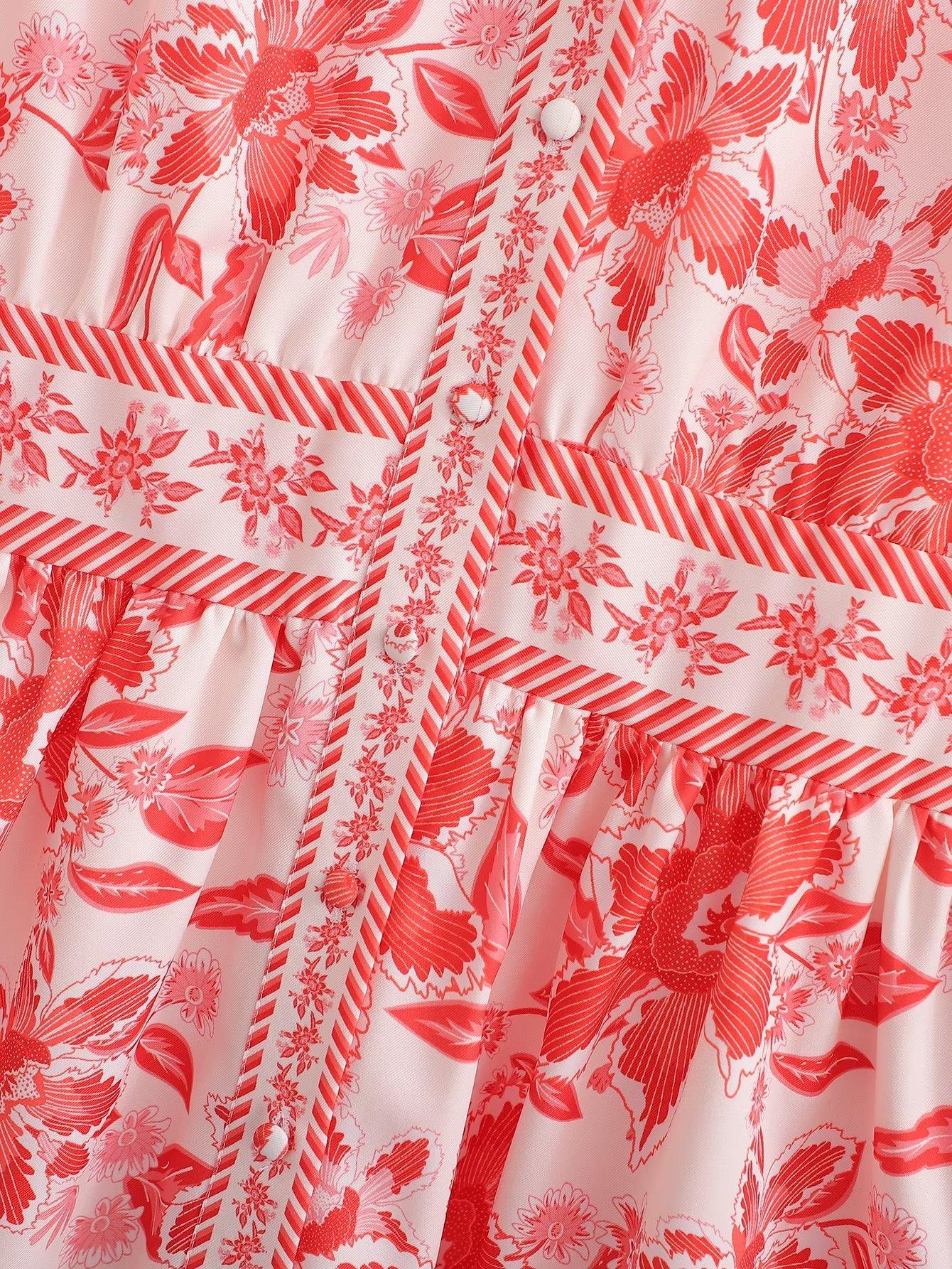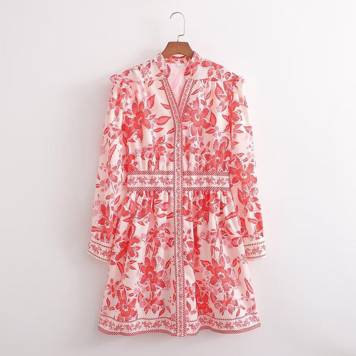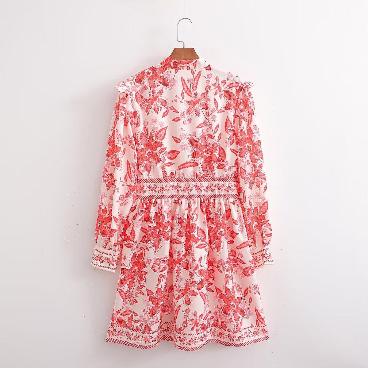 Vestido de manga larga con estampado floral para mujer al por mayor, nuevo otoño 2024, estilo europeo y americano