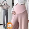 Pantalones Nuevos para Mujeres Embarazadas 2024 Otoño e Invierno Ropa Exterior Pantalones de Cintura Baja Moda Primera Línea Sueltos Dosis Delgada Pantalones de Pierna Ancha con Forro Polar