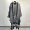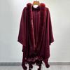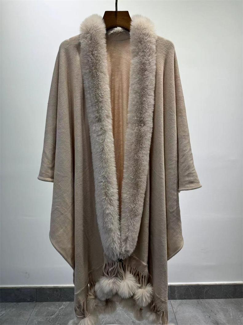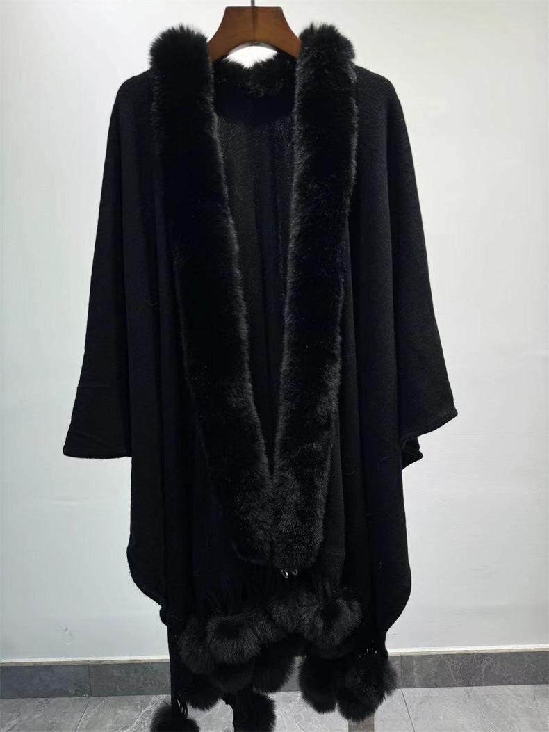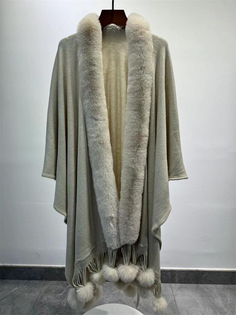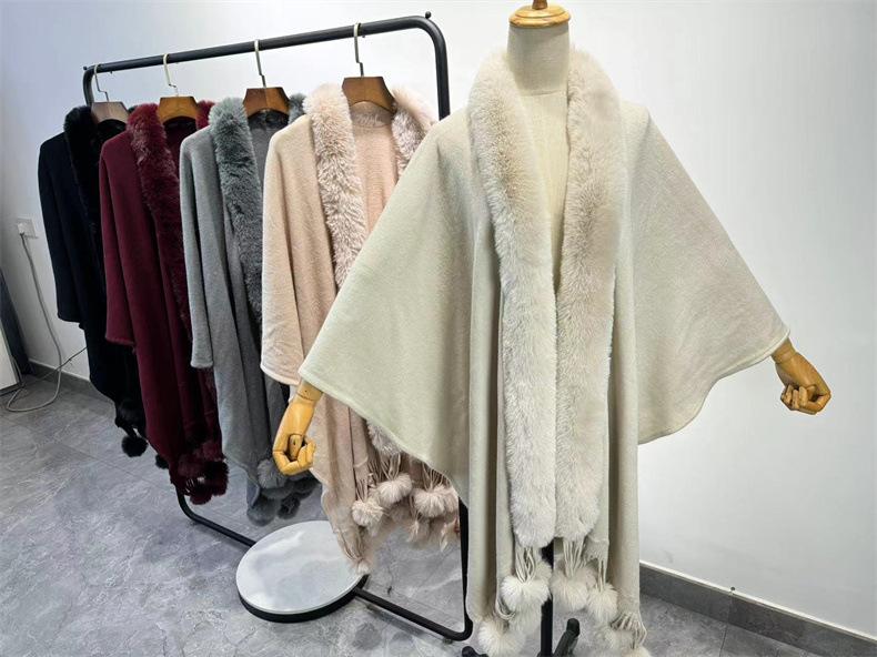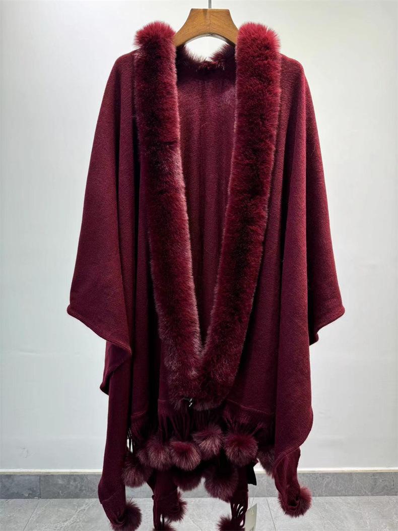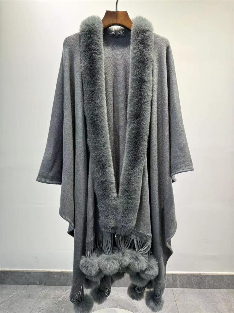 Diseño Transfronterizo Dobladillo Bola de Pelo Capa de Longitud Media Chaqueta Color Puro Estilo Occidental Dama Talla Grande Chal Capa para Mujeres