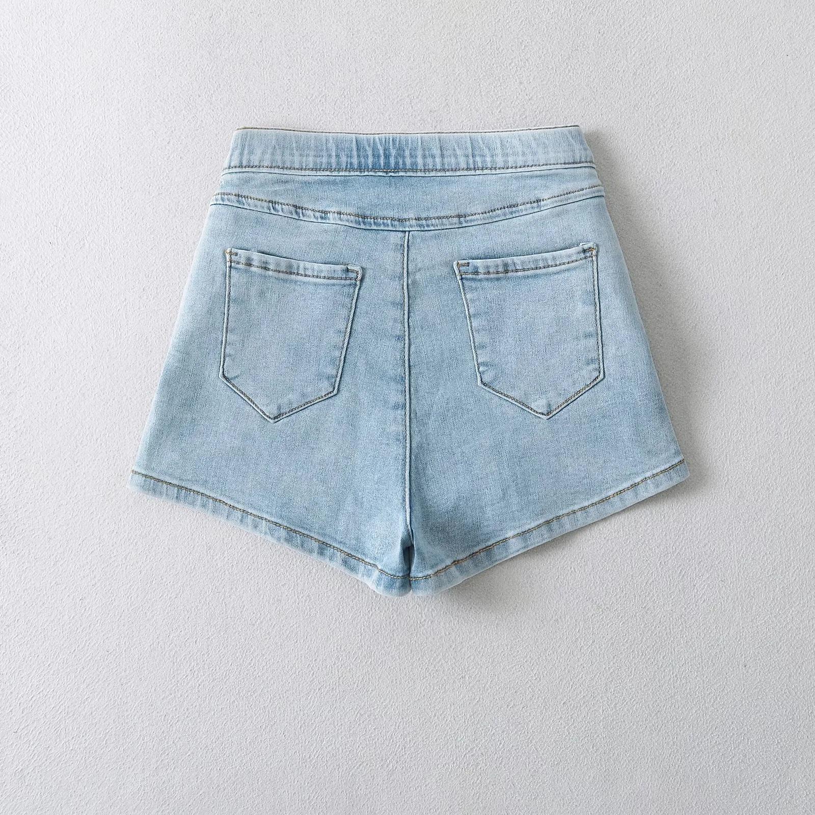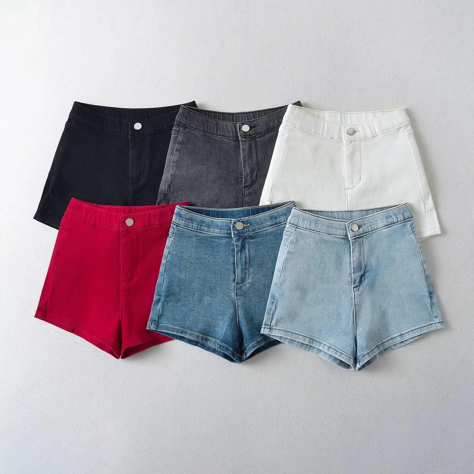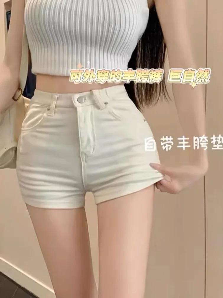 Shorts Ajustados Elásticos de Moda Estilo Americano para Mujer Verano Nuevo Elegantes Levanta Piernas Long Feng Cadera Denim Hot Pants