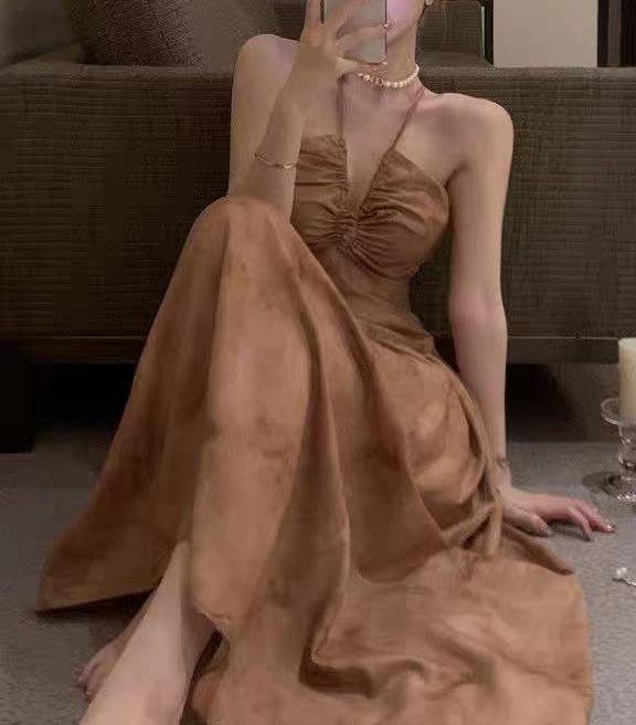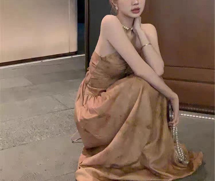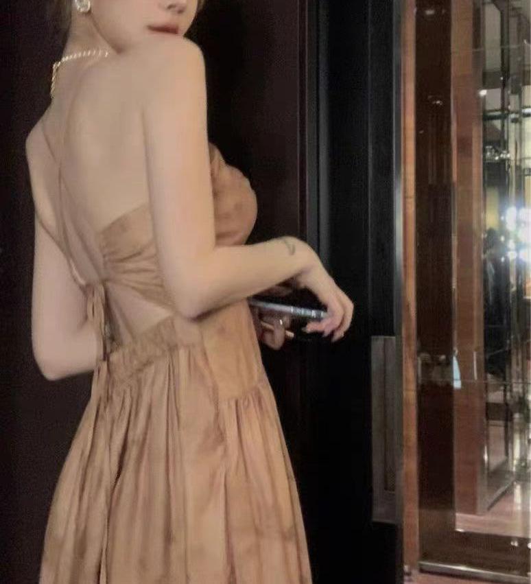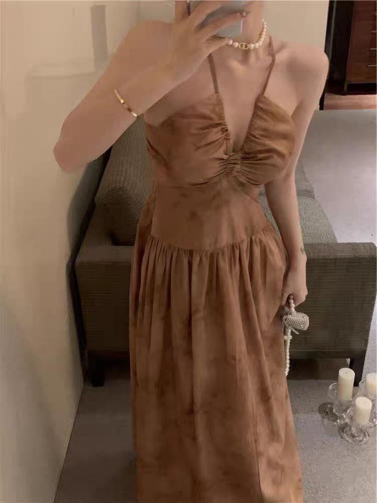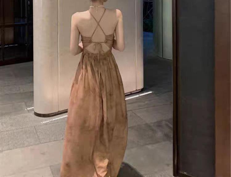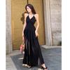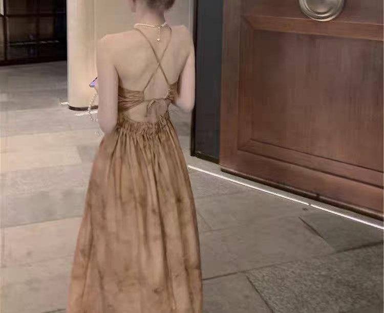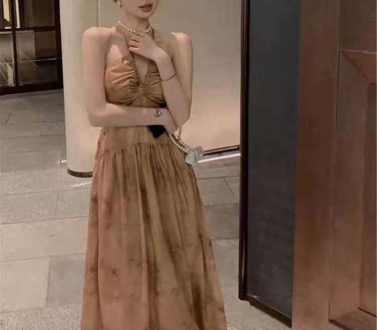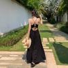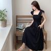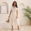 Diseño Hora del Té Estilo Hepburn Francés Vacaciones Junto al Mar Vestido de Cuello Falda de Playa de Verano Nuevo para Mujer 2024