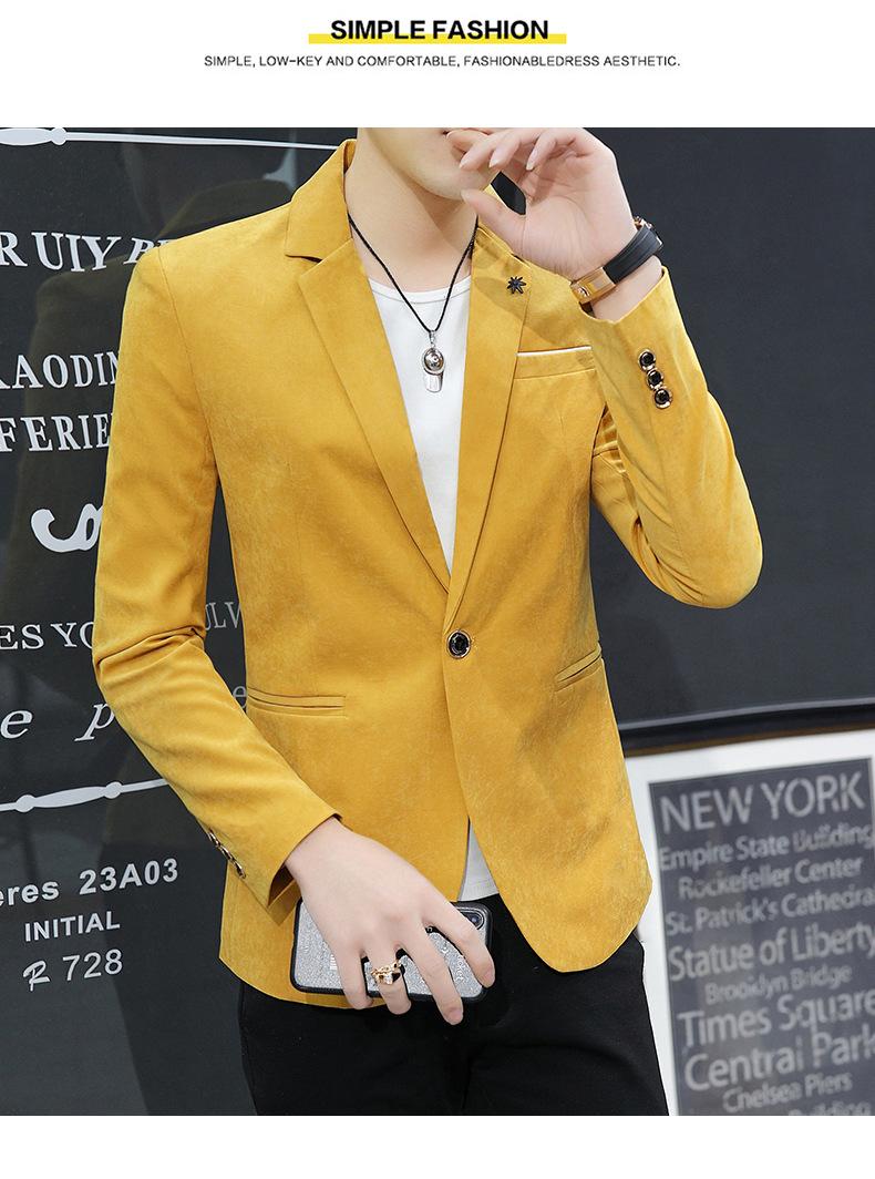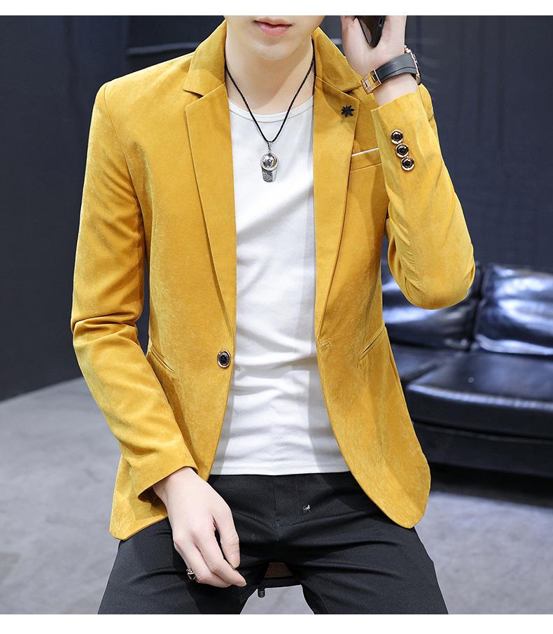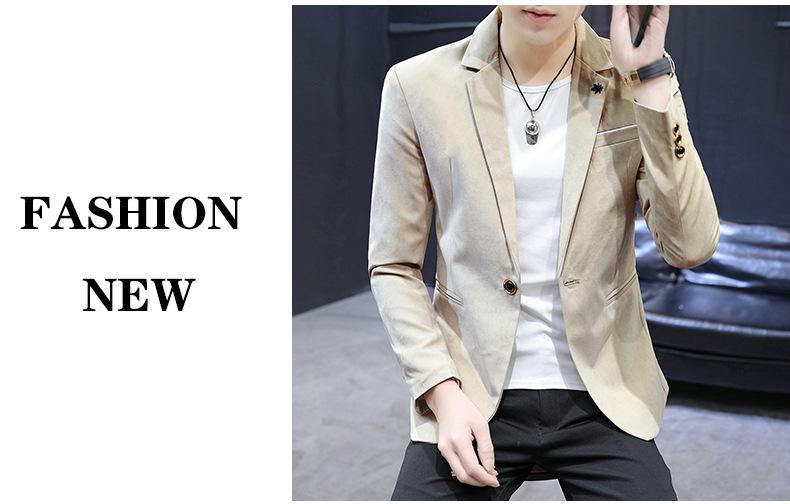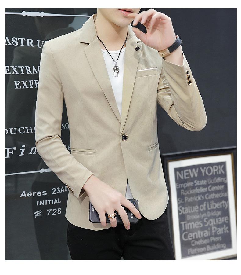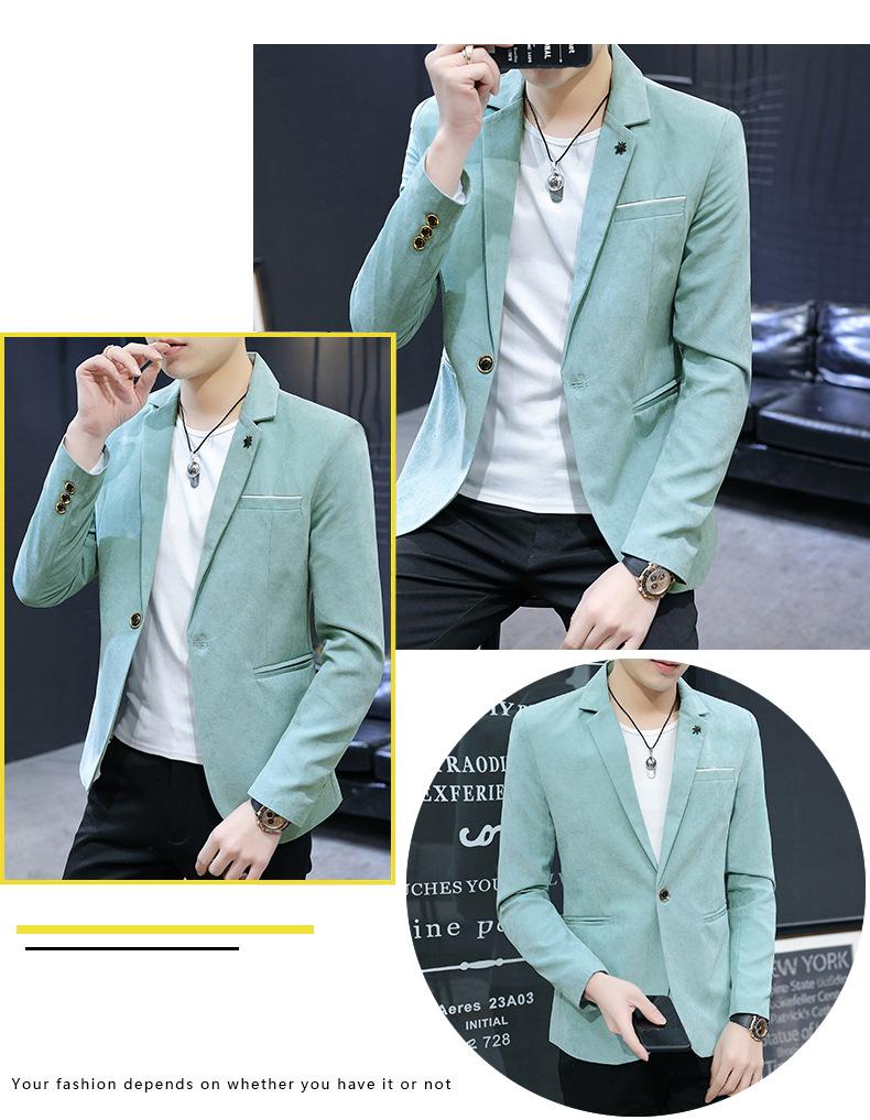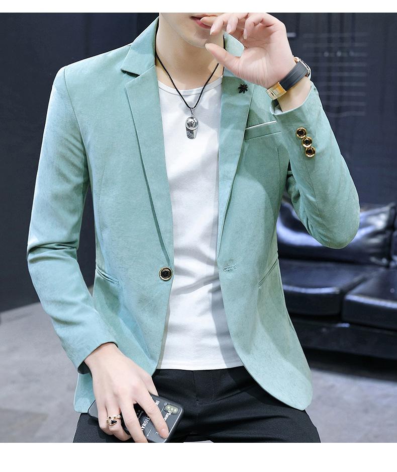 Traje de Primavera para Hombre Casual Estilo Coreano Ajustado Top Individual Joven Guapo Color Sólido Chaqueta de Traje Pequeña Tendencia
