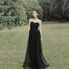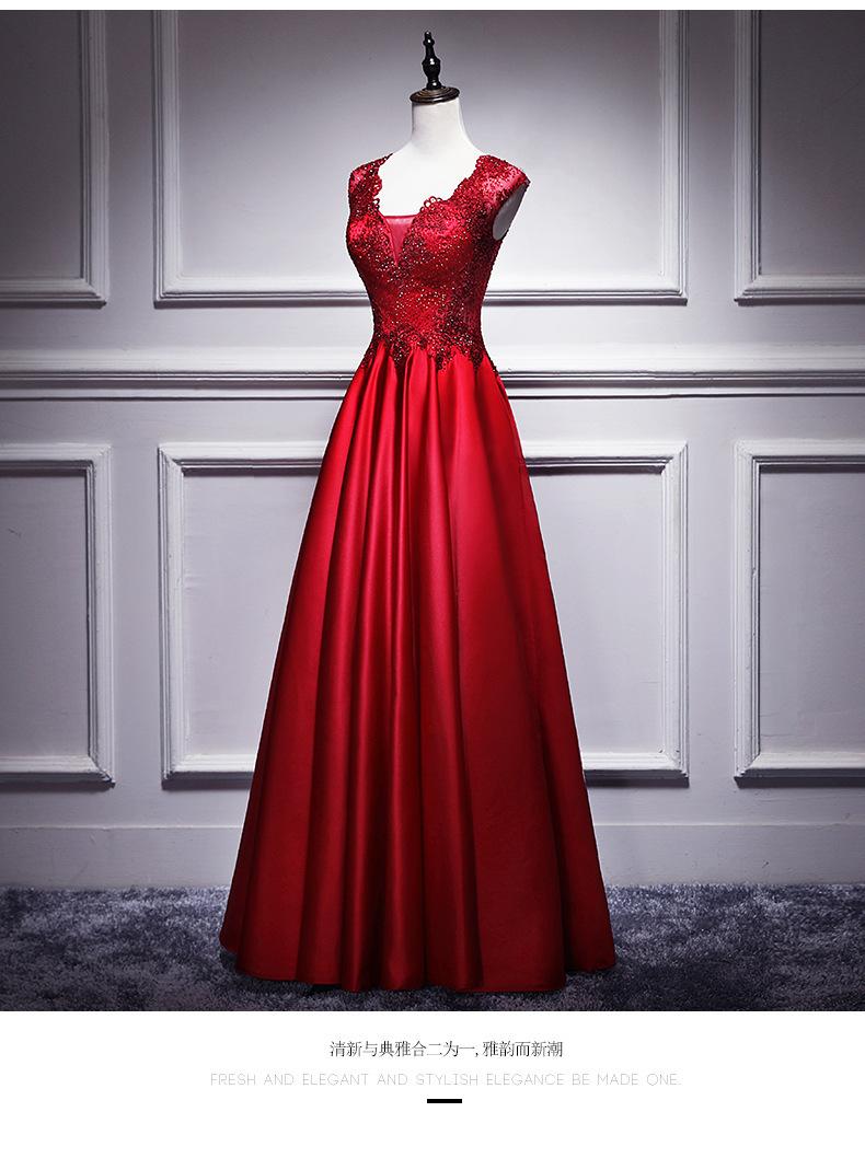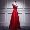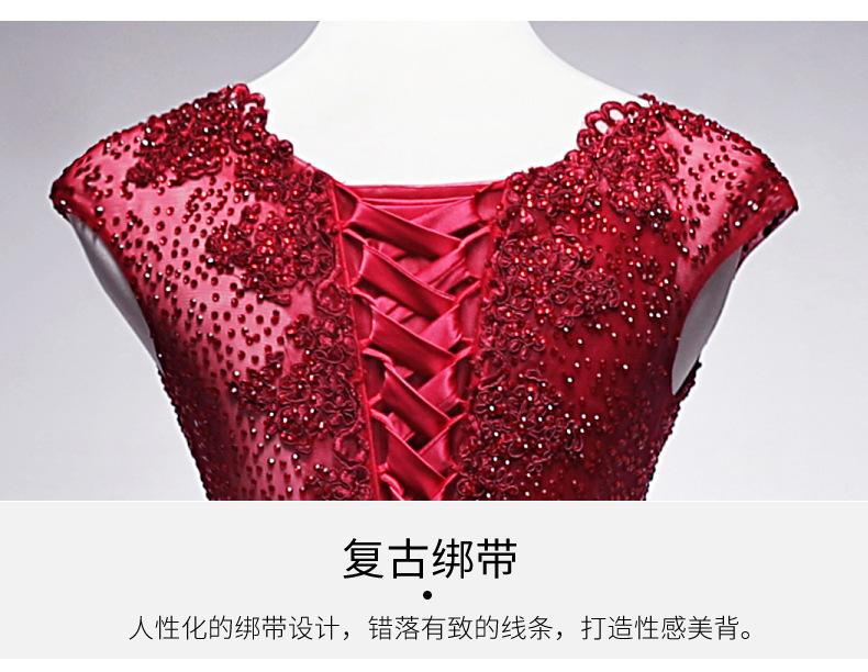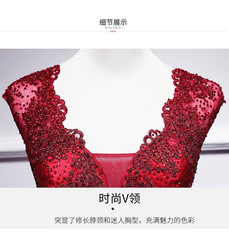 Vestido de Rendimiento Borgoña Vestido Transfronterizo Europeo y Americano Vestido Femenino Banquete Anfitrión Novia Brindis Vestido Vestido