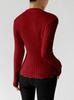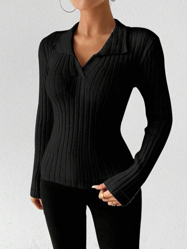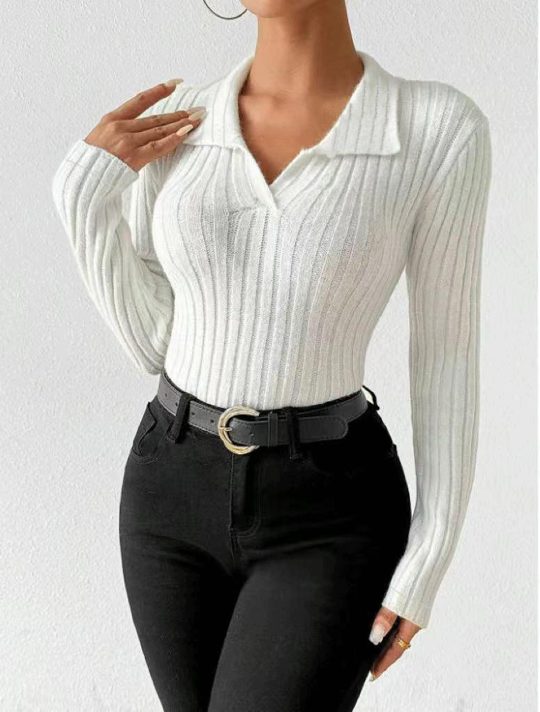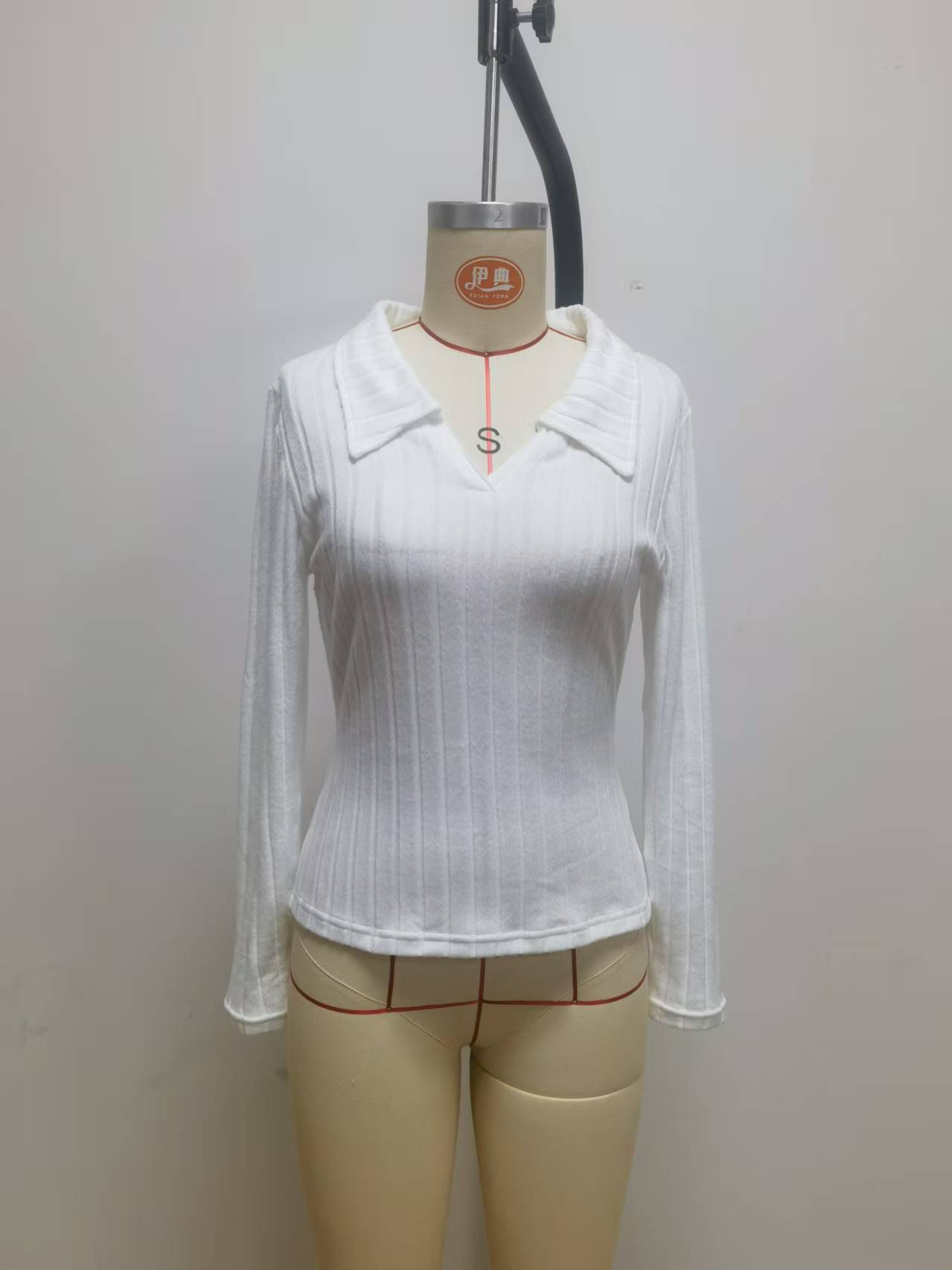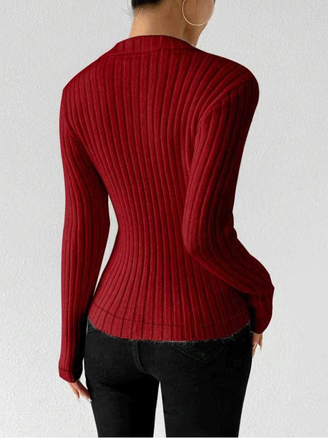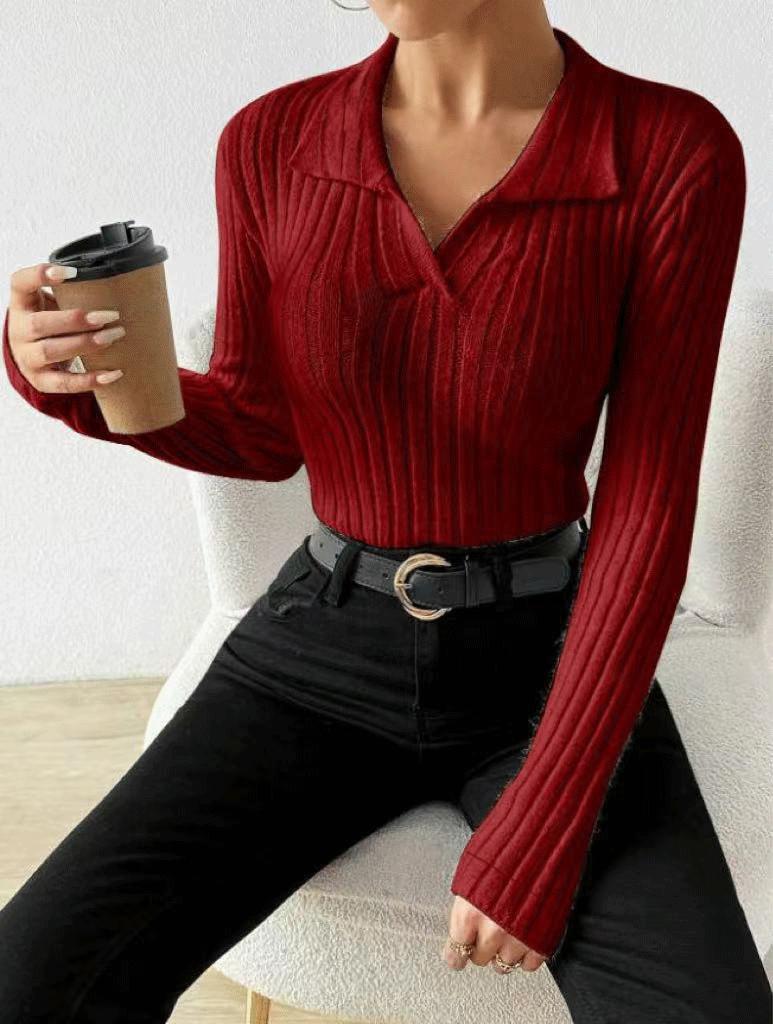 2025 Otoño/Invierno para Mujer Top de Capa Base de Manga Larga con Cuello en V Acanalado Cepillado de Ajuste Delgado Moda Transfronteriza Europea y Americana