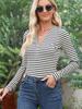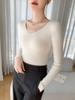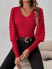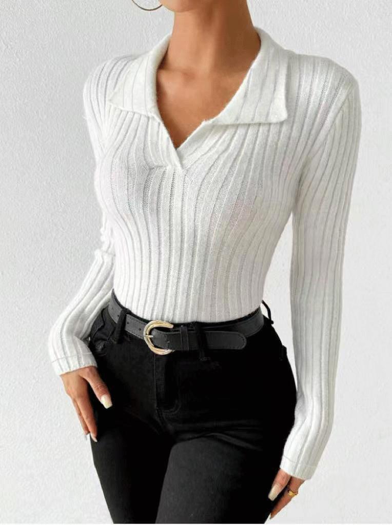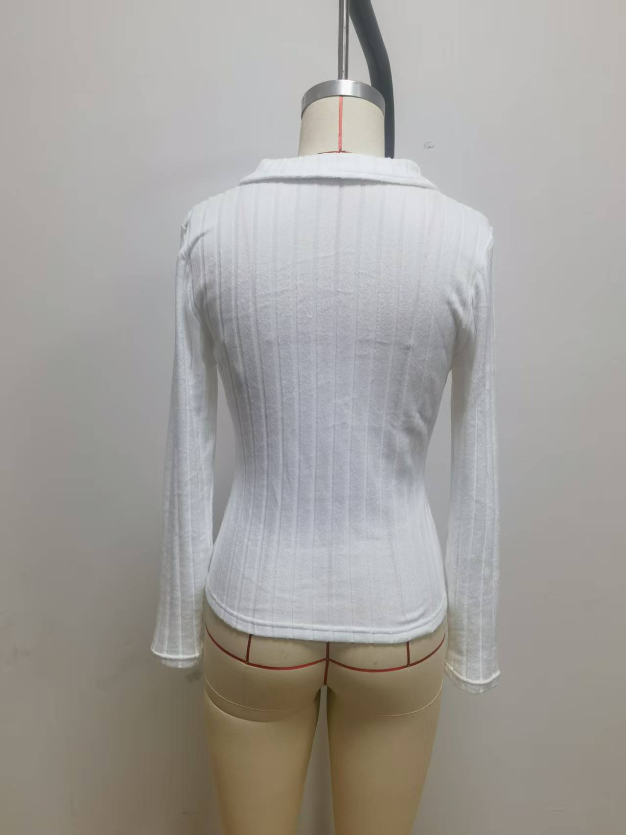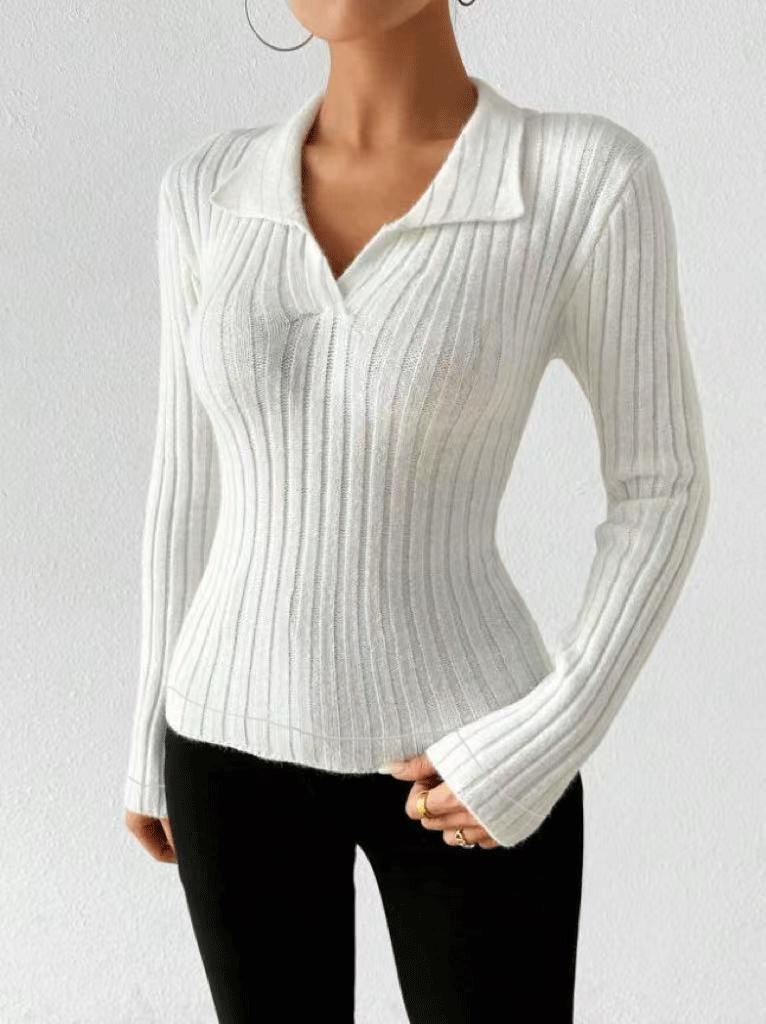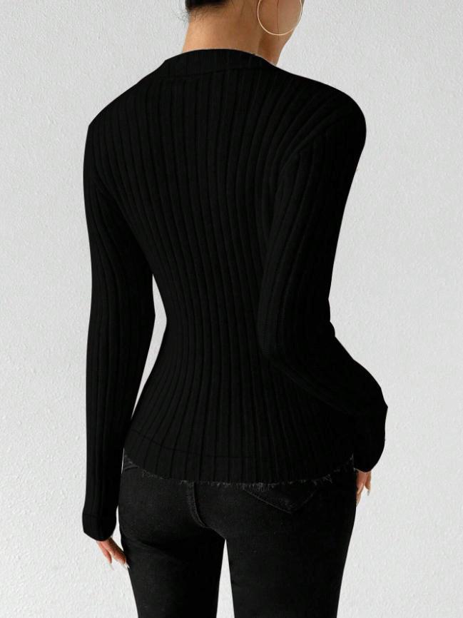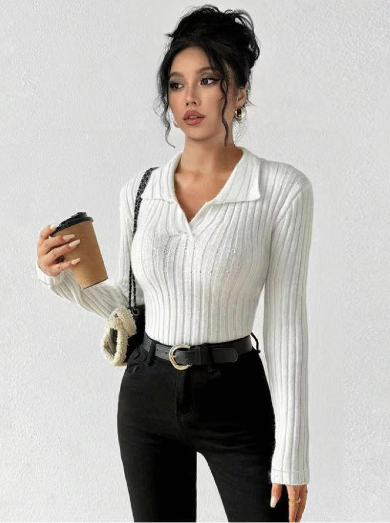 2025 Otoño/Invierno para Mujer Top de Capa Base de Manga Larga con Cuello en V Acanalado Cepillado de Ajuste Delgado Moda Transfronteriza Europea y Americana