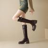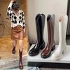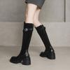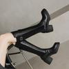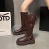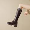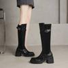 Nuevas Botas Martin para Mujer de Suela Gruesa con Cierre Trasero Color Sólido Punta Redonda Tacón Alto Talla Grande Botas de Cuero Otoño e Invierno Tacón Cuadrado Botas de Caña Alta