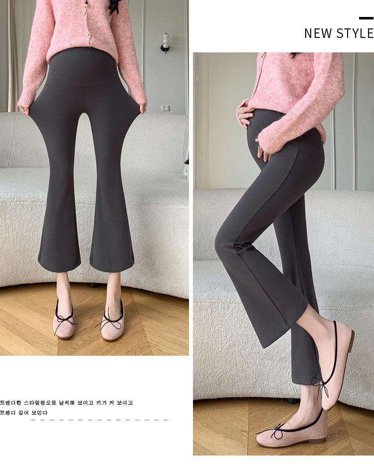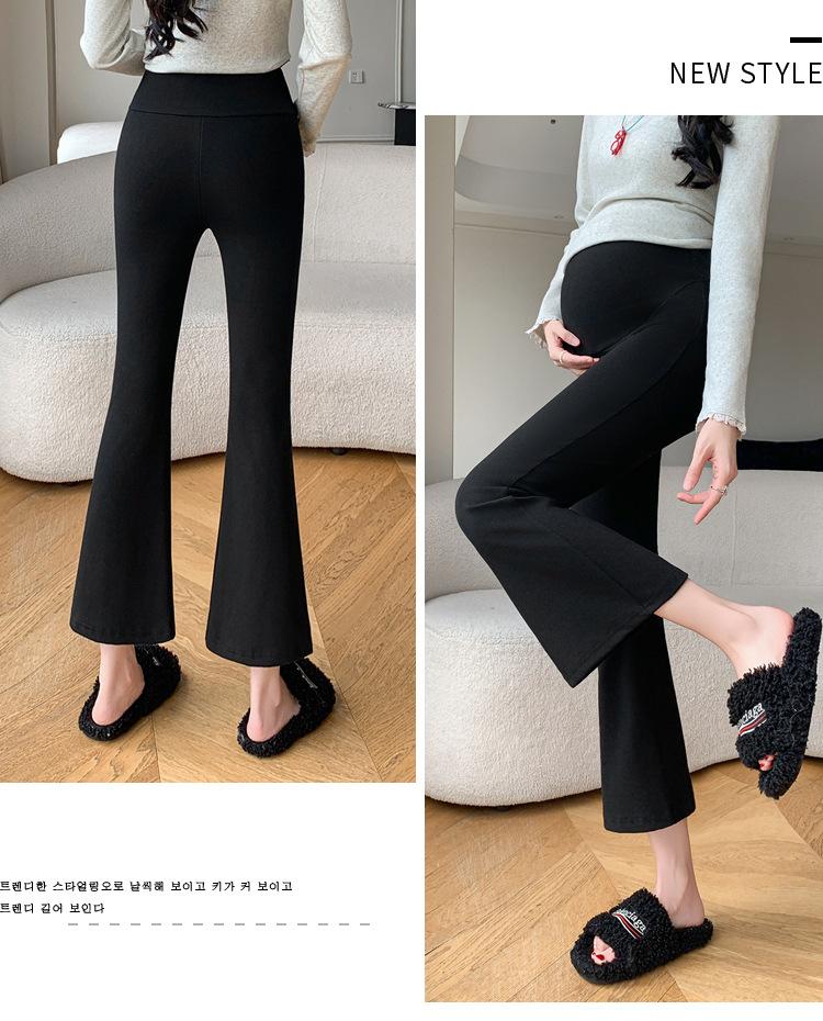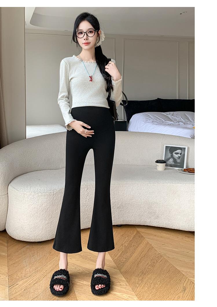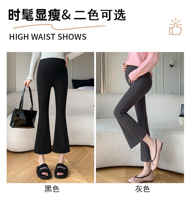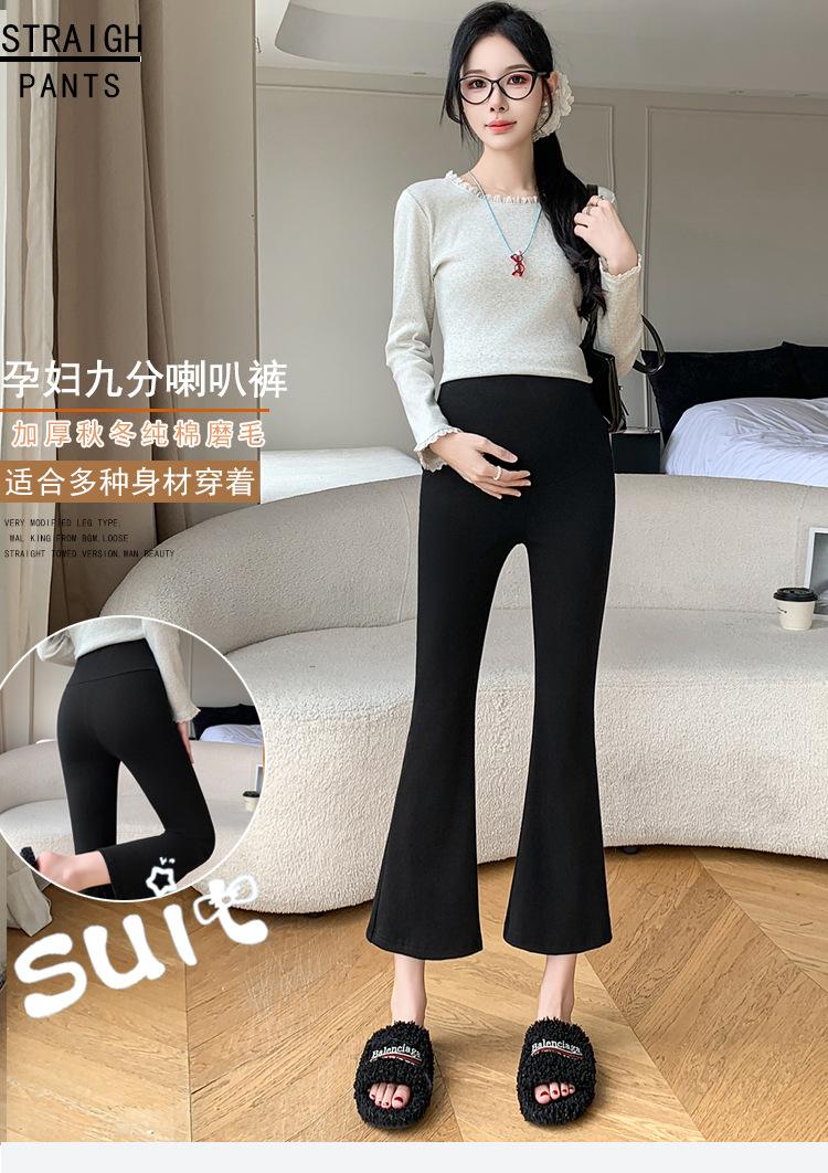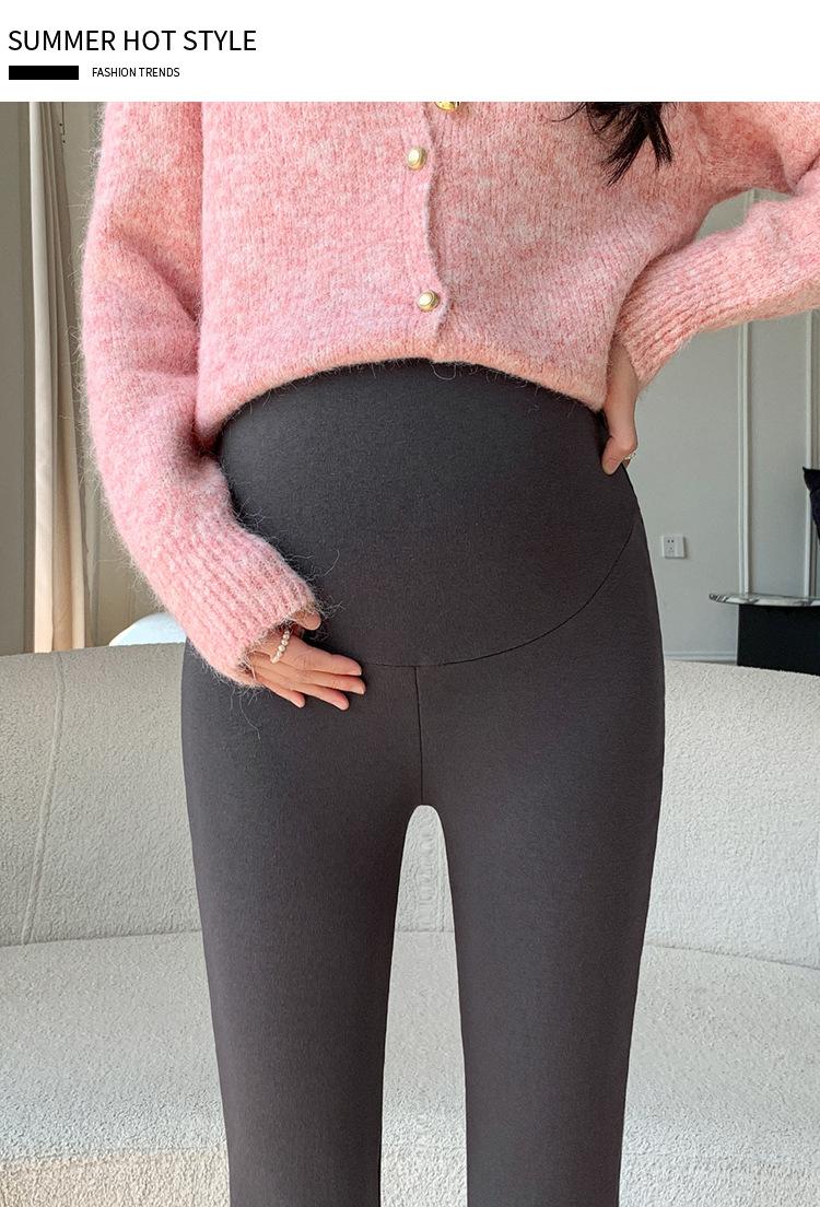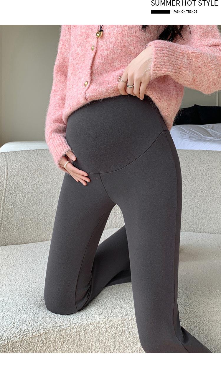 Pantalones de nueve puntos para mujeres embarazadas de otoño e invierno, ropa para mujeres embarazadas petite, cepillados, gruesos, agradables al tacto, corte ajustado, pantalones acampanados