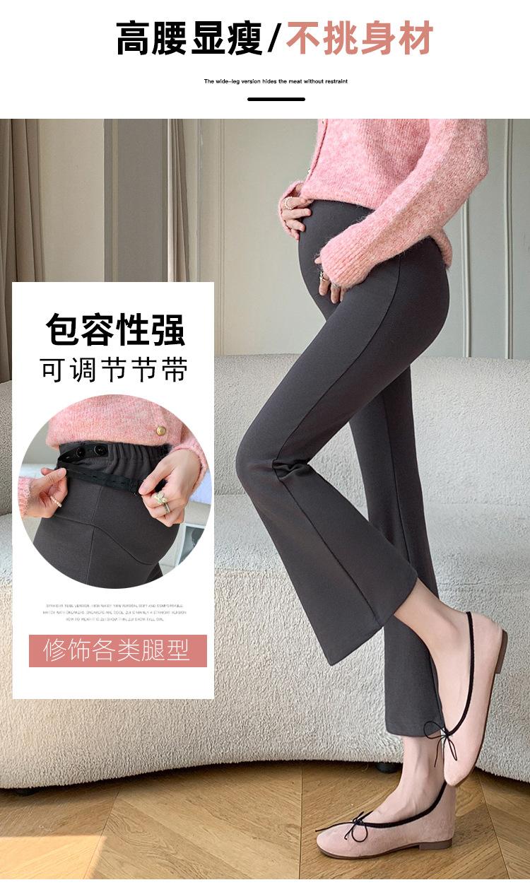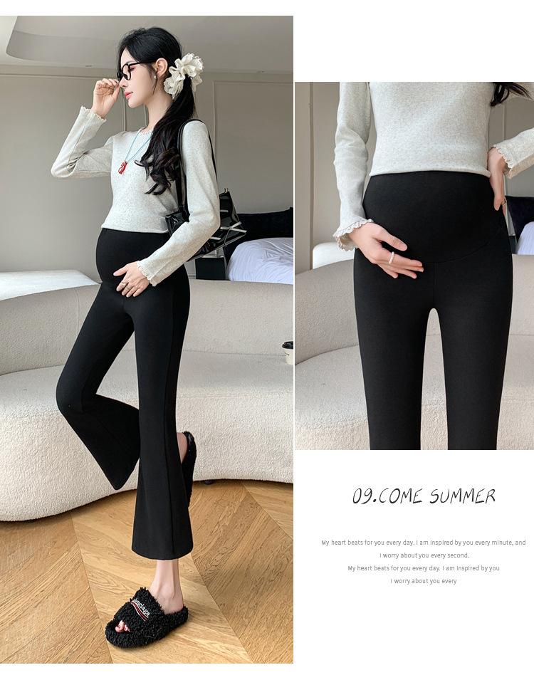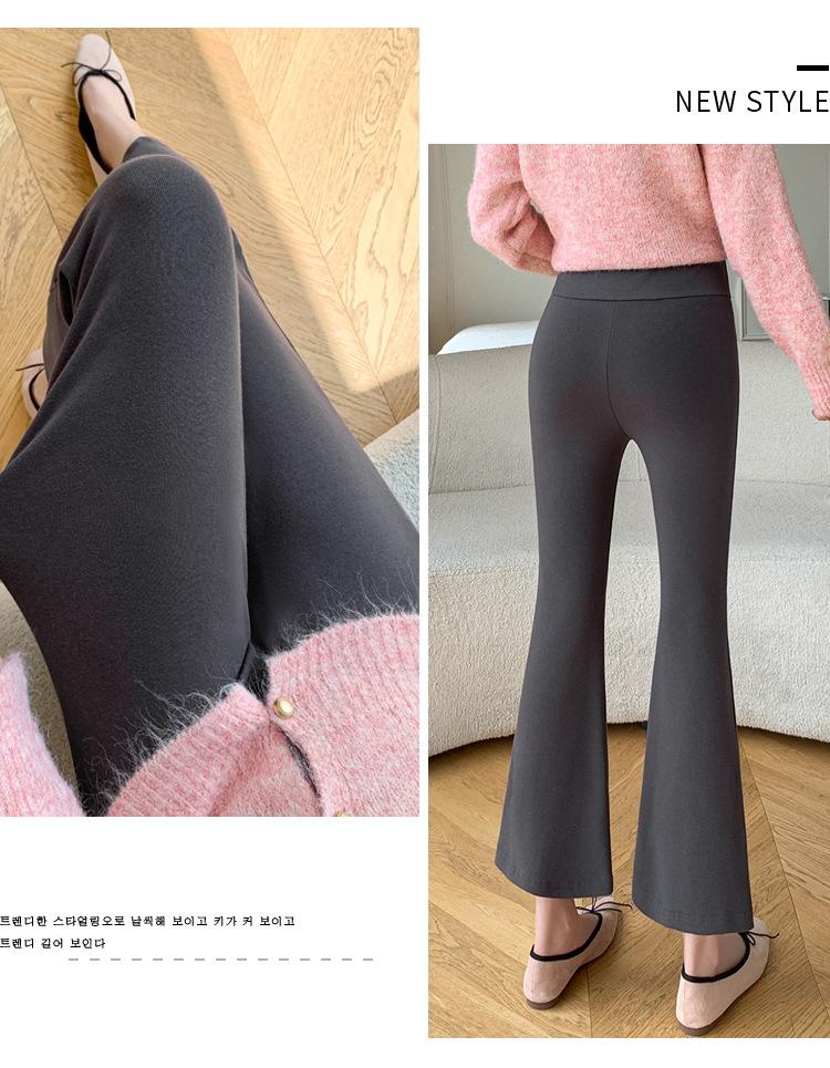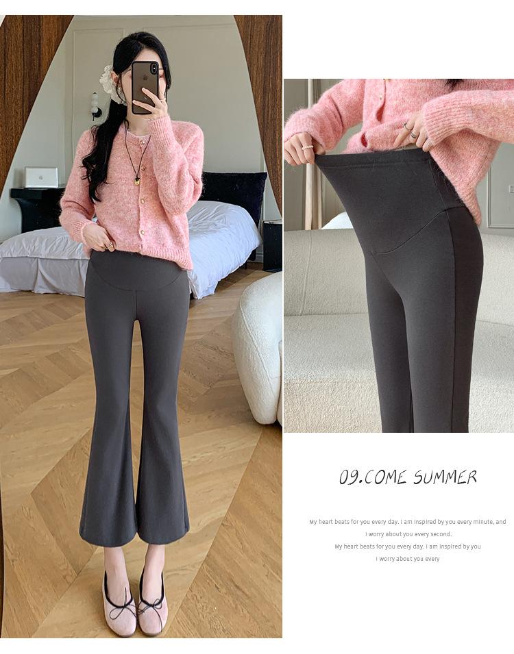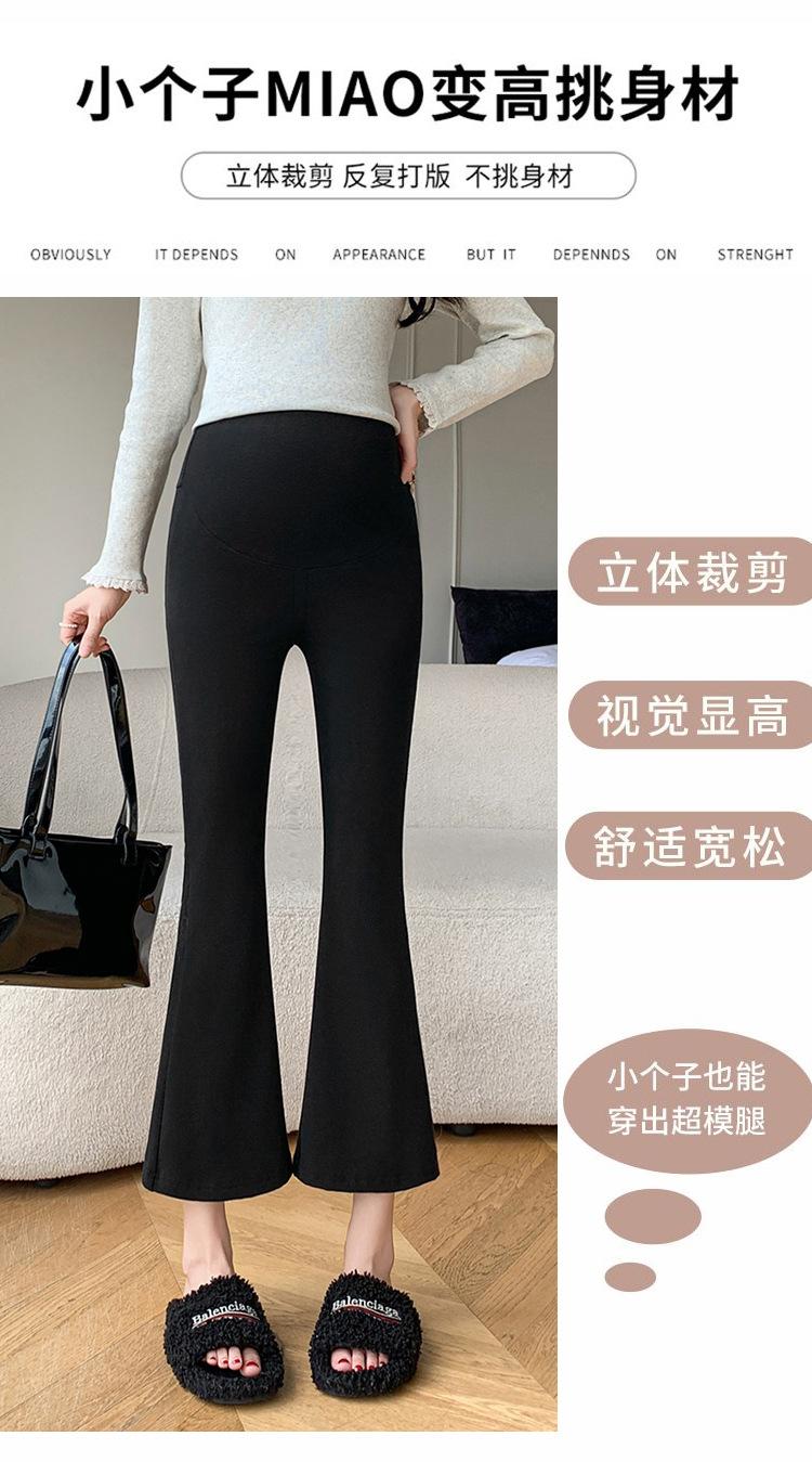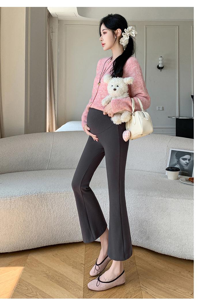 Pantalones de nueve puntos para mujeres embarazadas de otoño e invierno, ropa para mujeres embarazadas petite, cepillados, gruesos, agradables al tacto, corte ajustado, pantalones acampanados