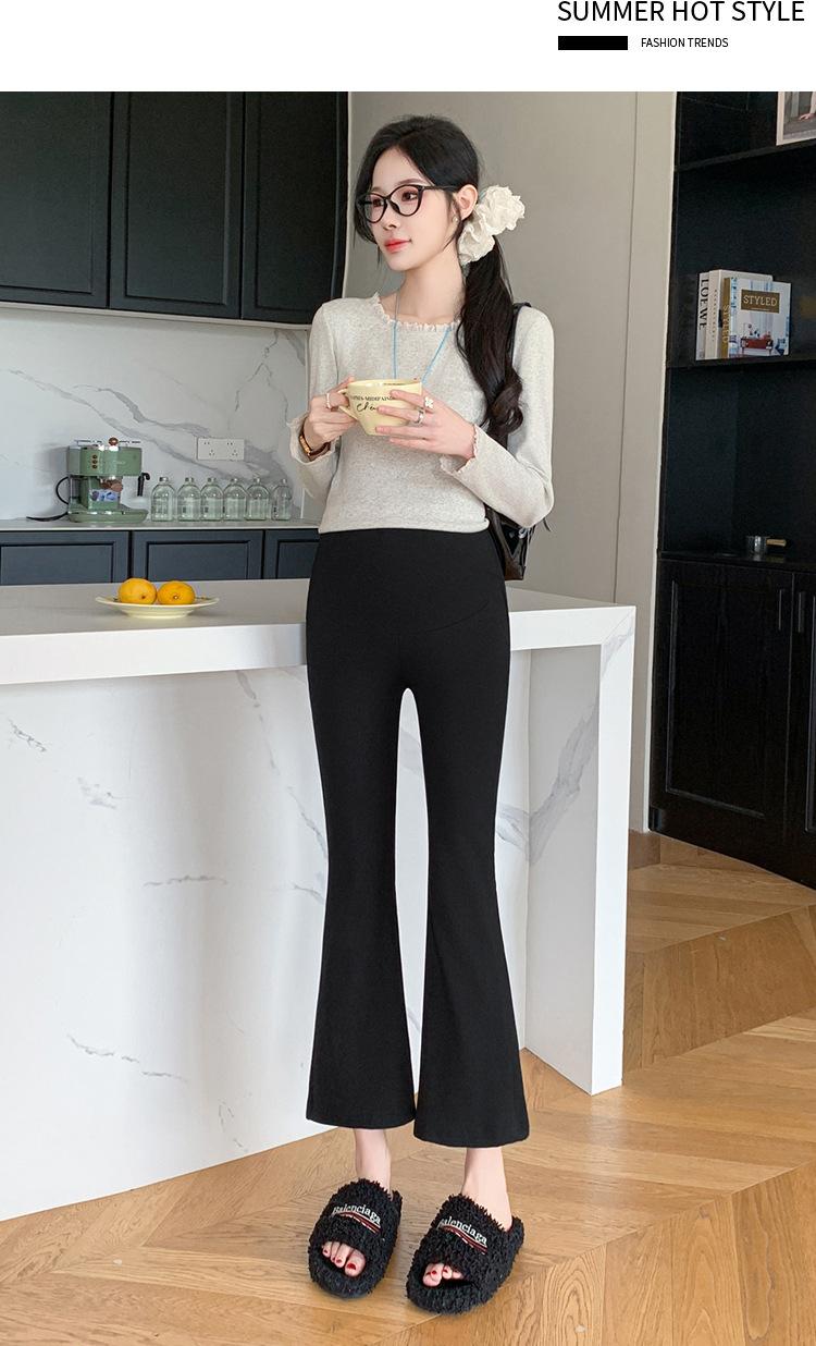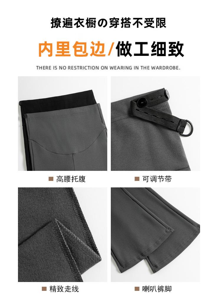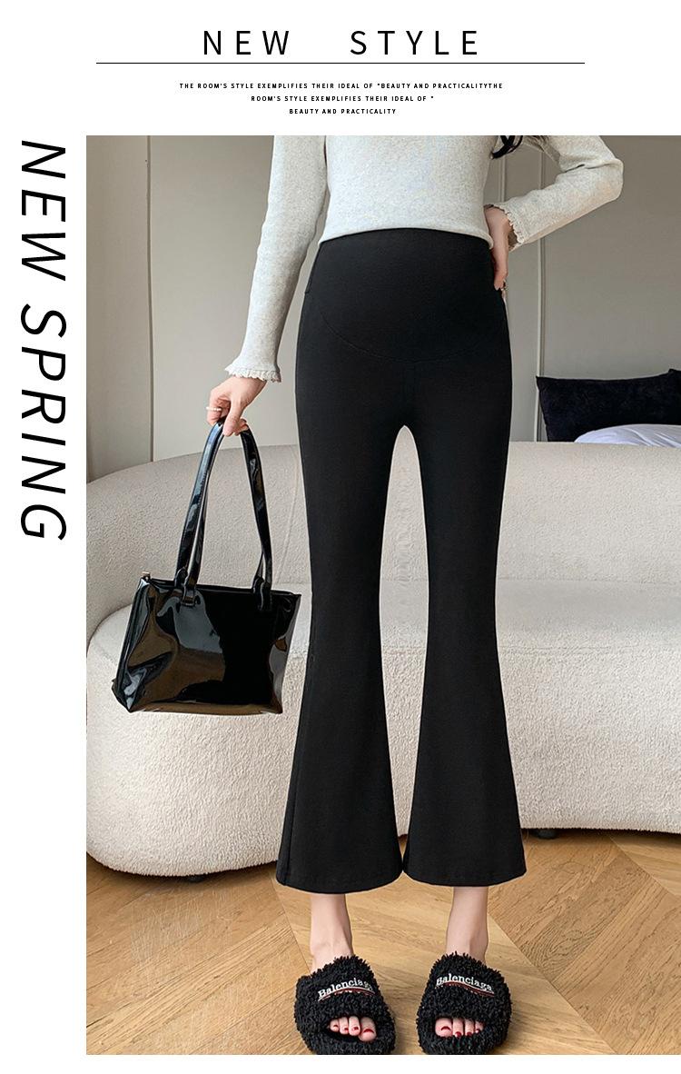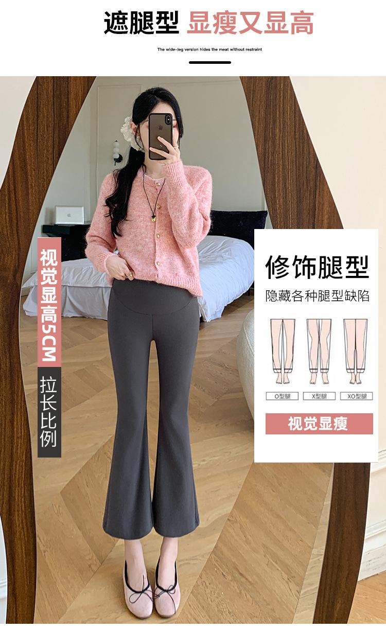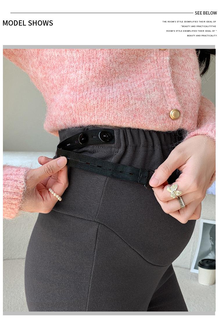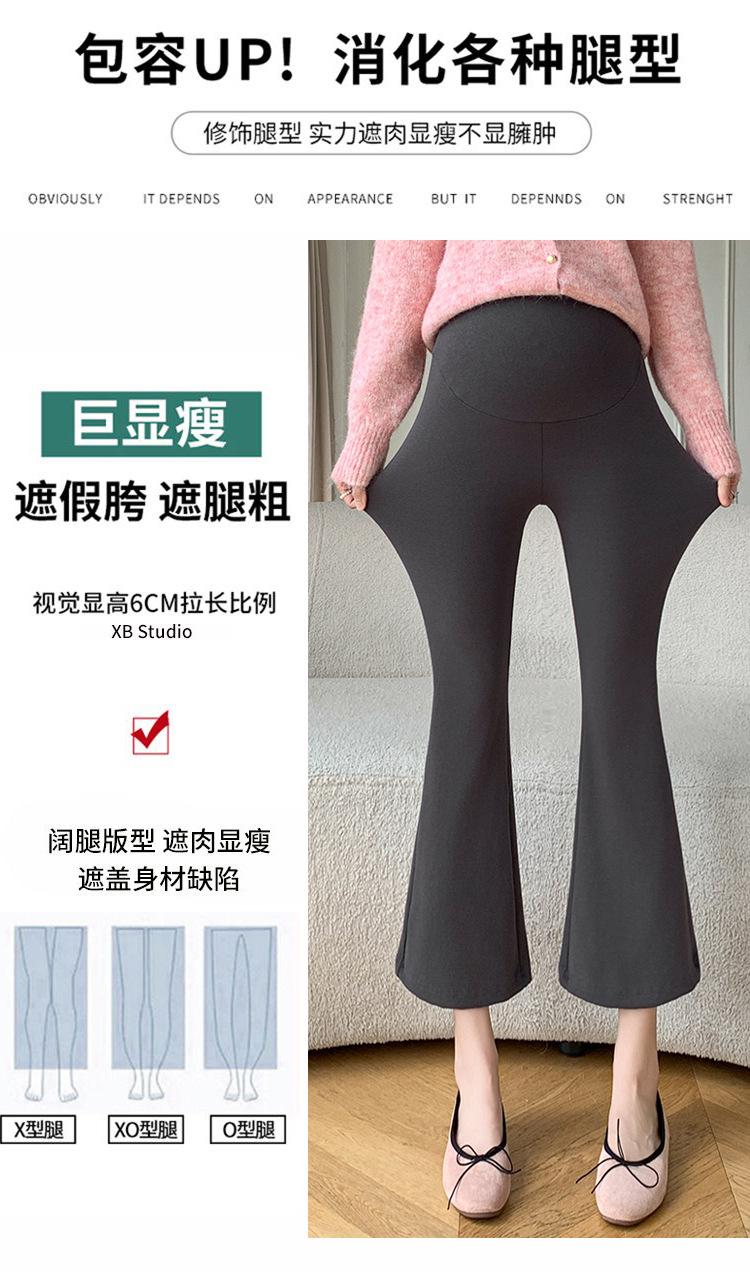 Pantalones de nueve puntos para mujeres embarazadas de otoño e invierno, ropa para mujeres embarazadas petite, cepillados, gruesos, agradables al tacto, corte ajustado, pantalones acampanados