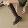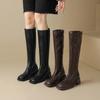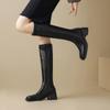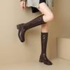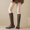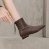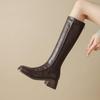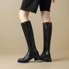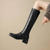 Botas de mujer de talla grande de color sólido con punta cuadrada y suela de goma nueva, cómodas, con cremallera trasera, botas altas, otoño e invierno, tacón medio, botas Martin