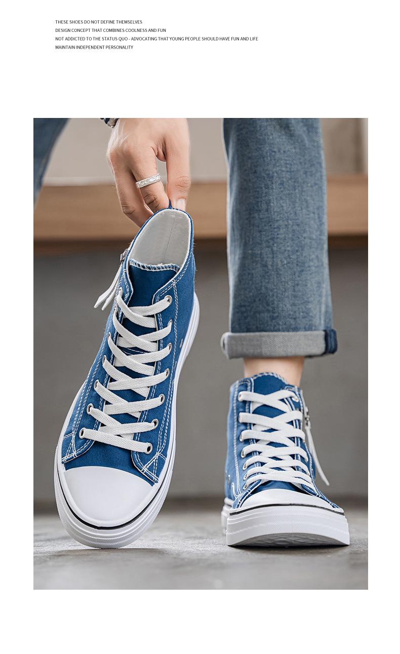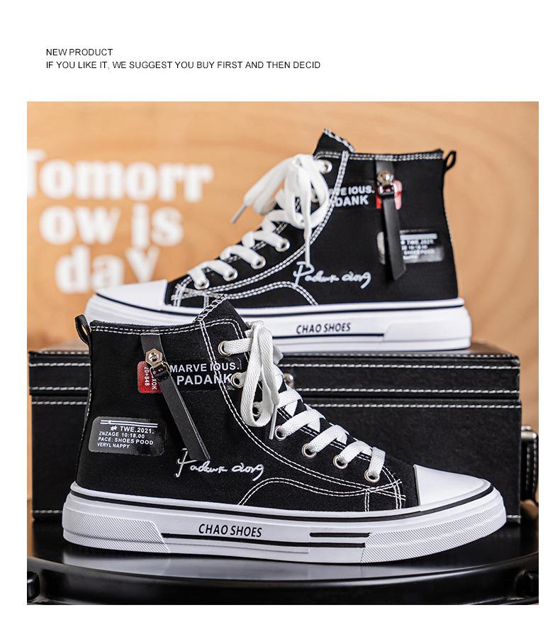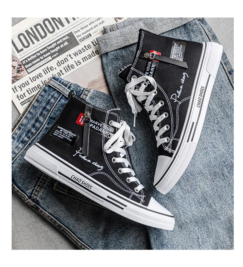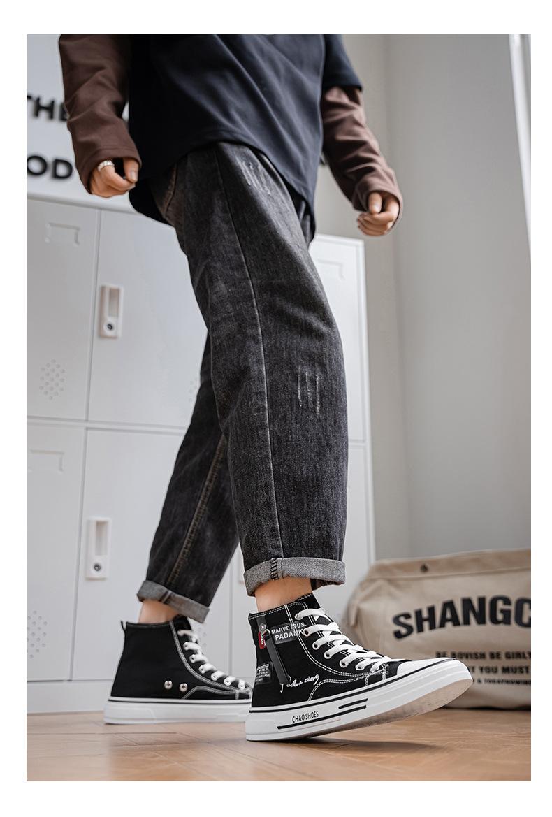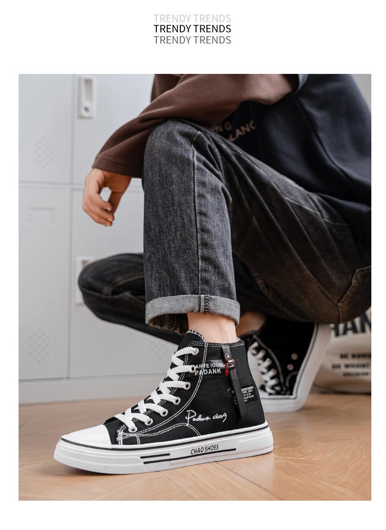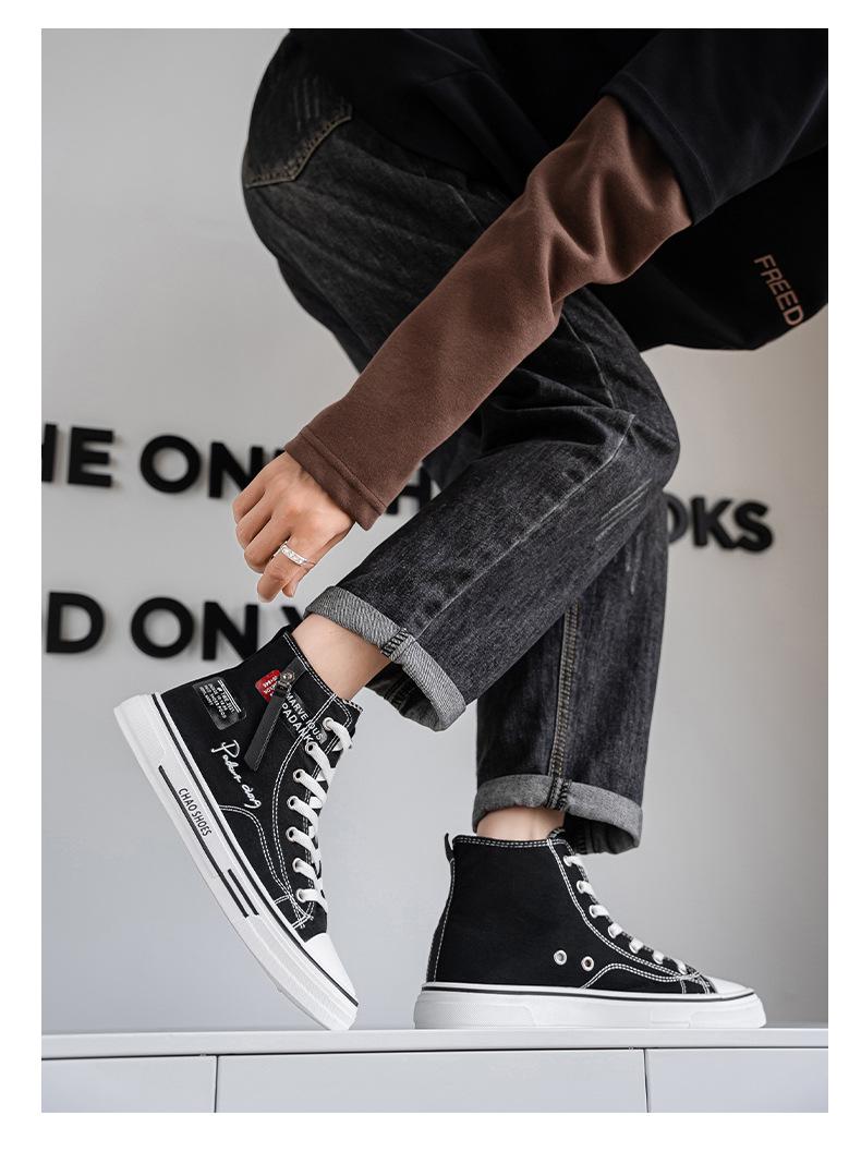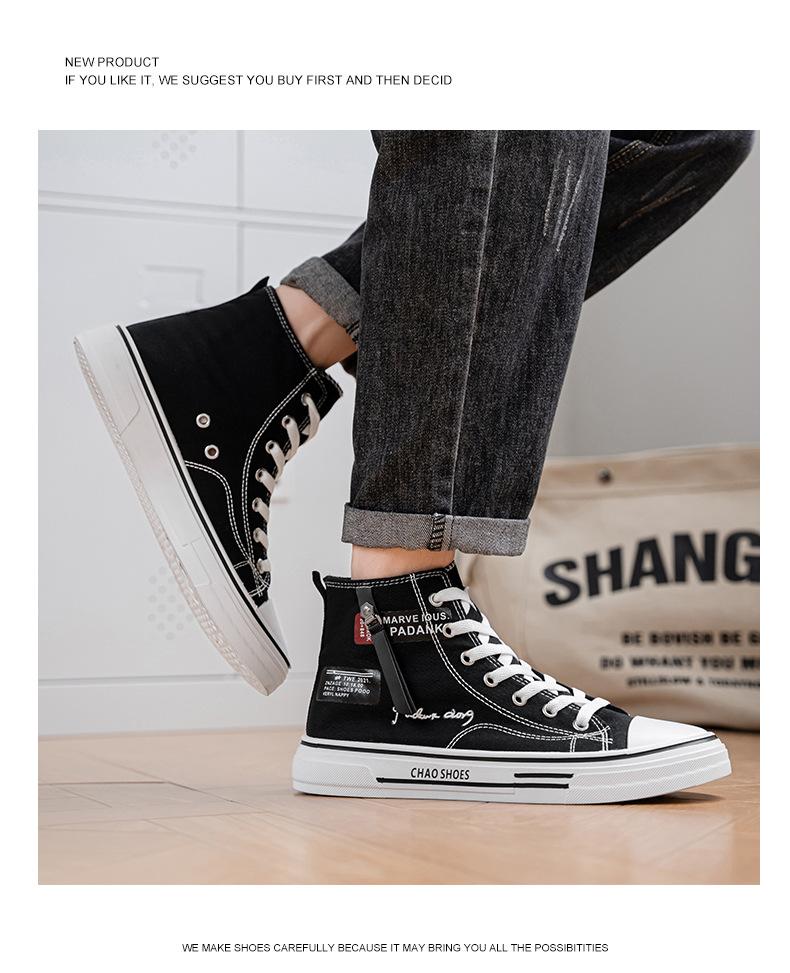Zapatos de Lona para Hombre Estilo Cuatro Estaciones Personalidad para Hombre Hi-Top Negro Moda Zapatos Casuales para Adolescentes