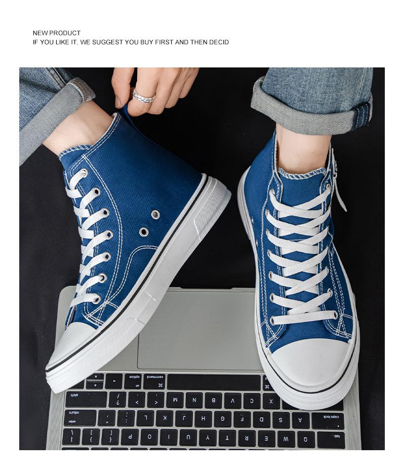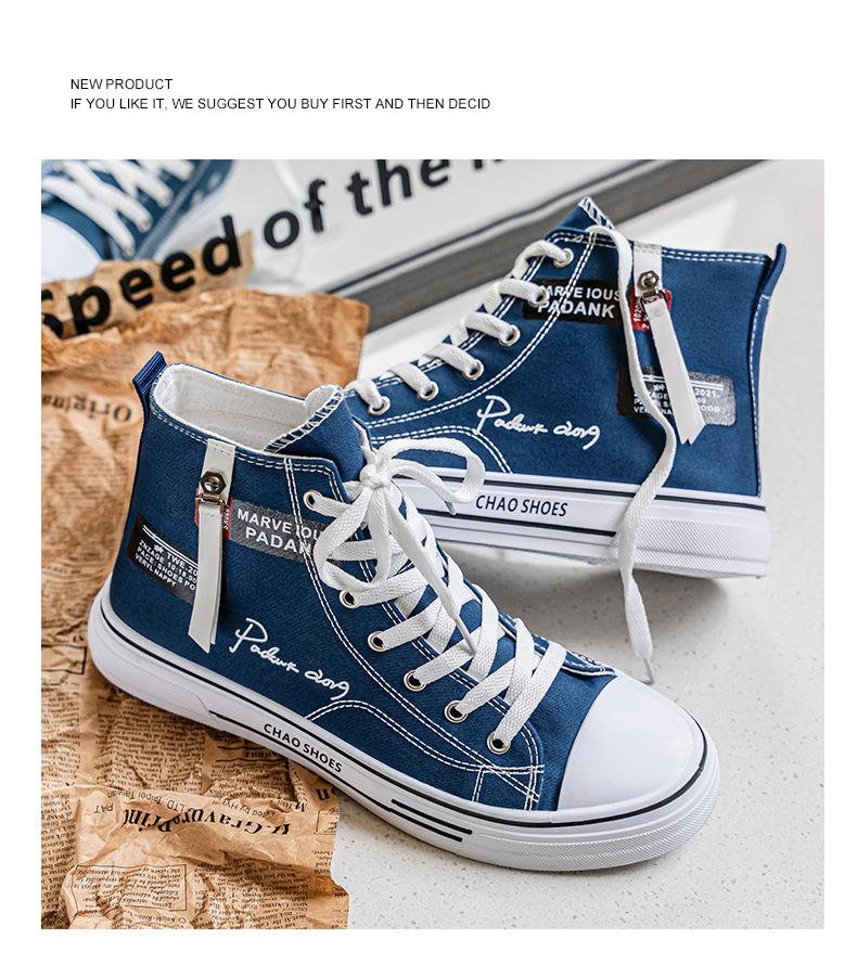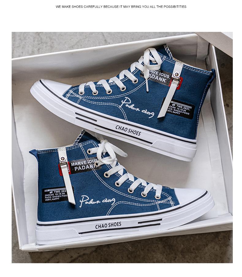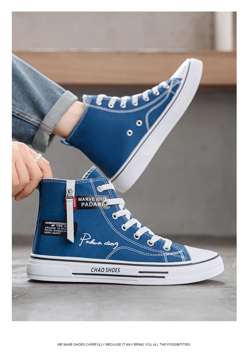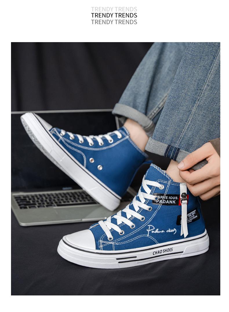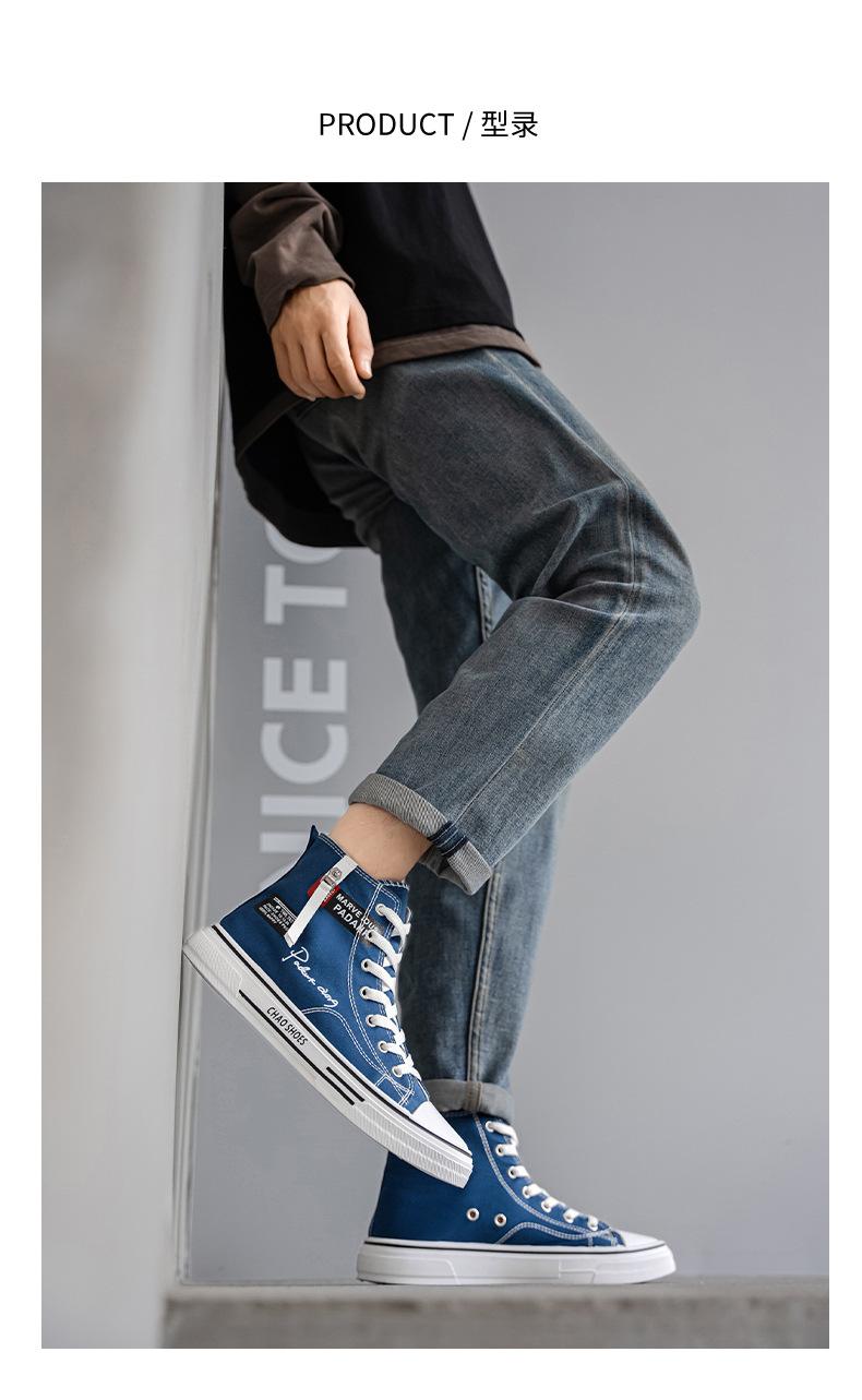 Zapatos de Lona para Hombre Estilo Cuatro Estaciones Personalidad para Hombre Hi-Top Negro Moda Zapatos Casuales para Adolescentes