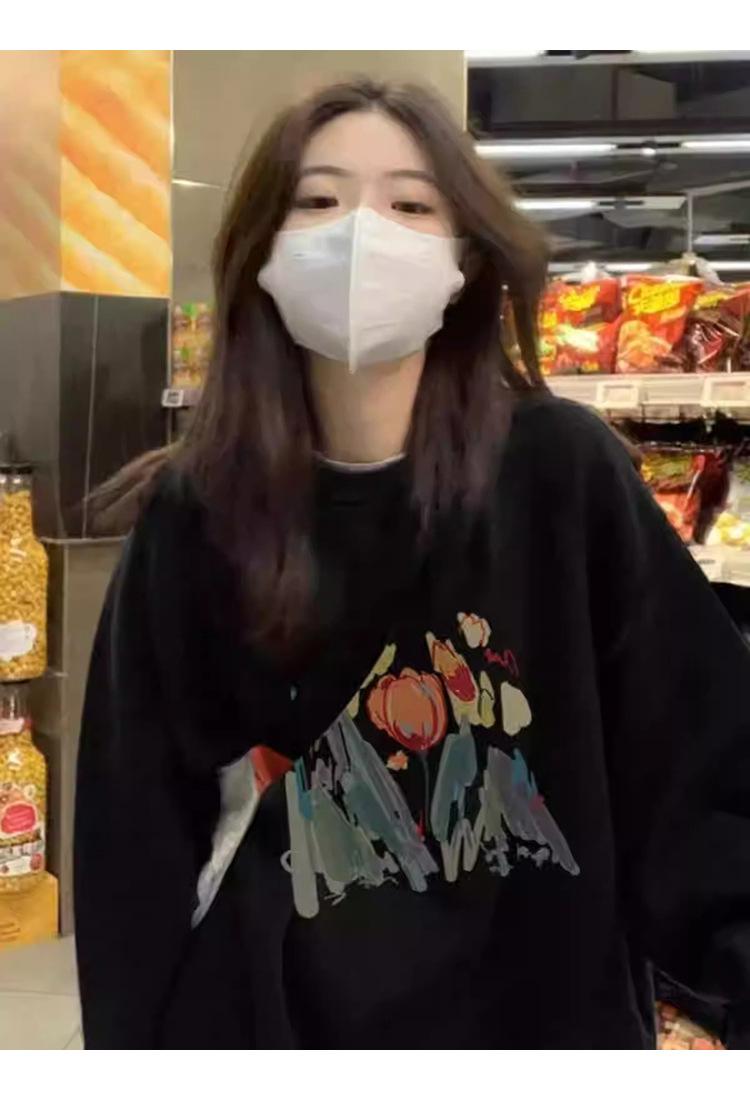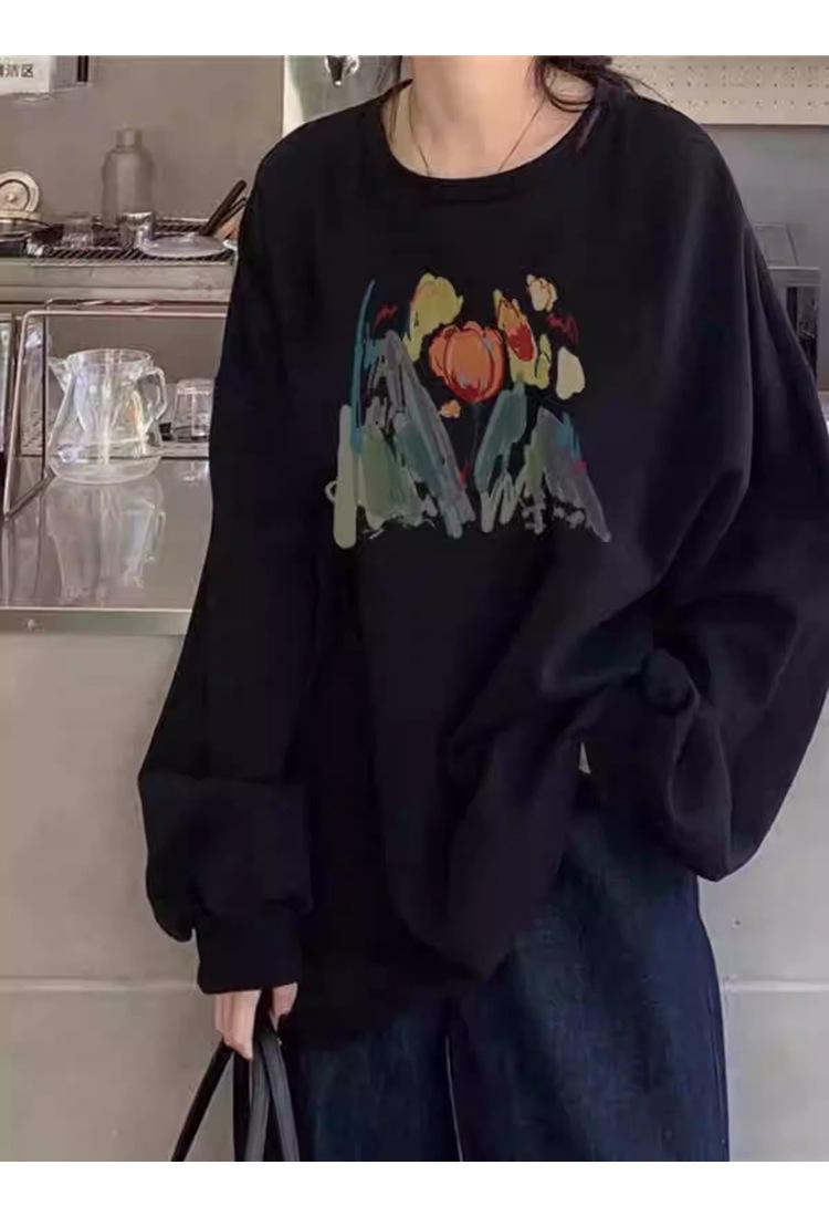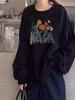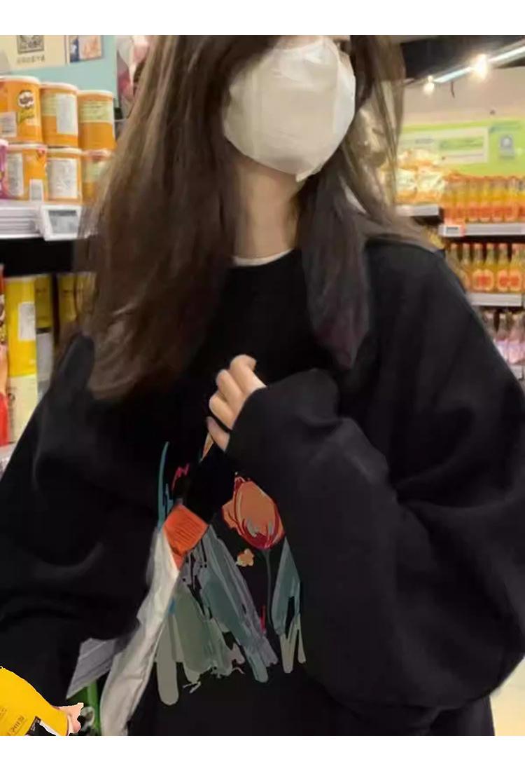 Sudadera de cuello redondo extragrande retro americana para mujer
