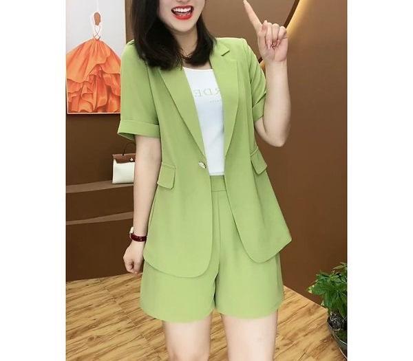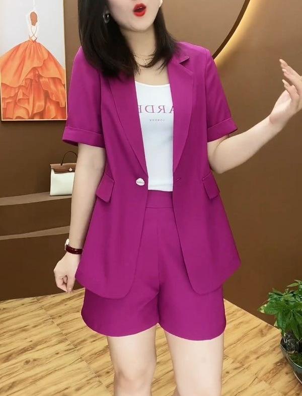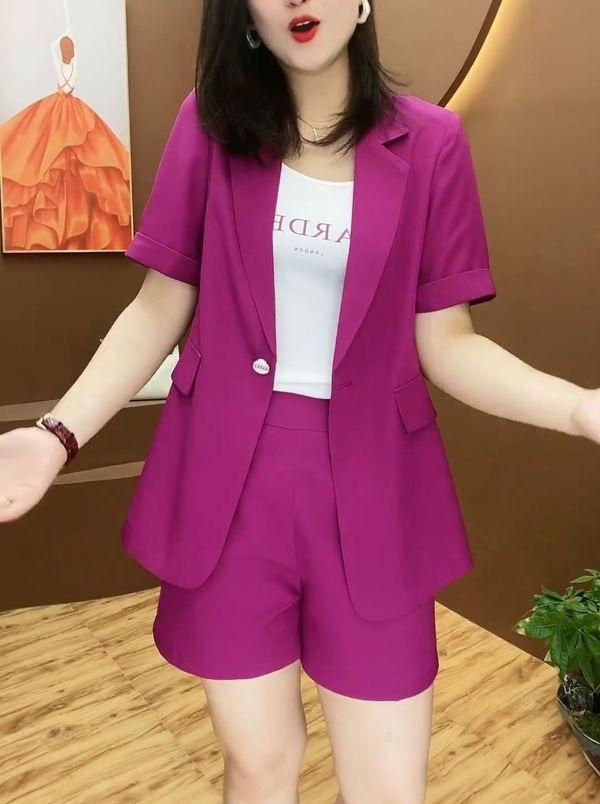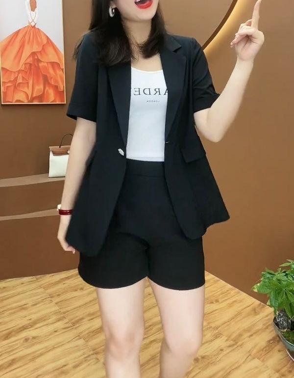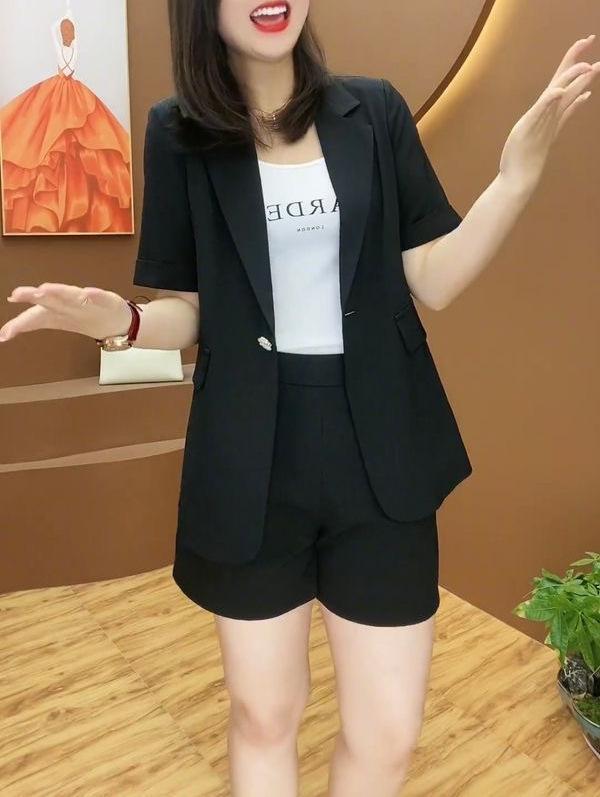 Talla grande Traje de Shorts Casual para mujer gordita traje 2024 Verano Nuevo Reductor de Edad Estilo Occidental Moderno Traje de Dos Piezas