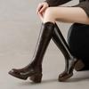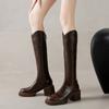 Botas de moda de tacón medio estilo coreano para mujer de talla grande, tacón cuadrado, nuevo, suela gruesa antideslizante, cremallera, botas para mujer, otoño e invierno, botas altas para mujer