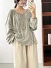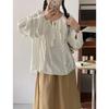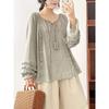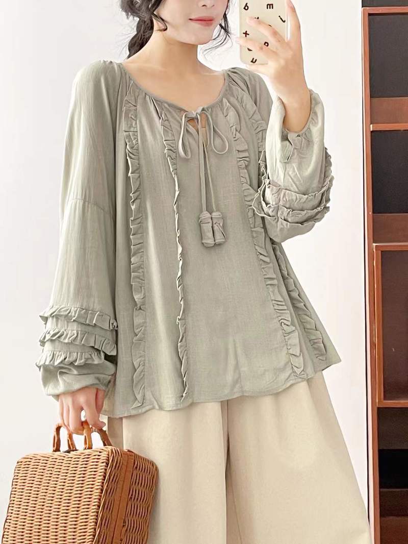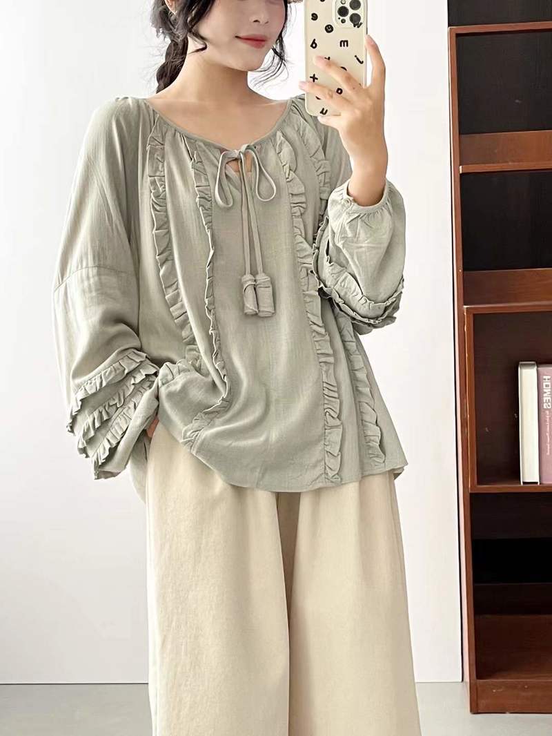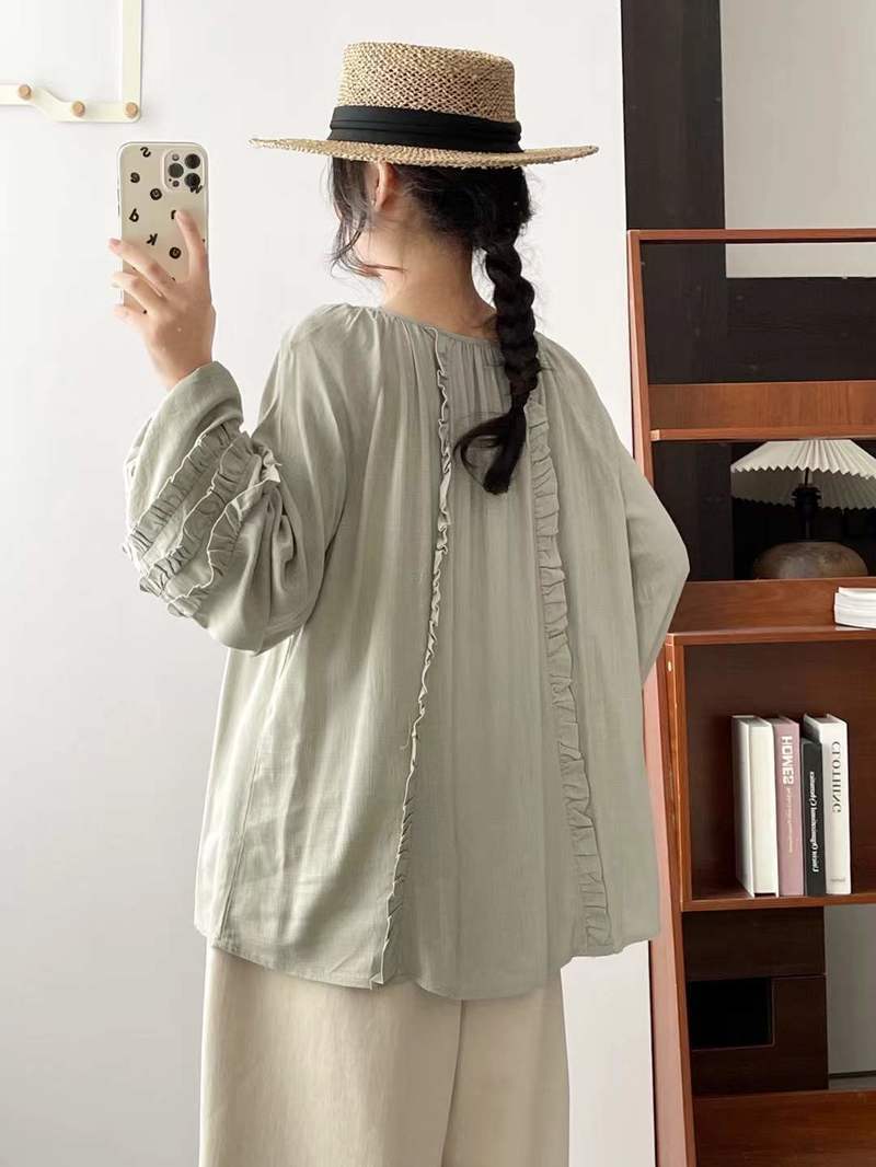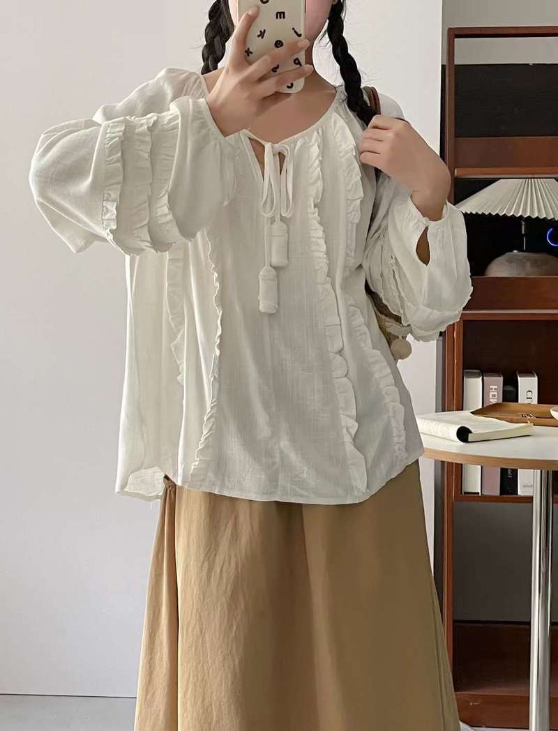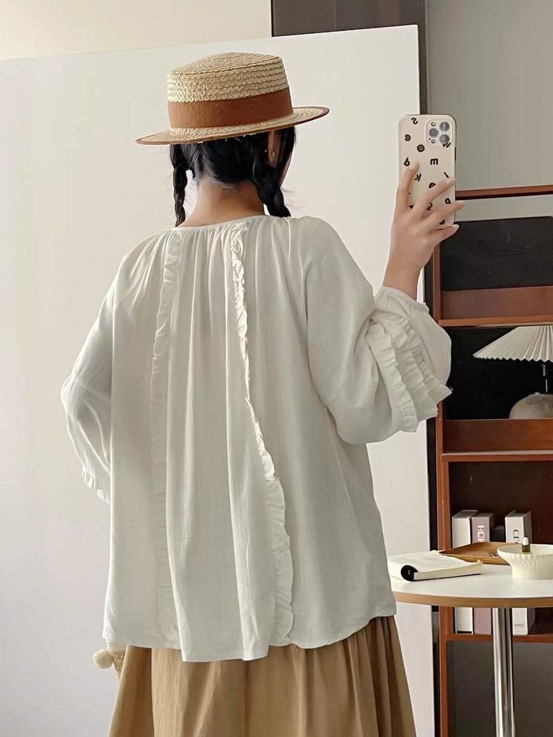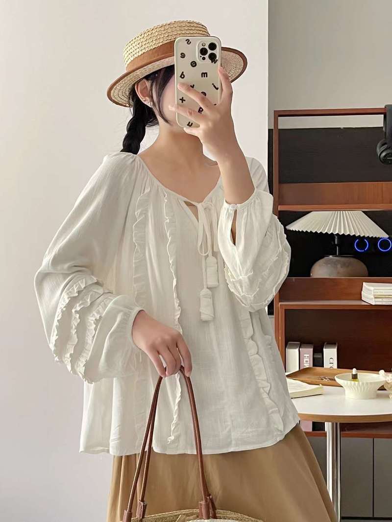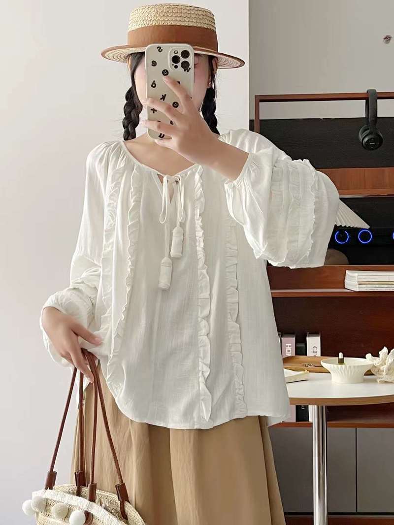 Camisa holgada de gran tamaño con volantes y encaje para mujer, primavera 2025, venta al por mayor