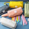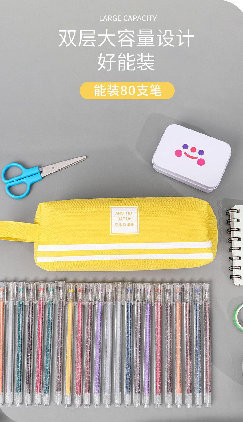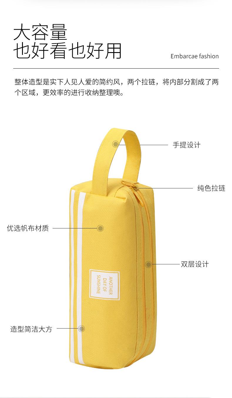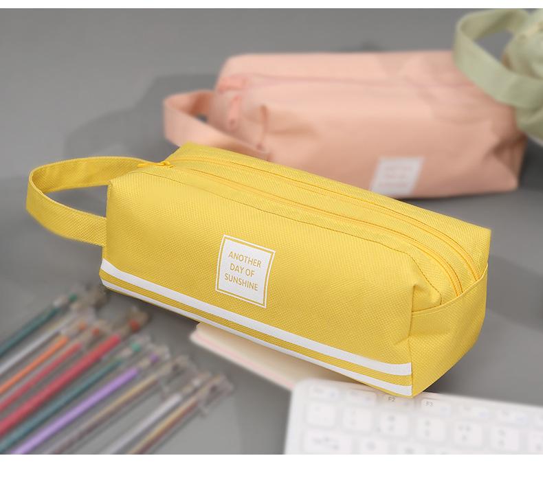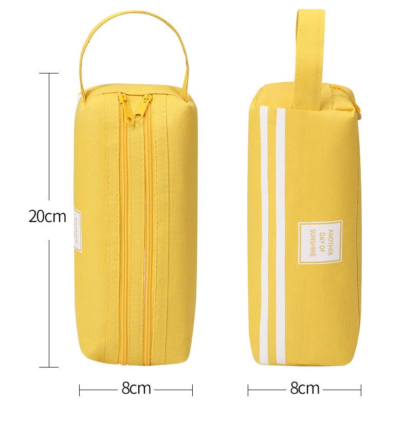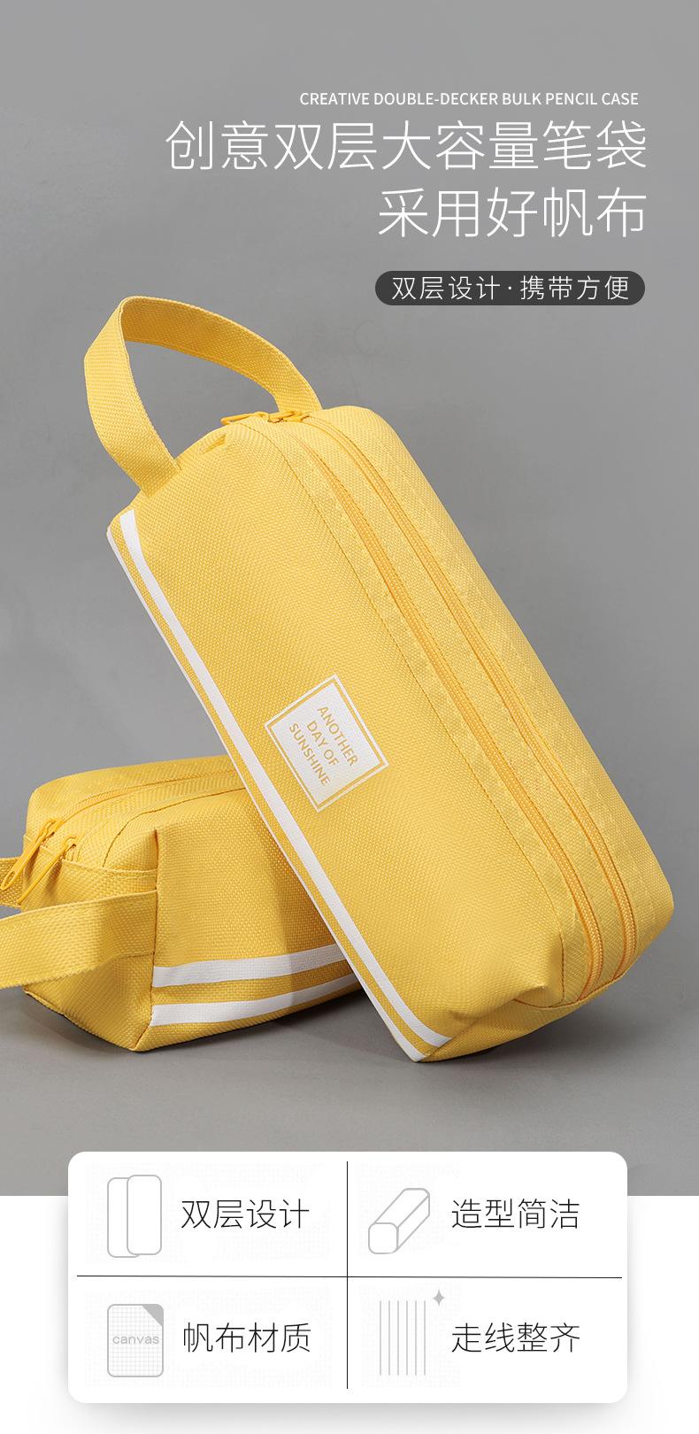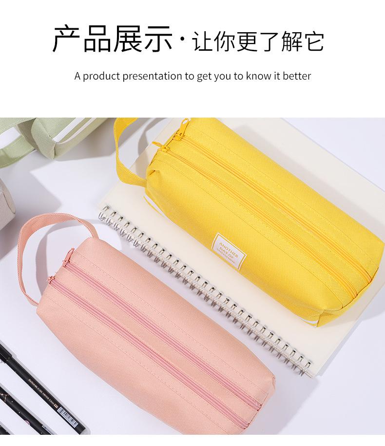 Bolsa de Lona de Color Puro de Doble Capa Casual y Creativa Multifuncional de Gran Capacidad para Estudiantes Almacenamiento Portátil Bolsa de Papelería Estuche para Lápices