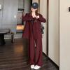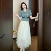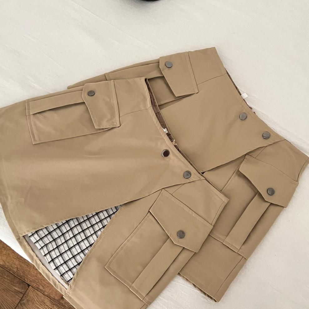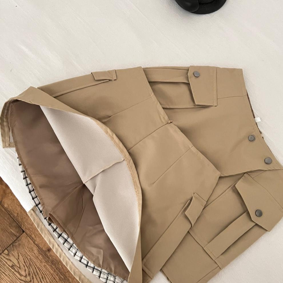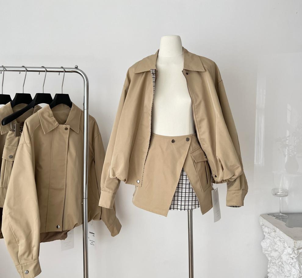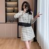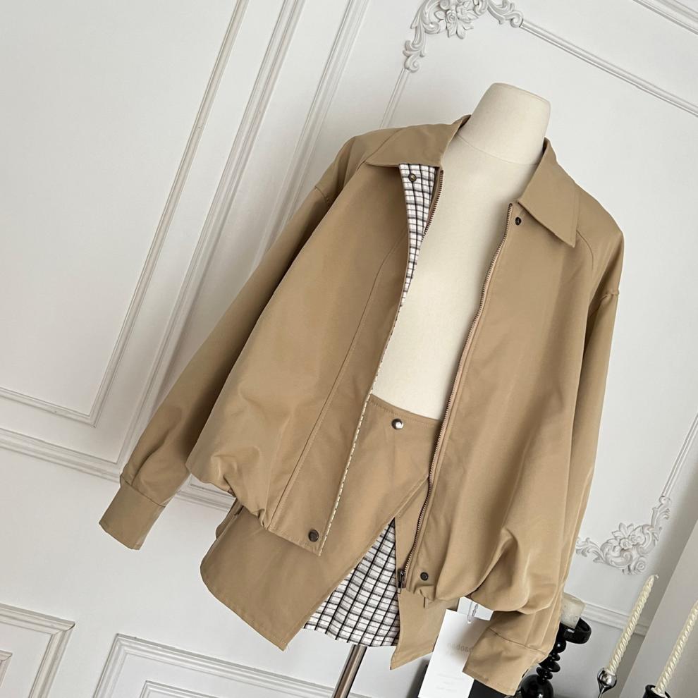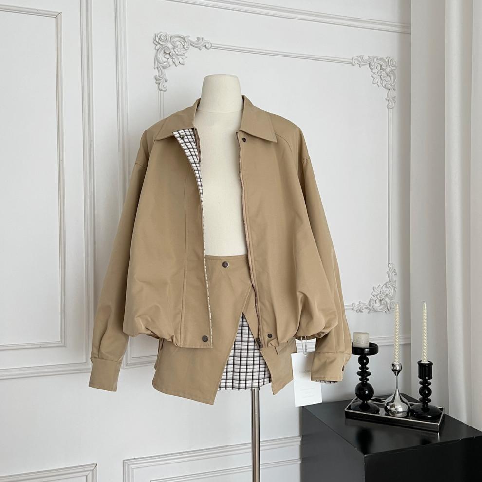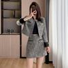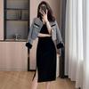 Foto Real En Stock Chaqueta Abrigo Retro Cuello Vuelto Set Otoñal para Mujer Falda Media con Letras Set de Dos Piezas