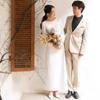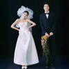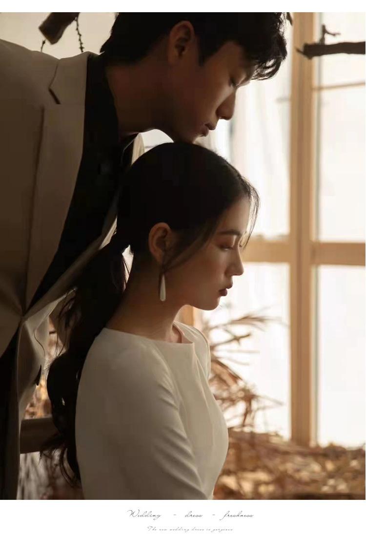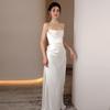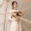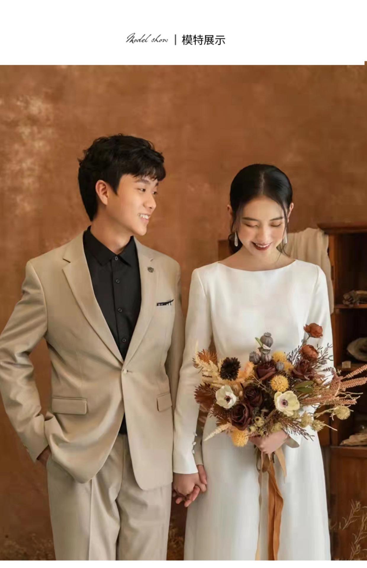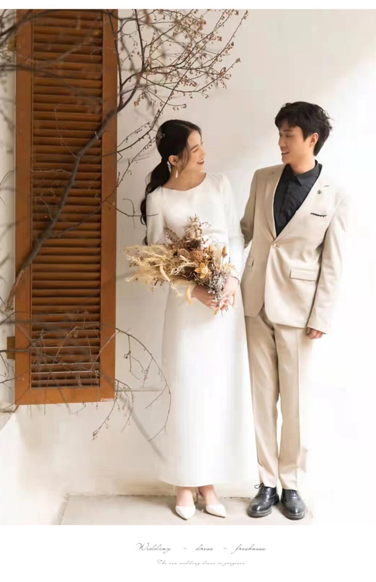 Vestido de Novia Ligero Estilo Francés Estilo Mori Manga Larga Elegante Adelgazante Blanco Satén Bienvenida Vestido Largo de Noche