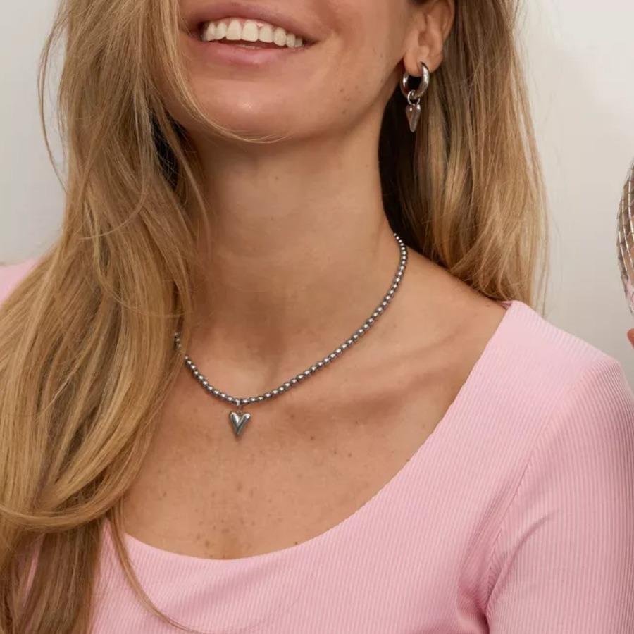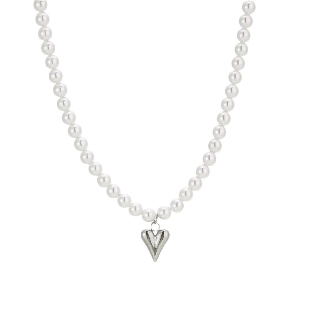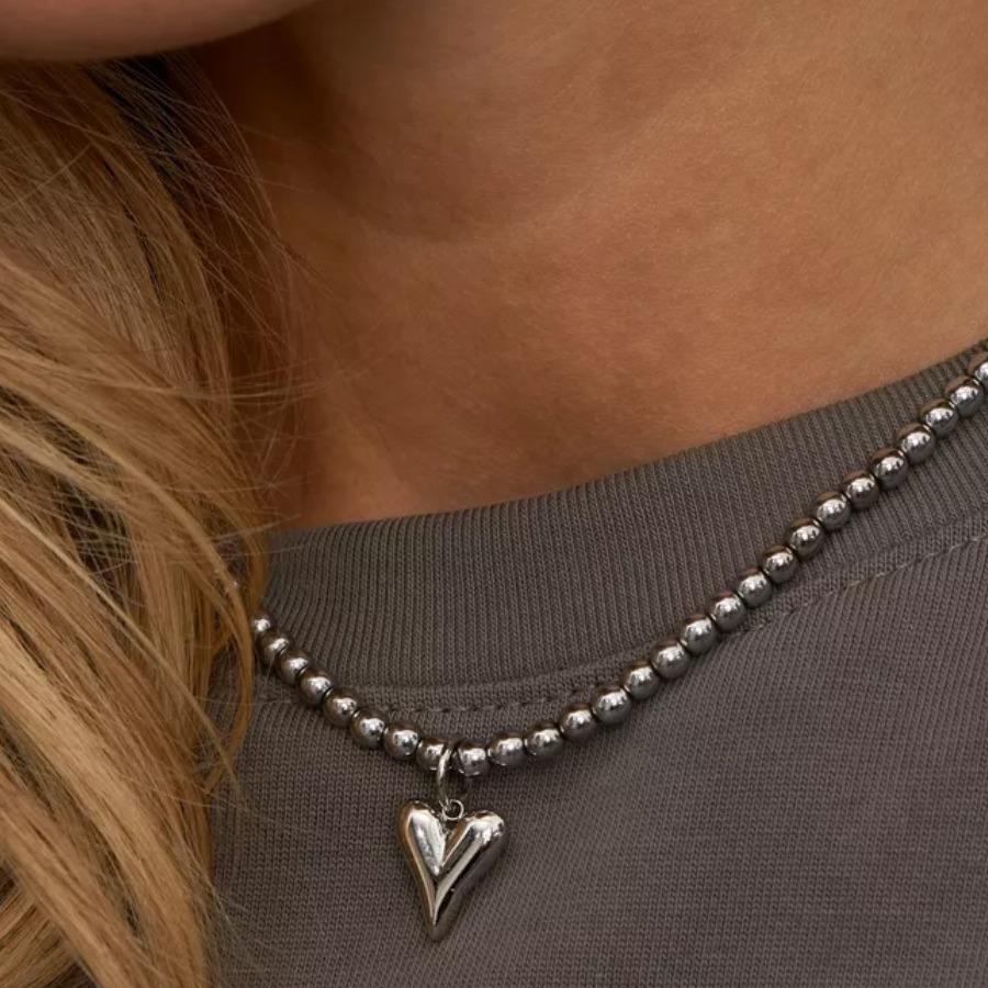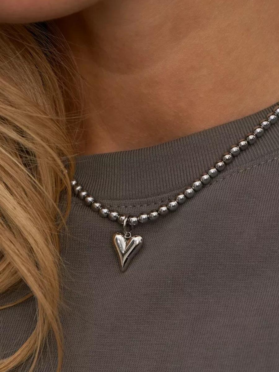 Moda Transfronteriza Europea y Americana Collar Sencillo en Forma de Corazón con Cuentas de Acero para Mujer Versátil Acero de Titanio Inoxidable Cadena para Clavícula Accesorios Venta al por Mayor