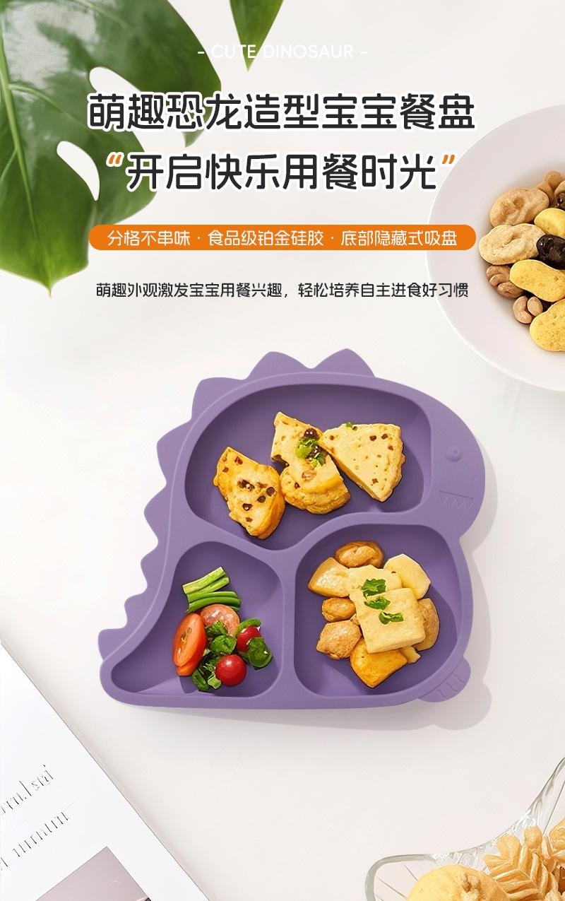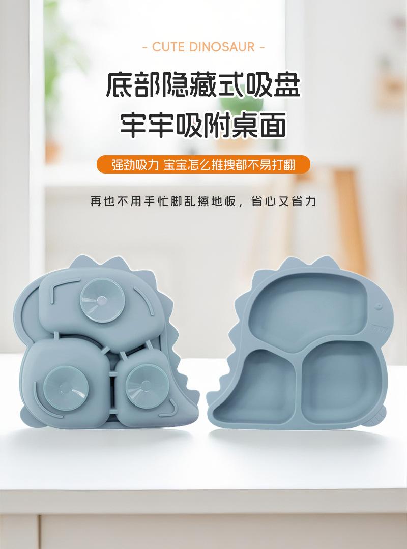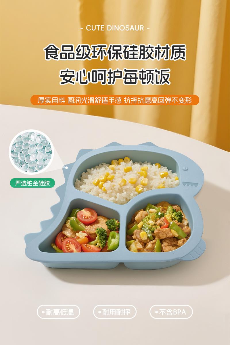 Plato de Cena de Dinosaurio para Niños de Amazon Compartimento Ventosa Silicona de Grado Alimenticio Suplemento Alimenticio Plato de Cena Tazón con Ventosa para Bebé Vajilla