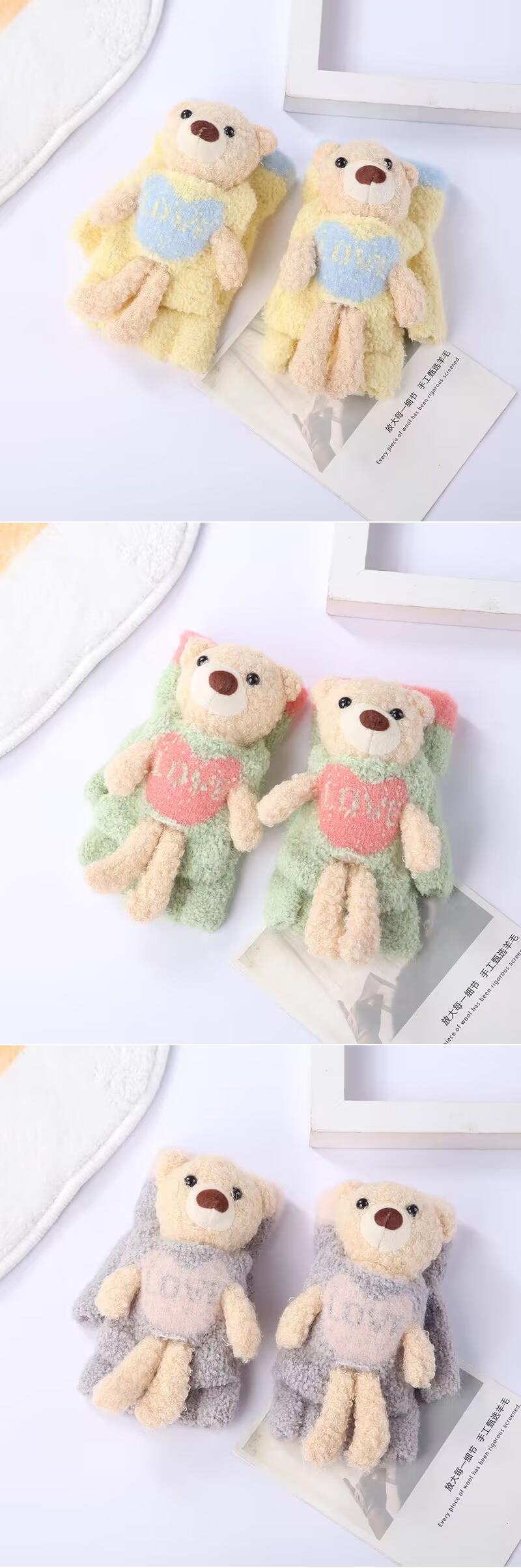 2023 Otoño/Invierno Nuevos Guantes con Solapa Guantes de Punto para Estudiante con Lindo Oso de Peluche Tridimensional para Mujer Venta al por Mayor