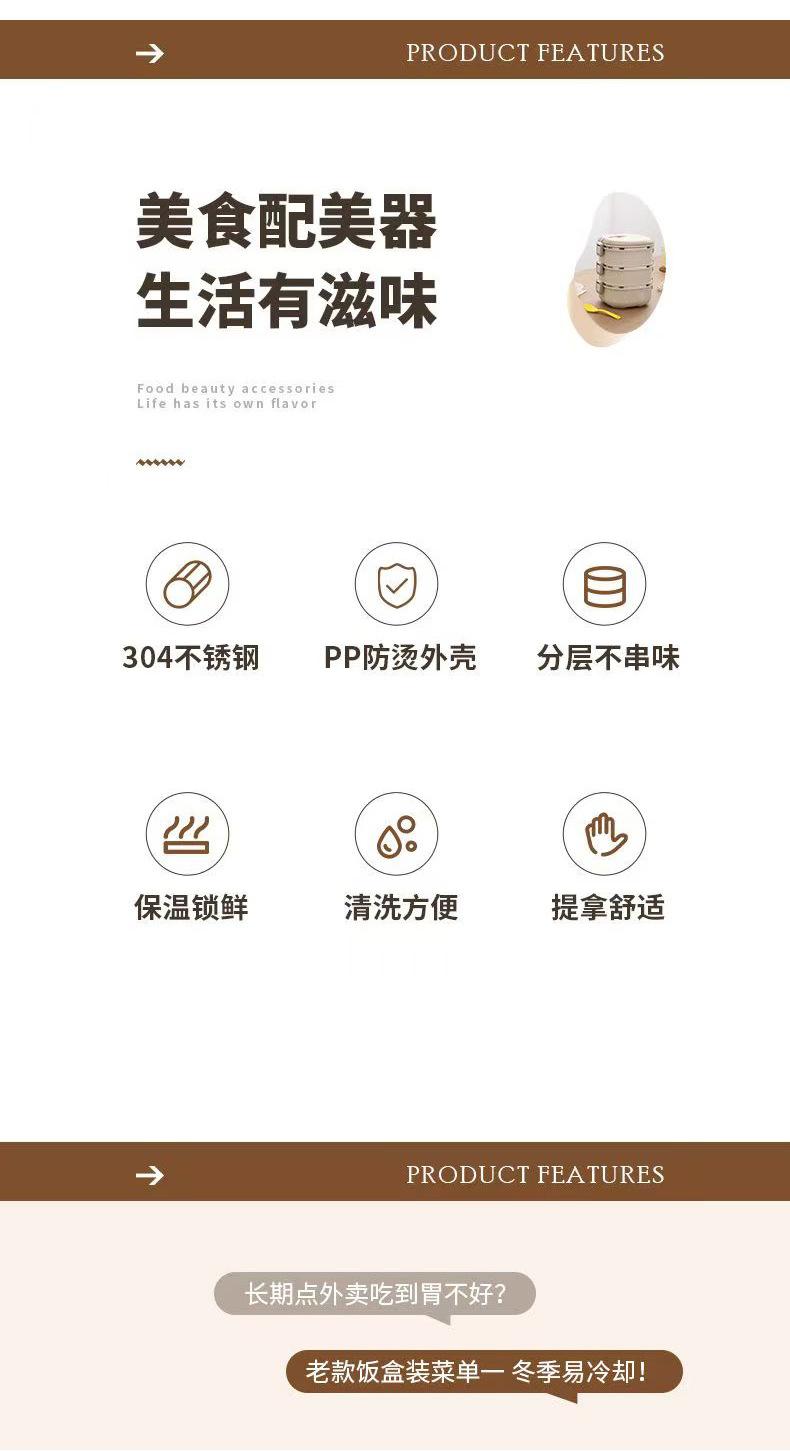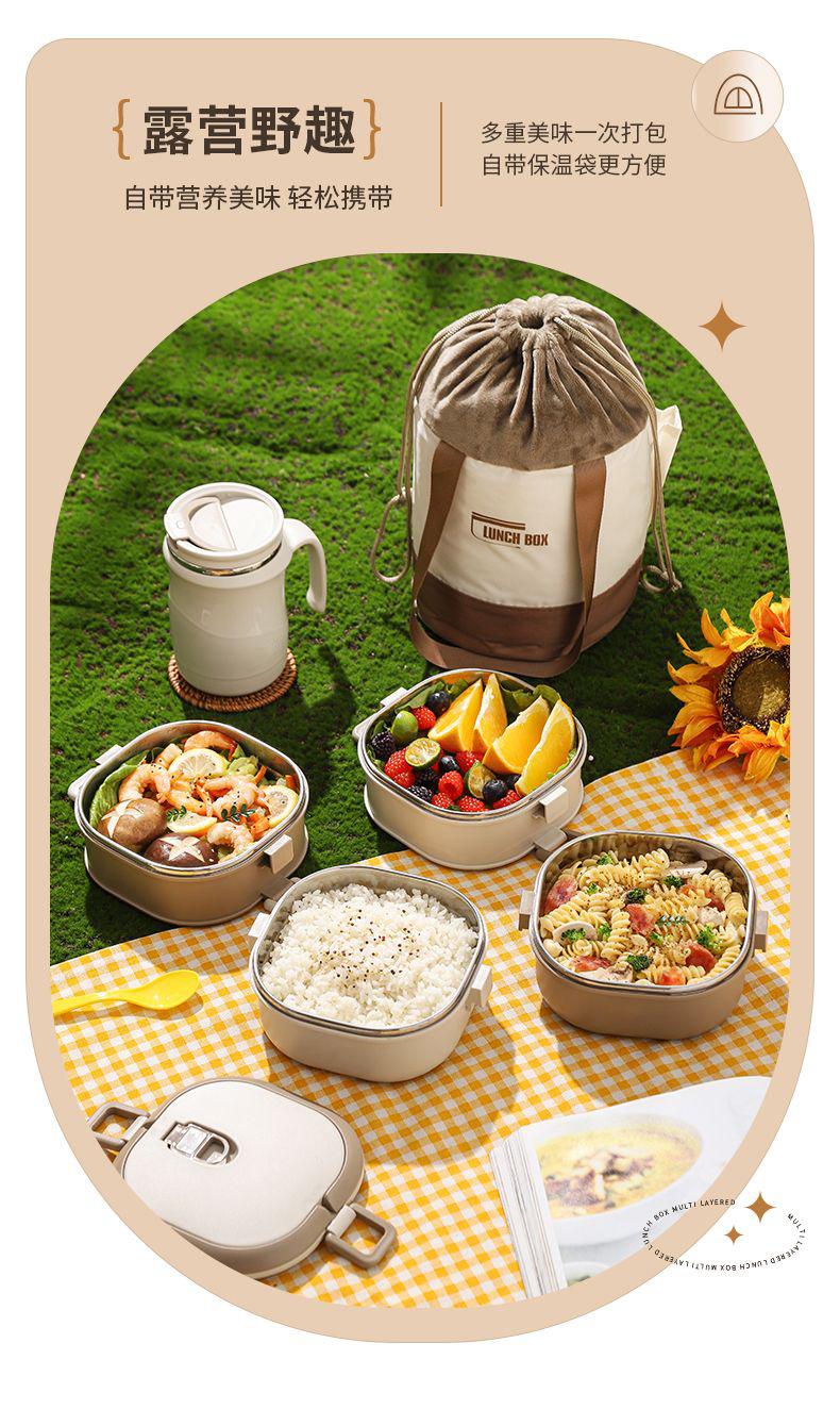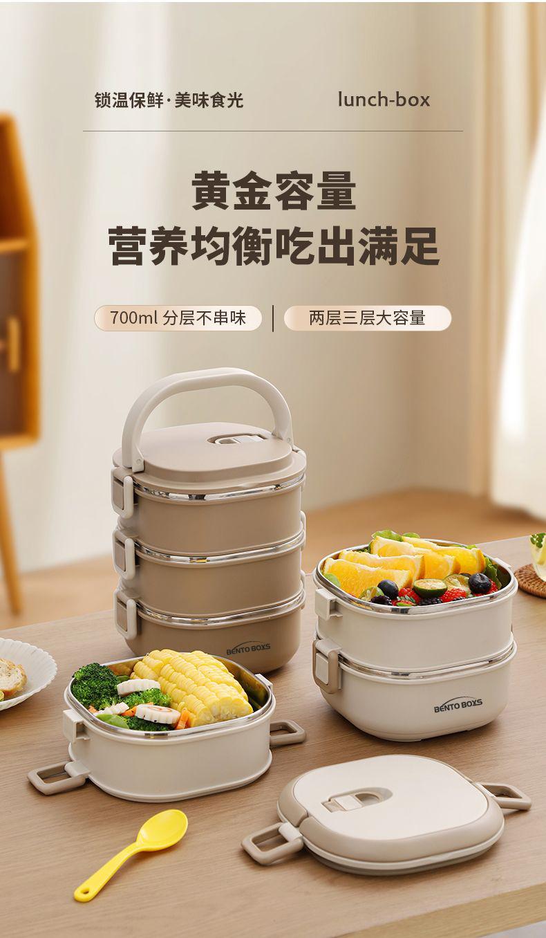 Fiambrera multicapa de acero inoxidable 304, caja aislante para trabajadores de oficina, fiambrera para estudiantes, calentamiento por microondas, gran capacidad