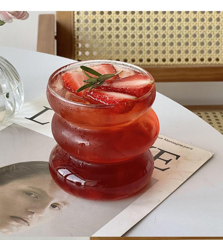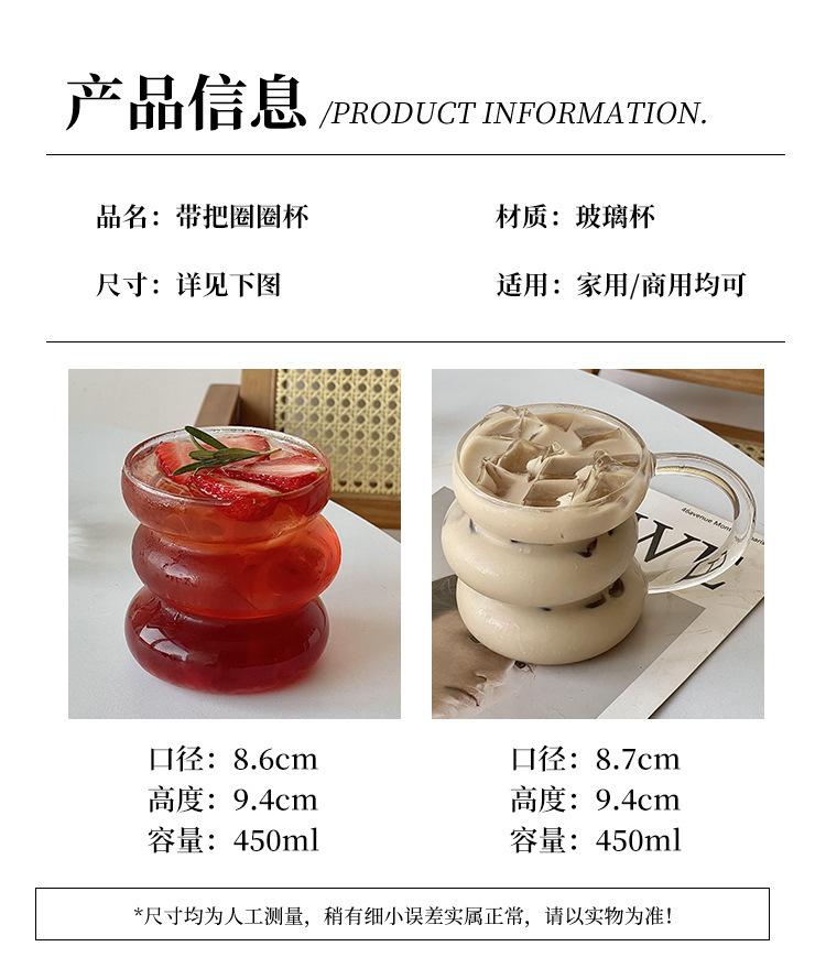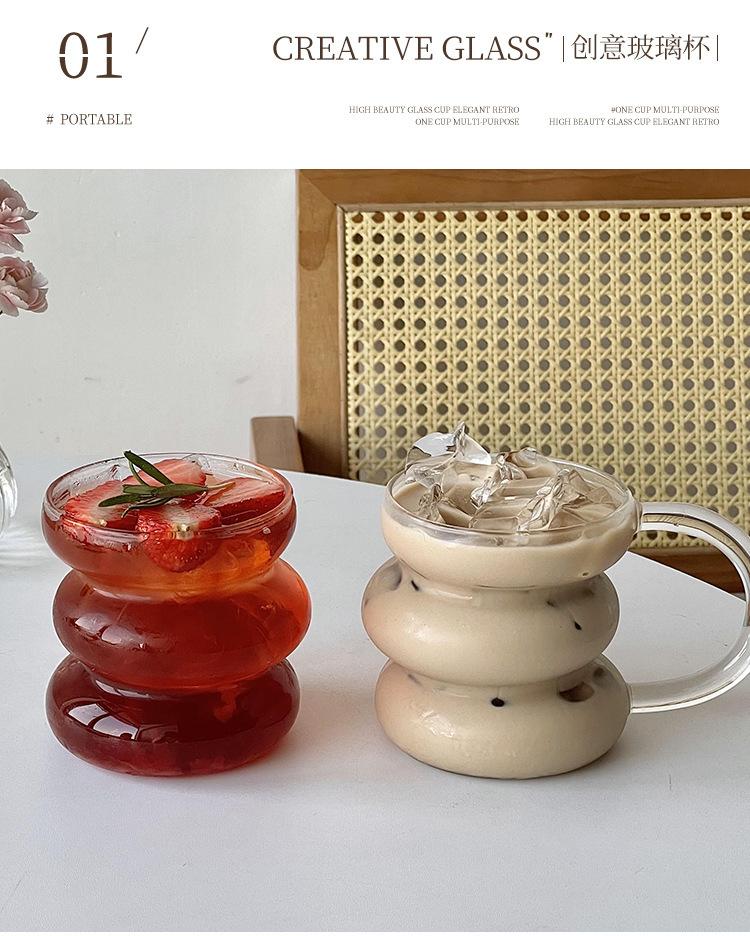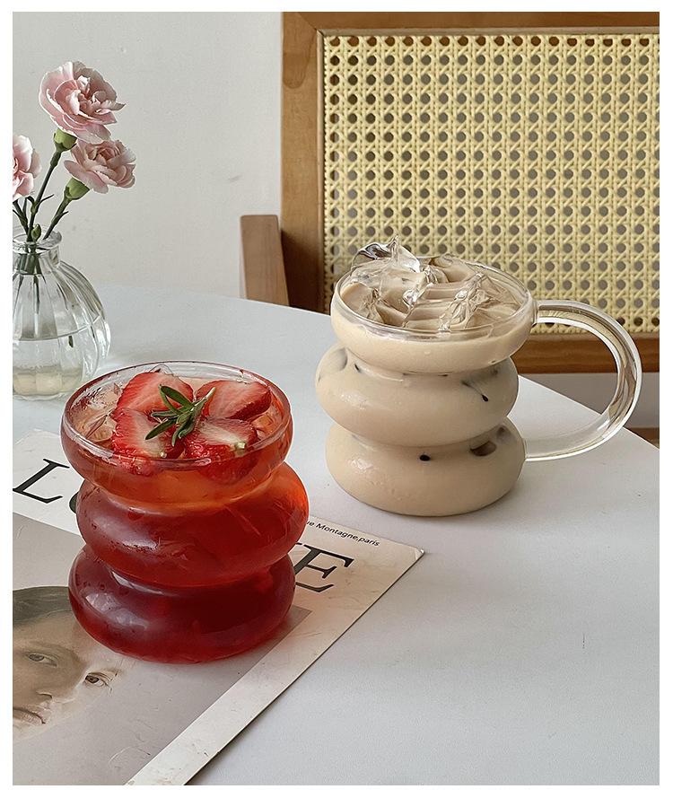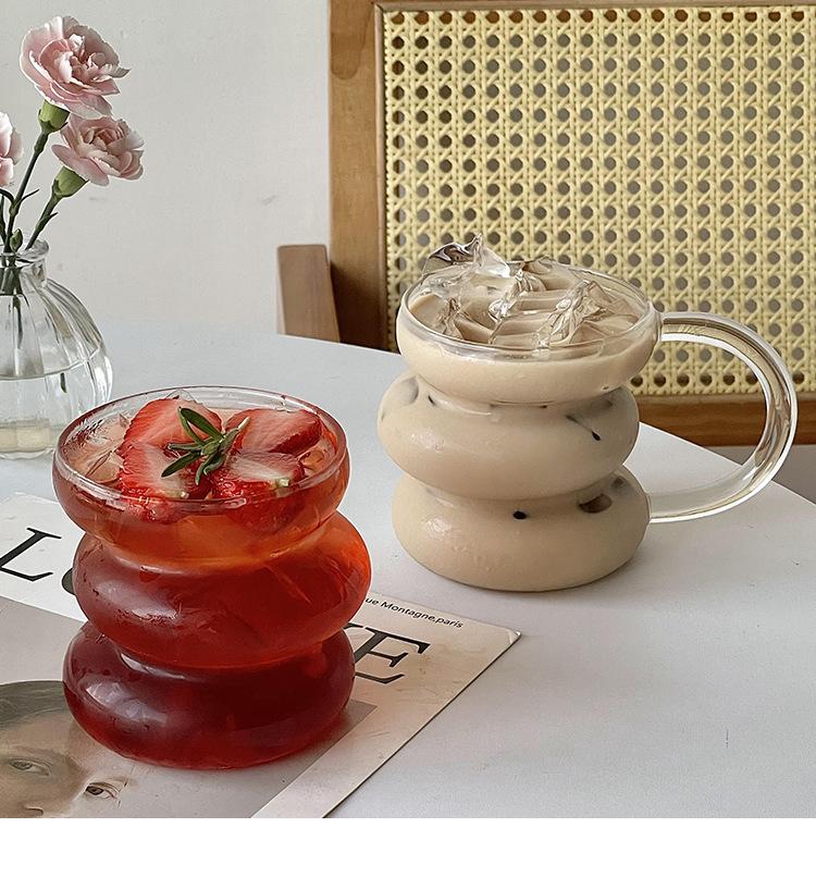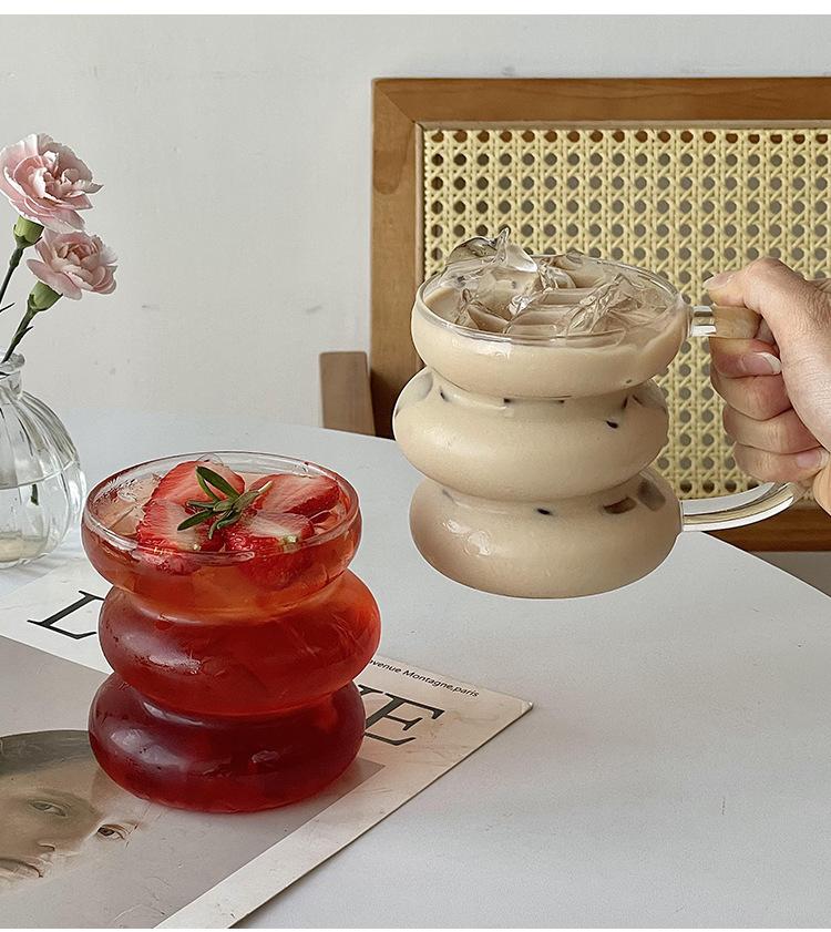 Taza de Oruga de Vidrio de Alto Borosilicato con Asa, Taza Irregular, Taza para Bebidas Frías de Fruta de Verano, Vaso de Vidrio Transparente Resistente al Calor