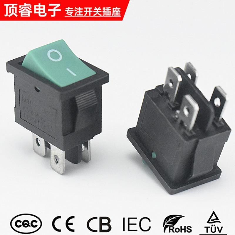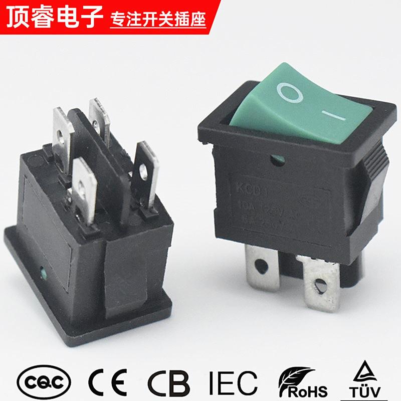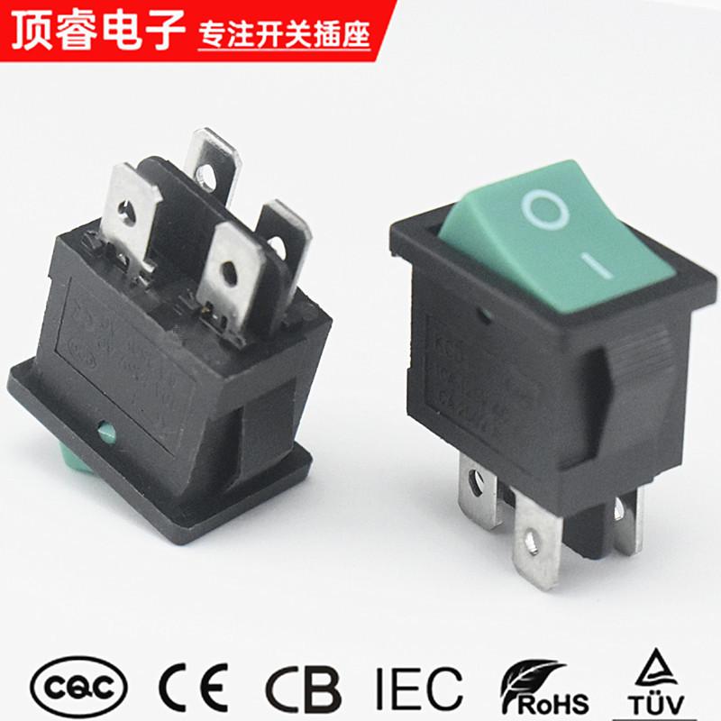 Verde 4 Pines 2 Velocidades Kcd1-104 Interruptor de Barco 15*21mm Interruptor de Alimentación Verde Interruptor Basculante