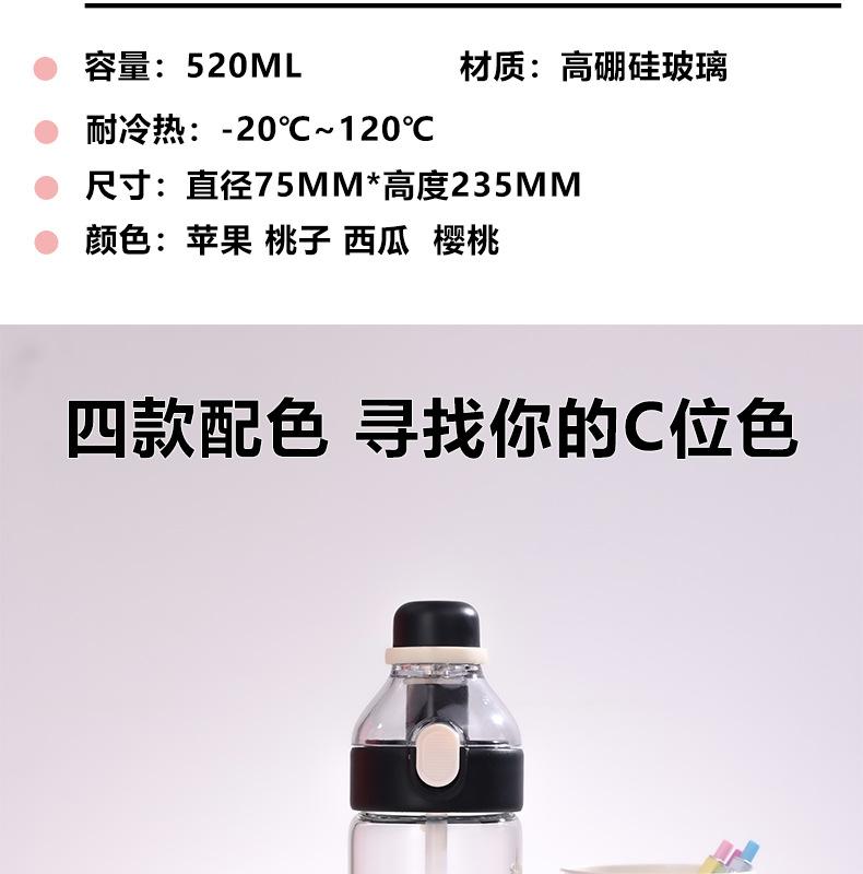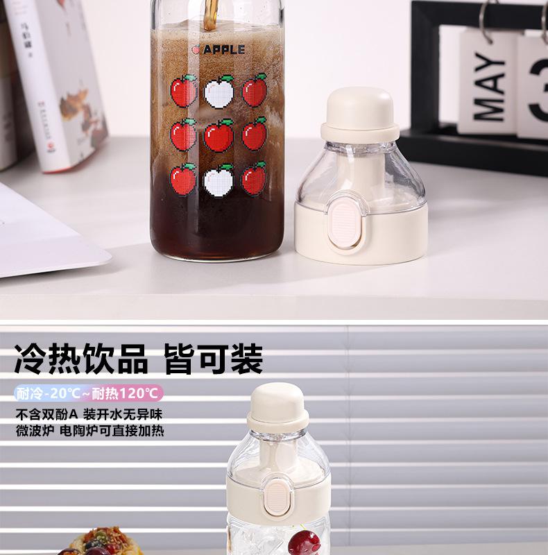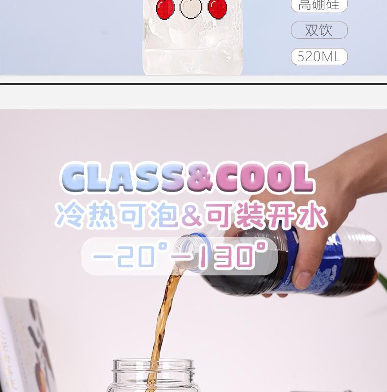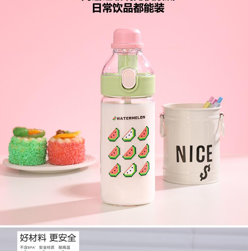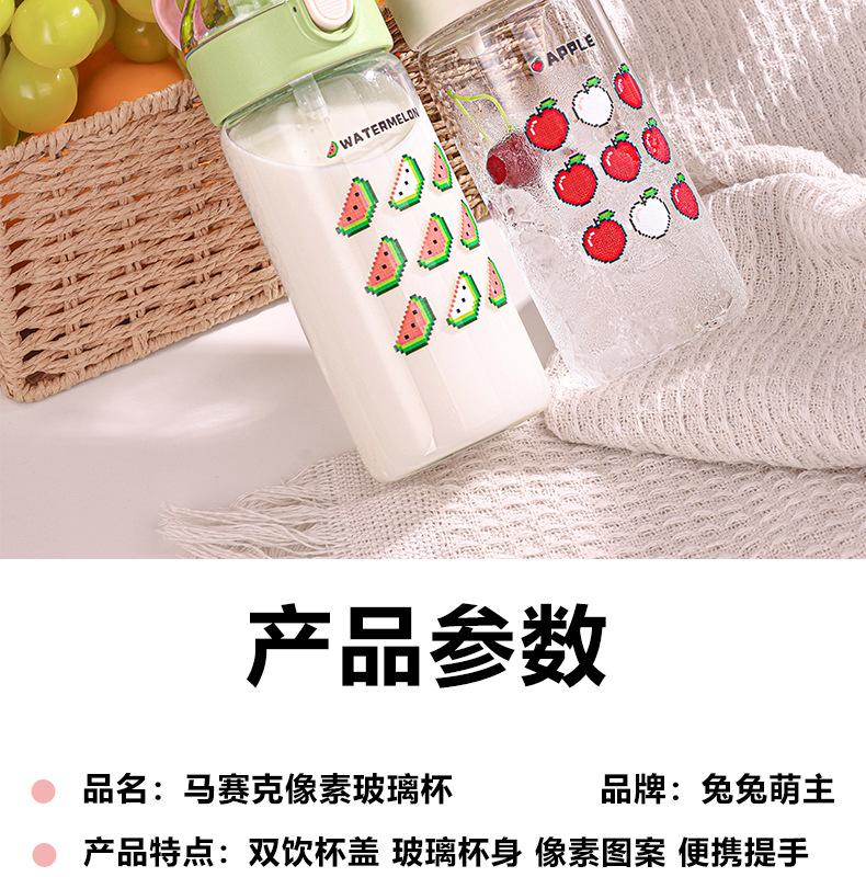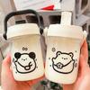 Vaso de Vidrio con Doble Popote para Niños y Niñas, Vaso para Leche para Estudiantes Resistente a Altas Temperaturas, Vaso Portátil de Verano Resistente al Calor para Fruta