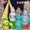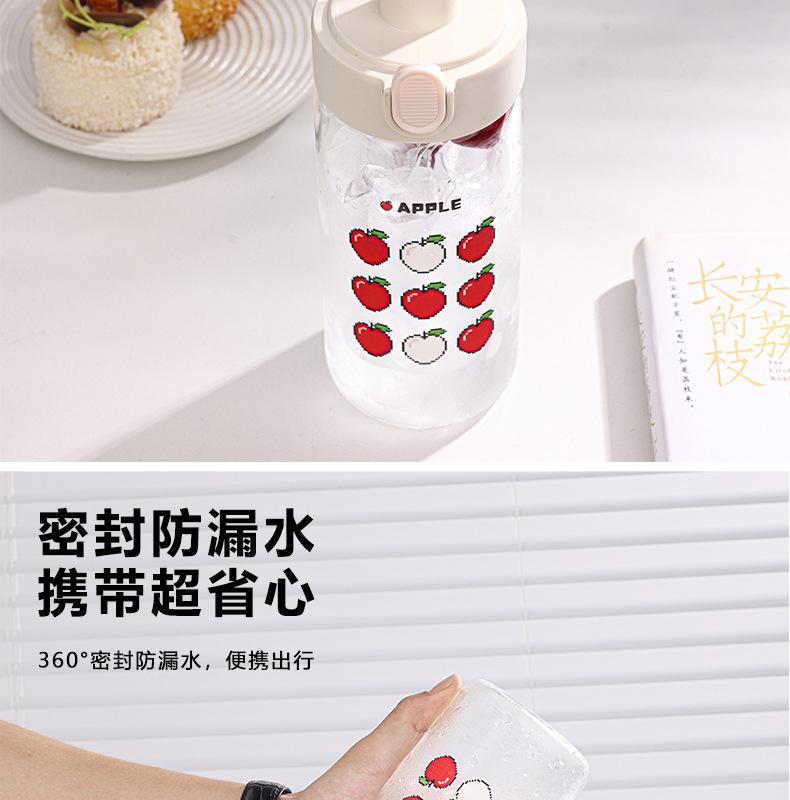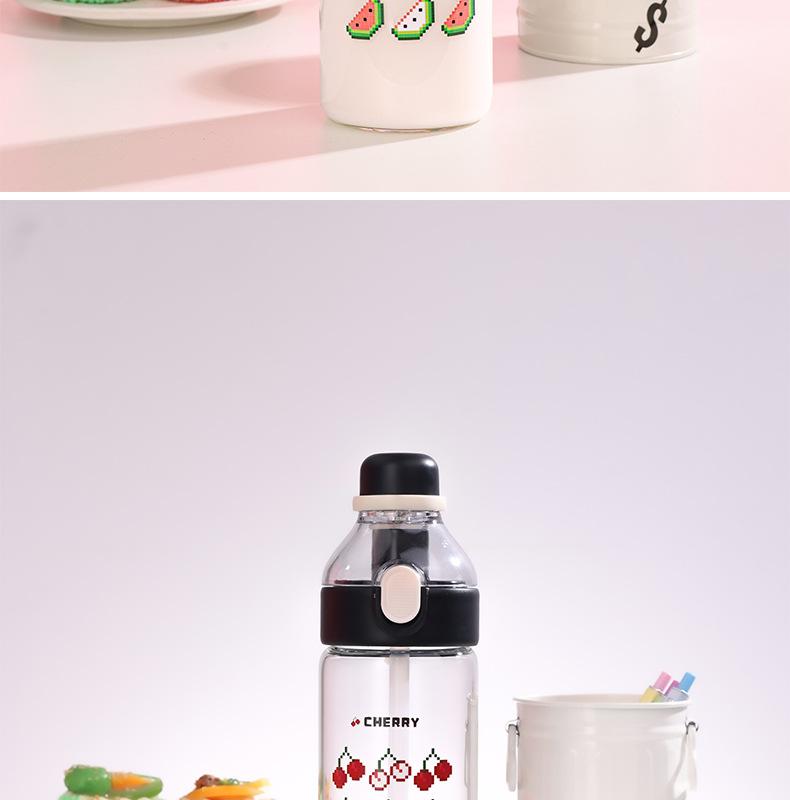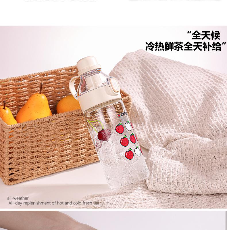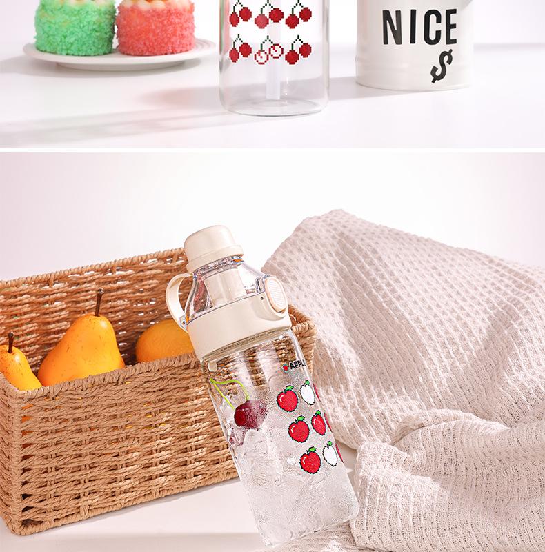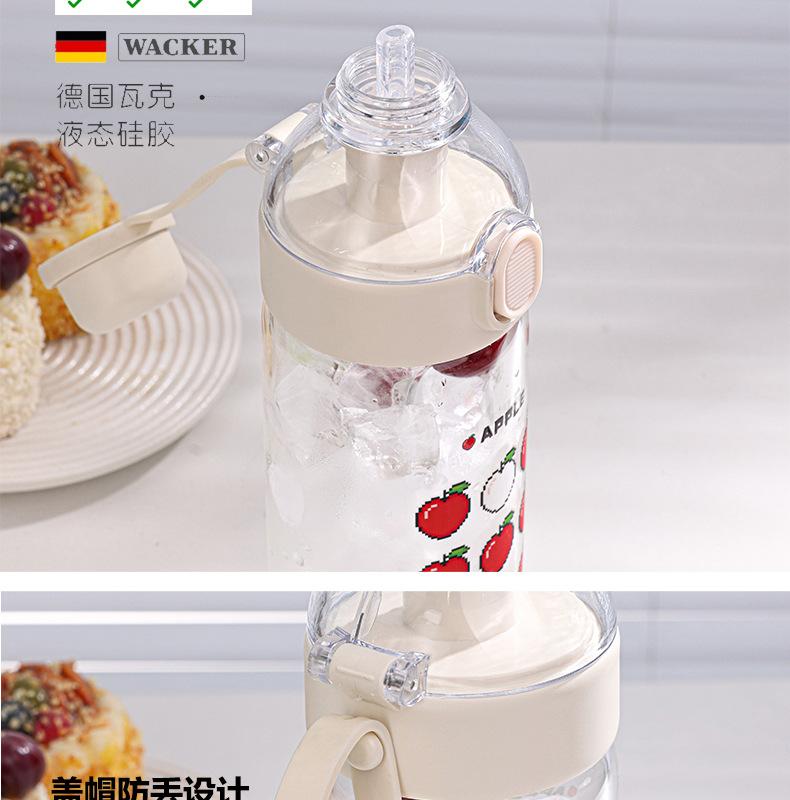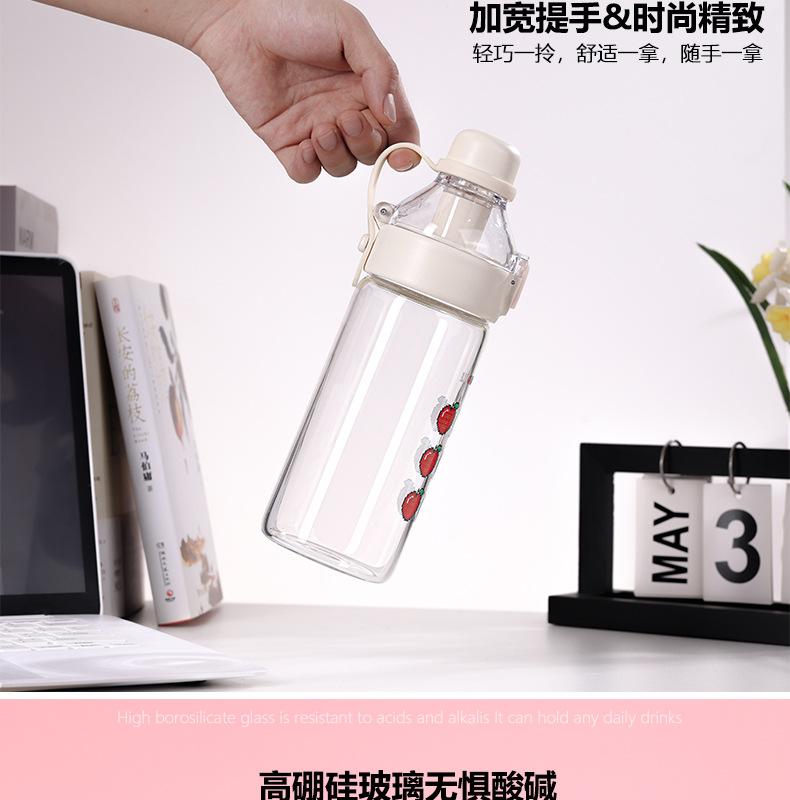 Vaso de Vidrio con Doble Popote para Niños y Niñas, Vaso para Leche para Estudiantes Resistente a Altas Temperaturas, Vaso Portátil de Verano Resistente al Calor para Fruta