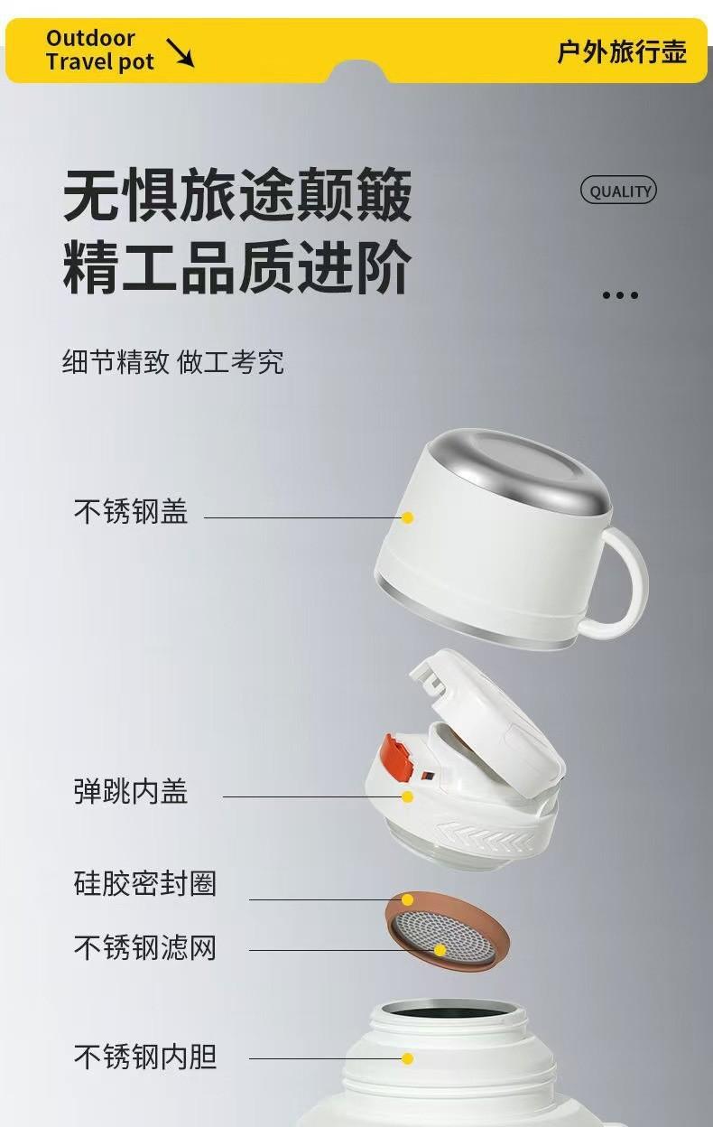 Hervidor de Agua de Viaje, Vaso Termo de Verano, Hervidor de Agua Termo de Acero Inoxidable 316 de Gran Capacidad, Hervidor de Agua con Aislamiento Frío, Hervidor de Agua Termo