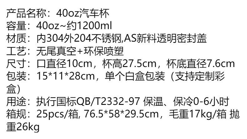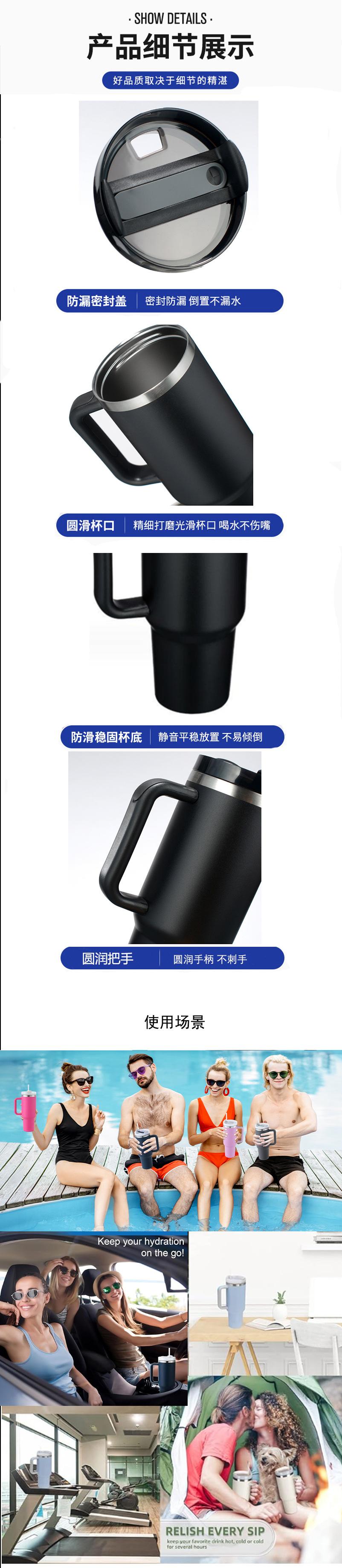 Taza con asa Amazon 40oz taza de hielo de 2da generación taza con asa de vacío de acero inoxidable 304 taza de agua de gran capacidad para coche
