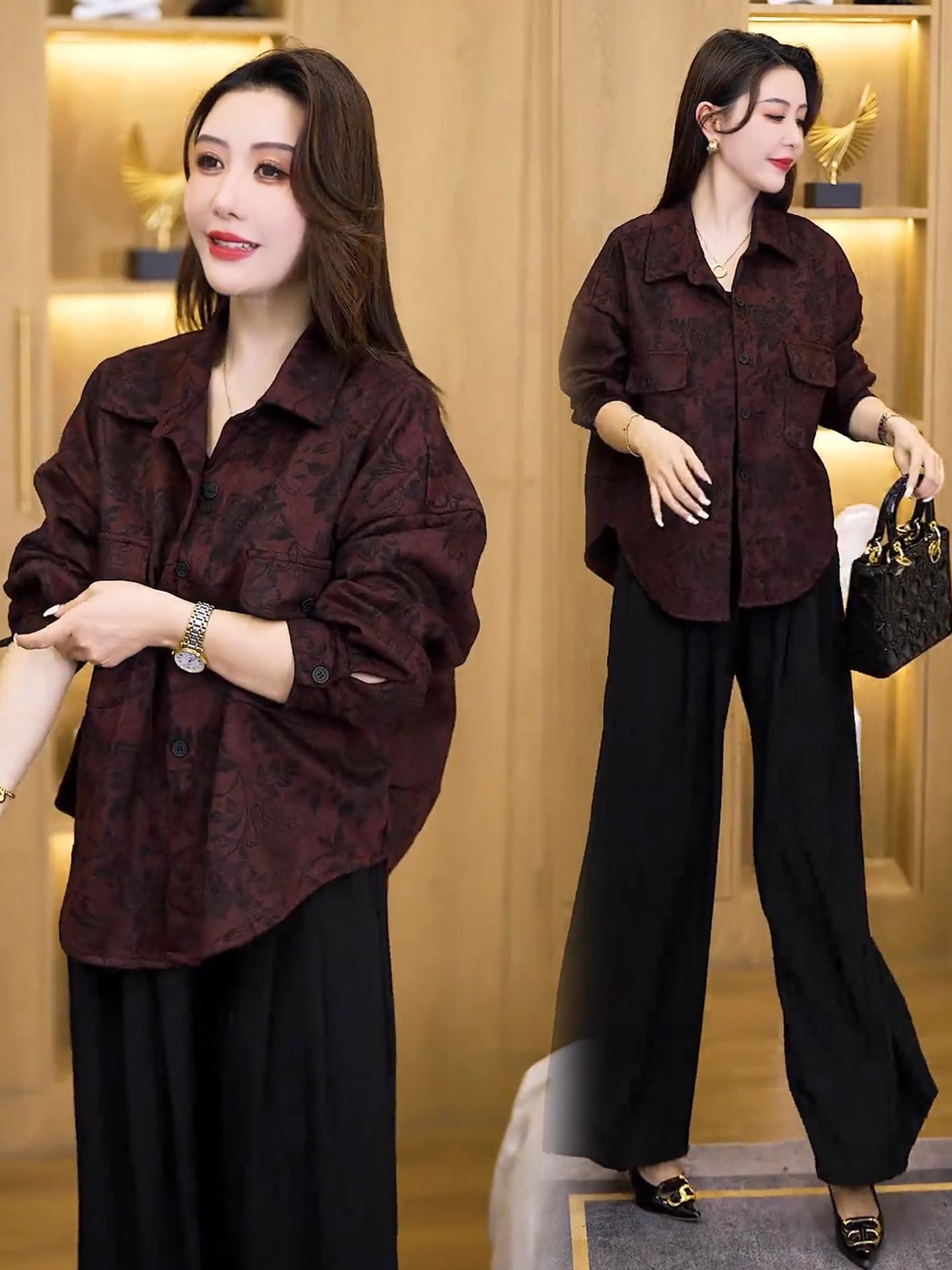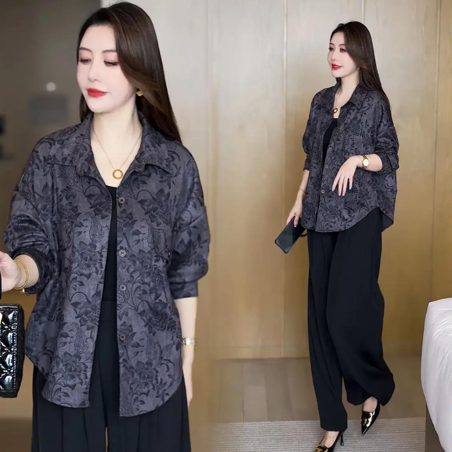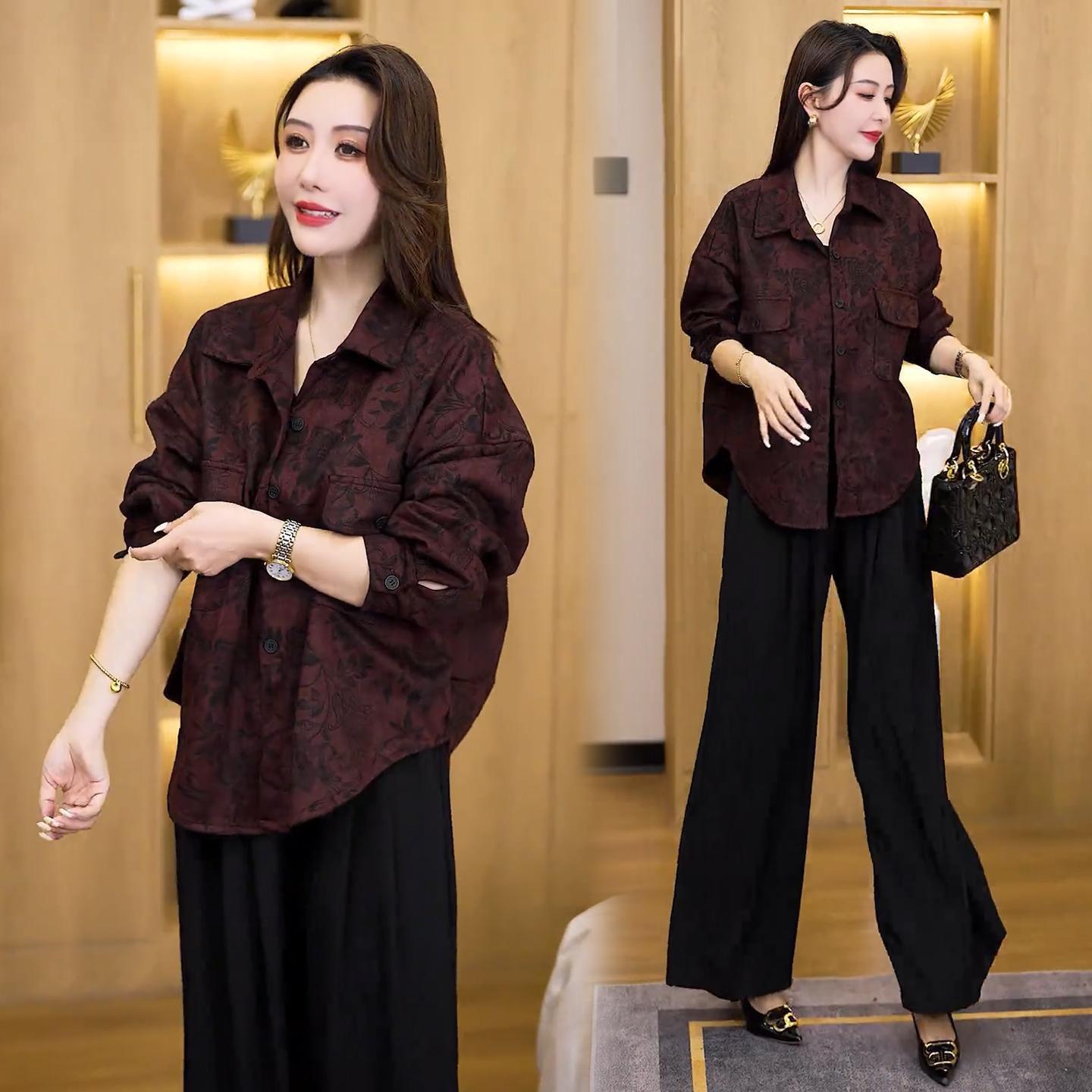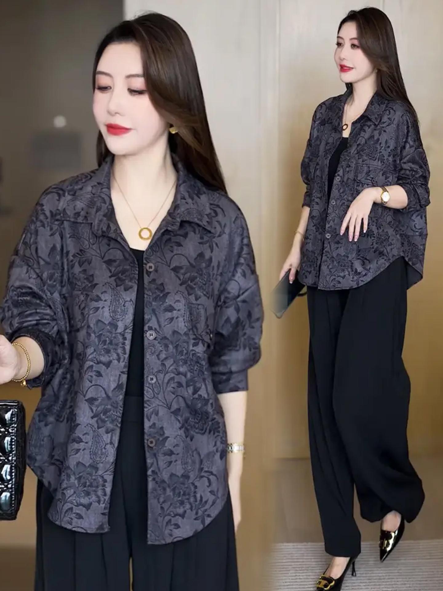 Camisa de Moda para Mujer 2025 Otoño Nuevo Estilo Estilo Extranjero Suelta Adelgazante Sentido del Diseño Estampado Casual Manga Larga